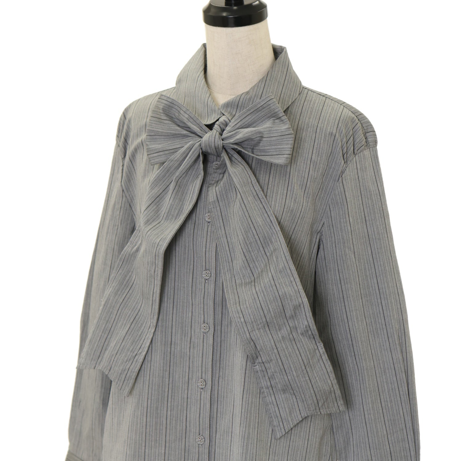 【USED】【Mサイズ】ボウタイストライプブラウス