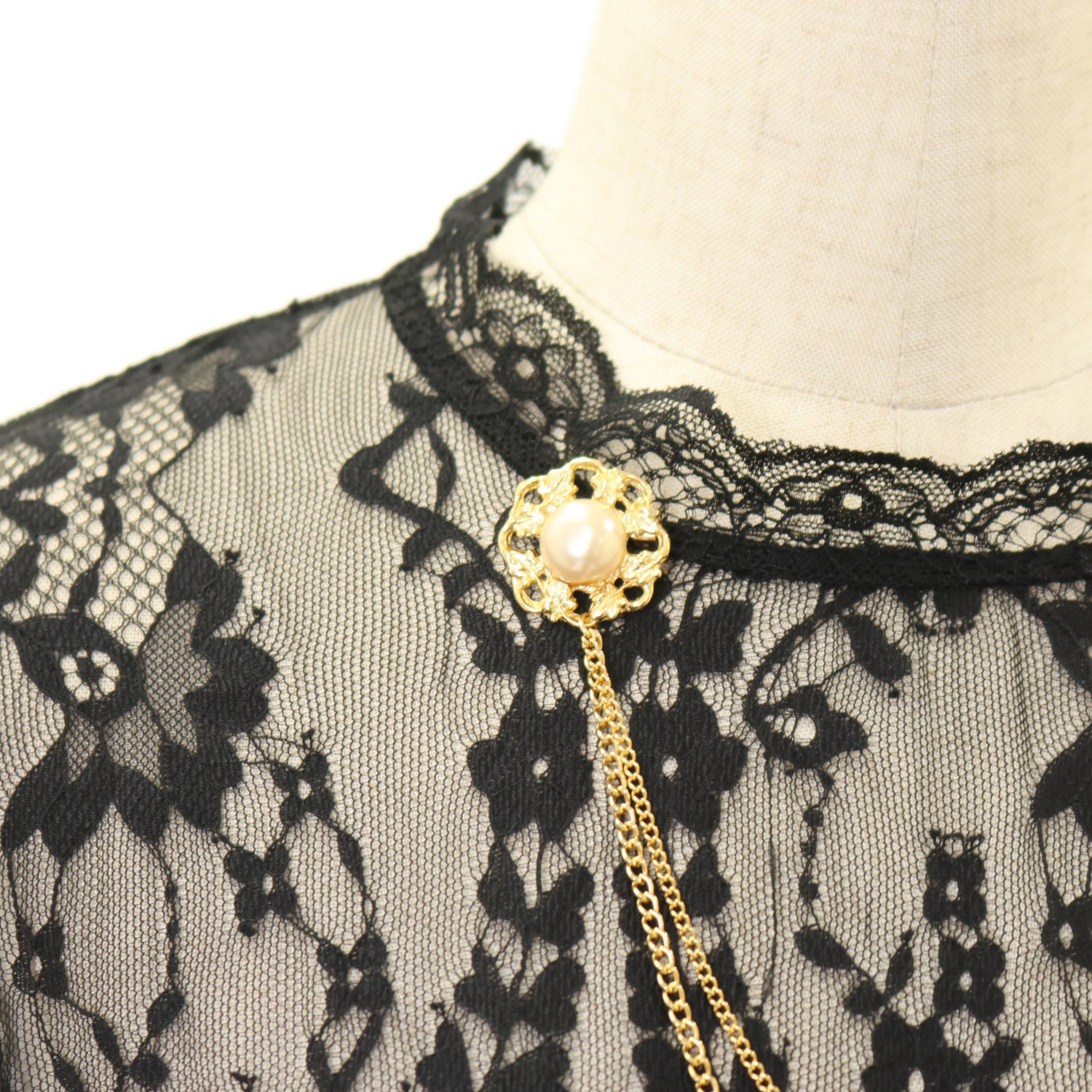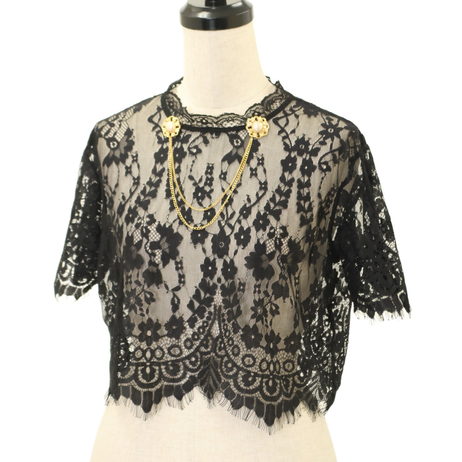 【USED】2連チェーンブローチ付きゴシック調レース地ボレロ