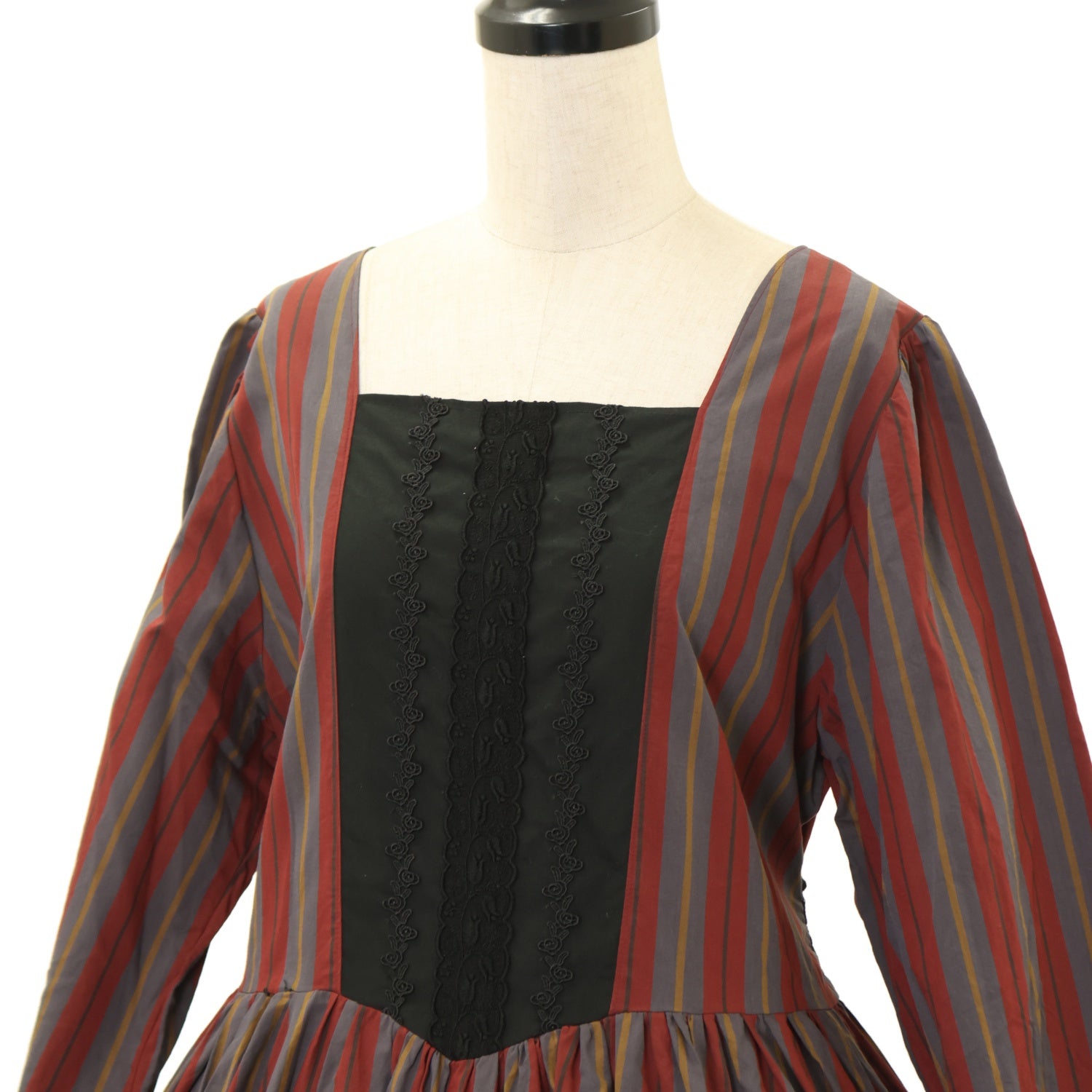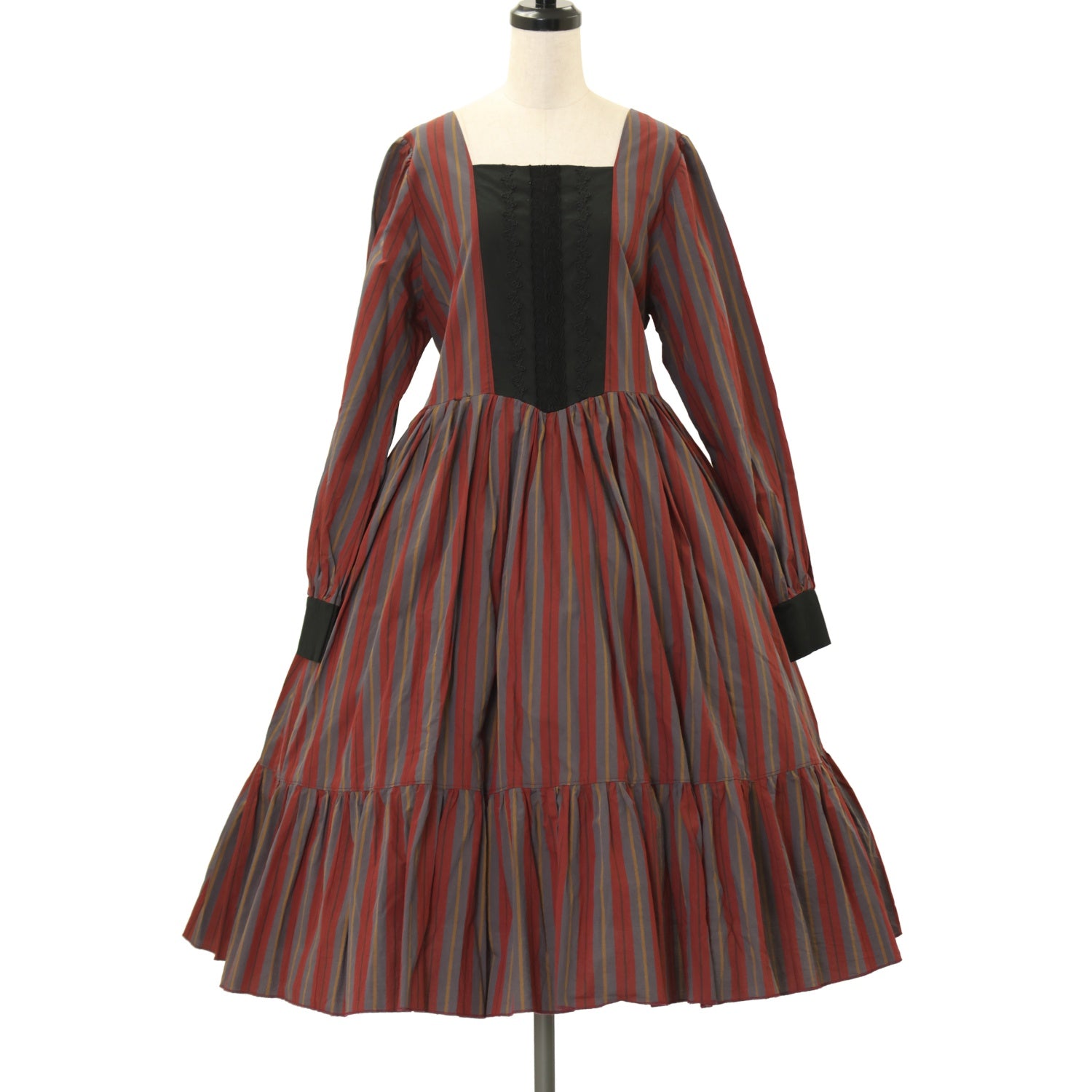 【USED】【marcHenTica】ボニータワンピース(グレー×ボルドーストライプ)