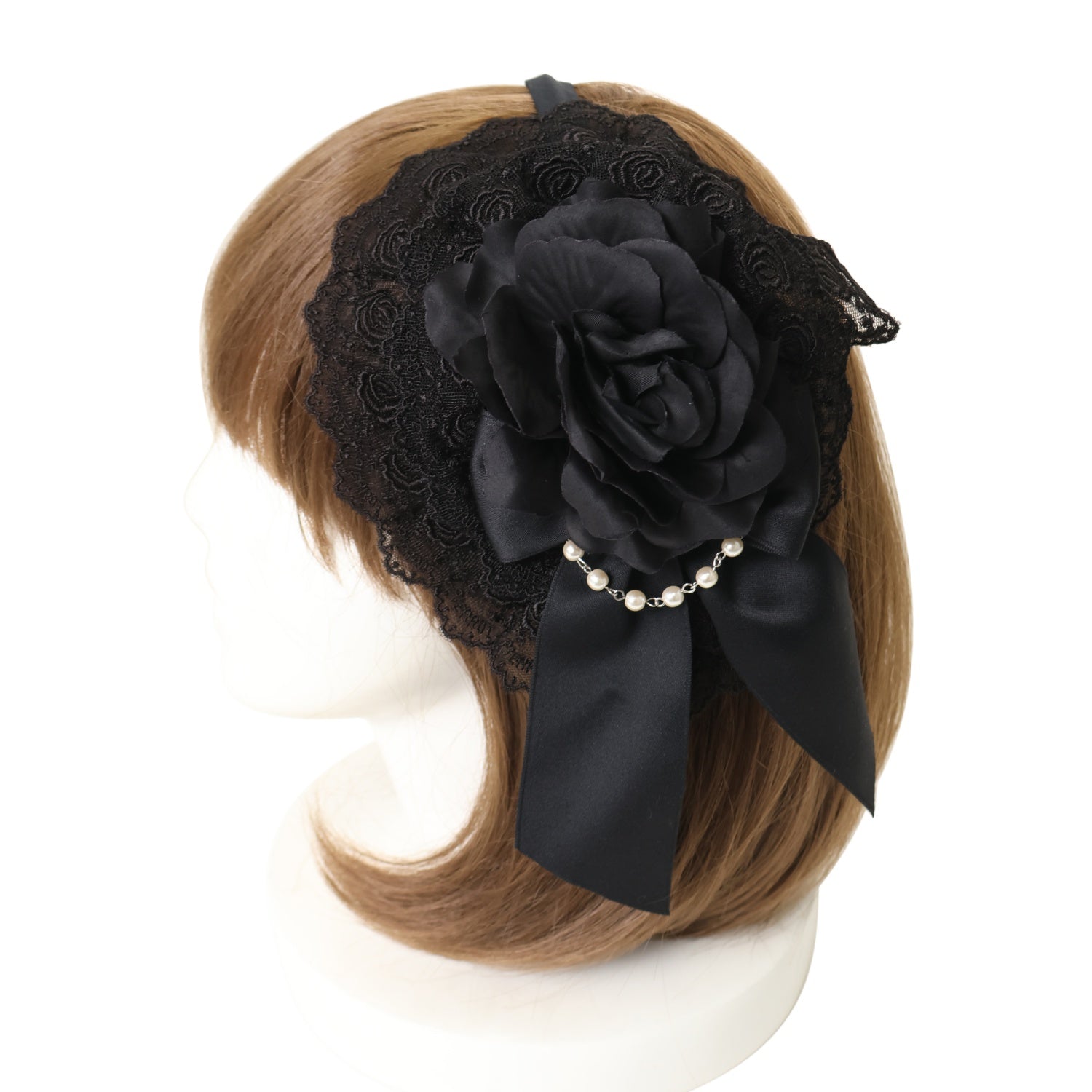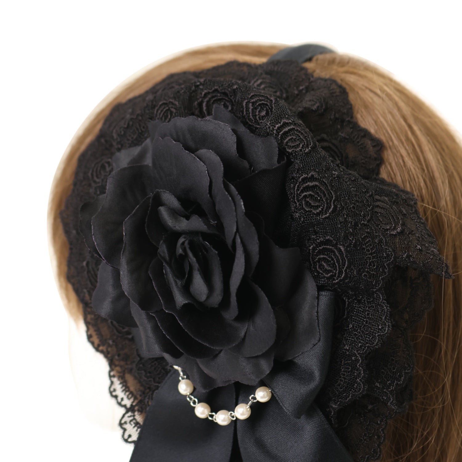 【USED】薔薇レースカチューシャ(黒×黒薔薇)