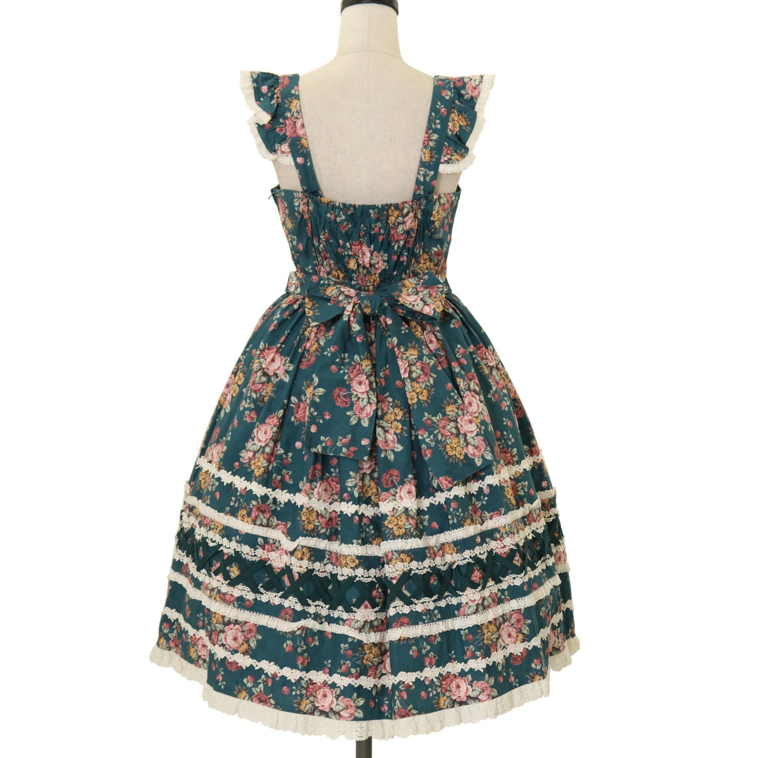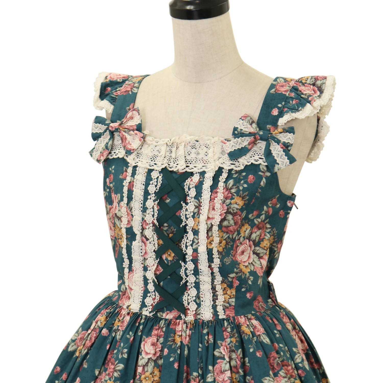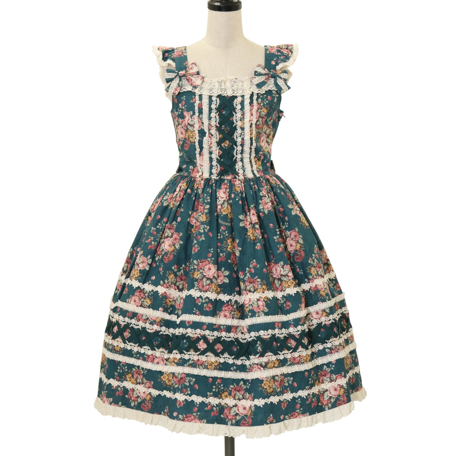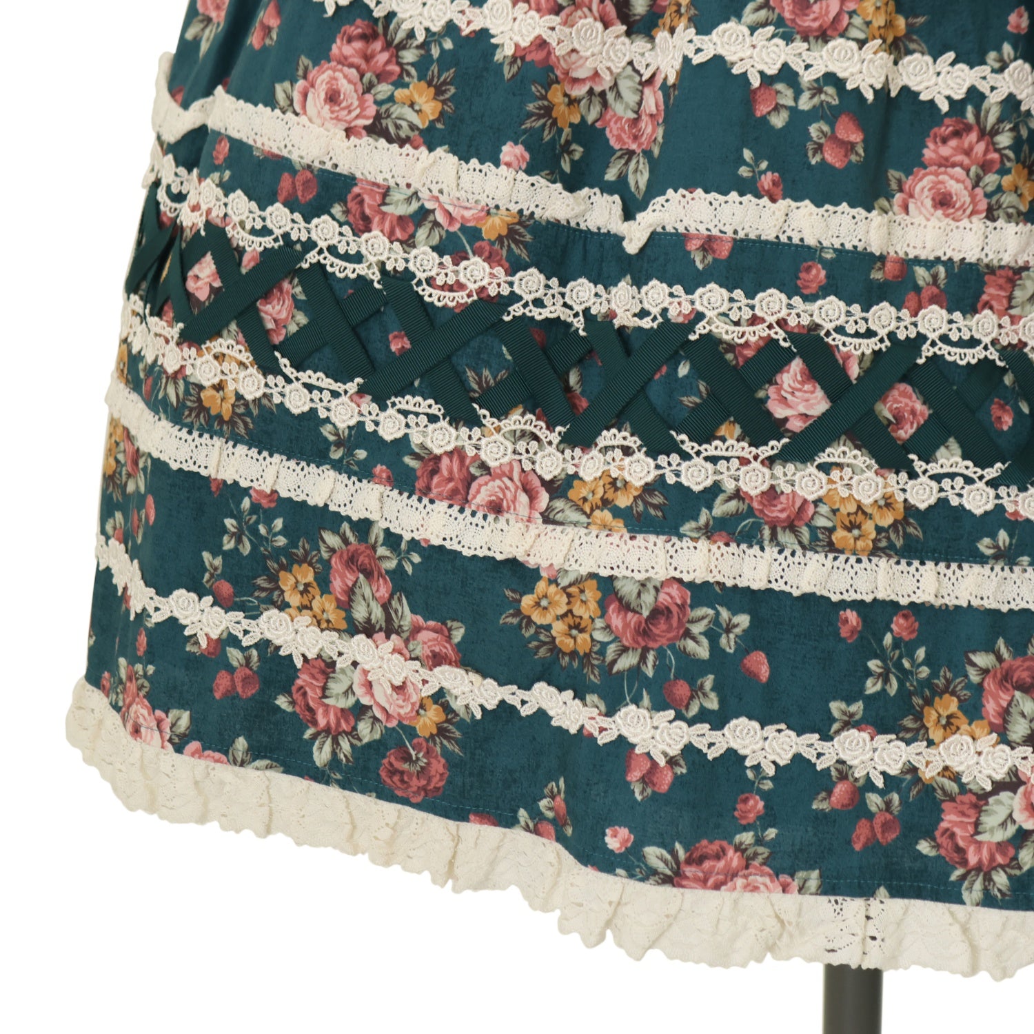 【USED】【Mサイズ】薔薇と苺のクロスリボンジャンパースカート