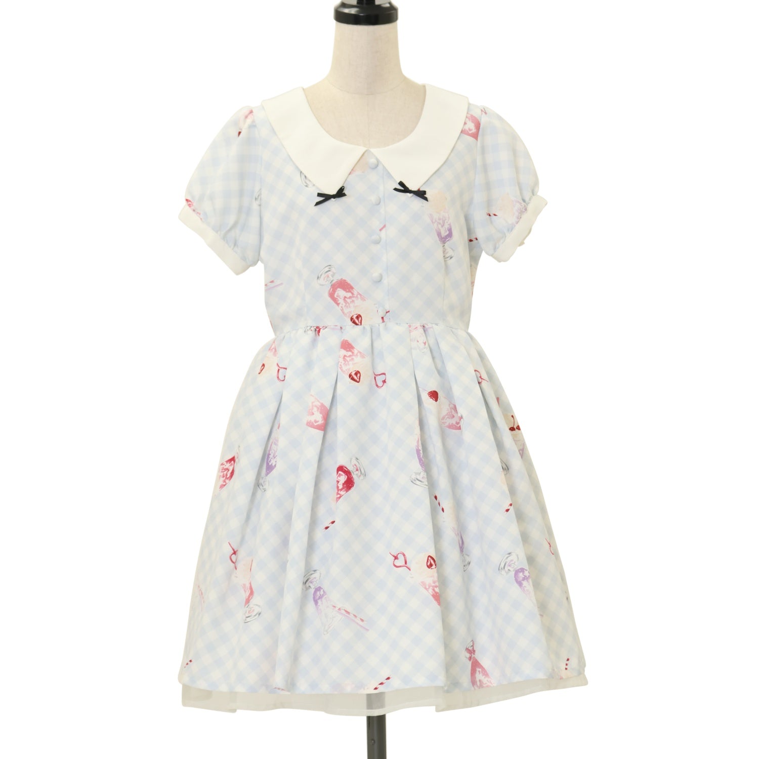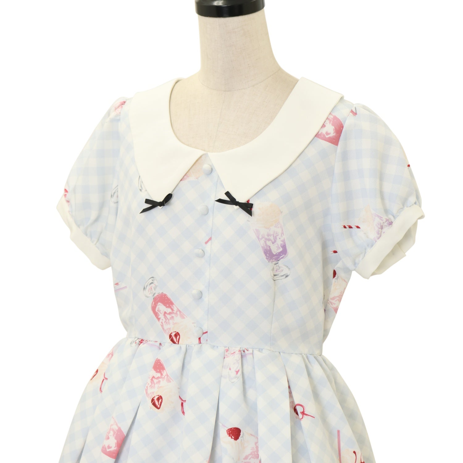 【USED】【Mサイズ】Fancy Soda Float衿先リボンワンピース