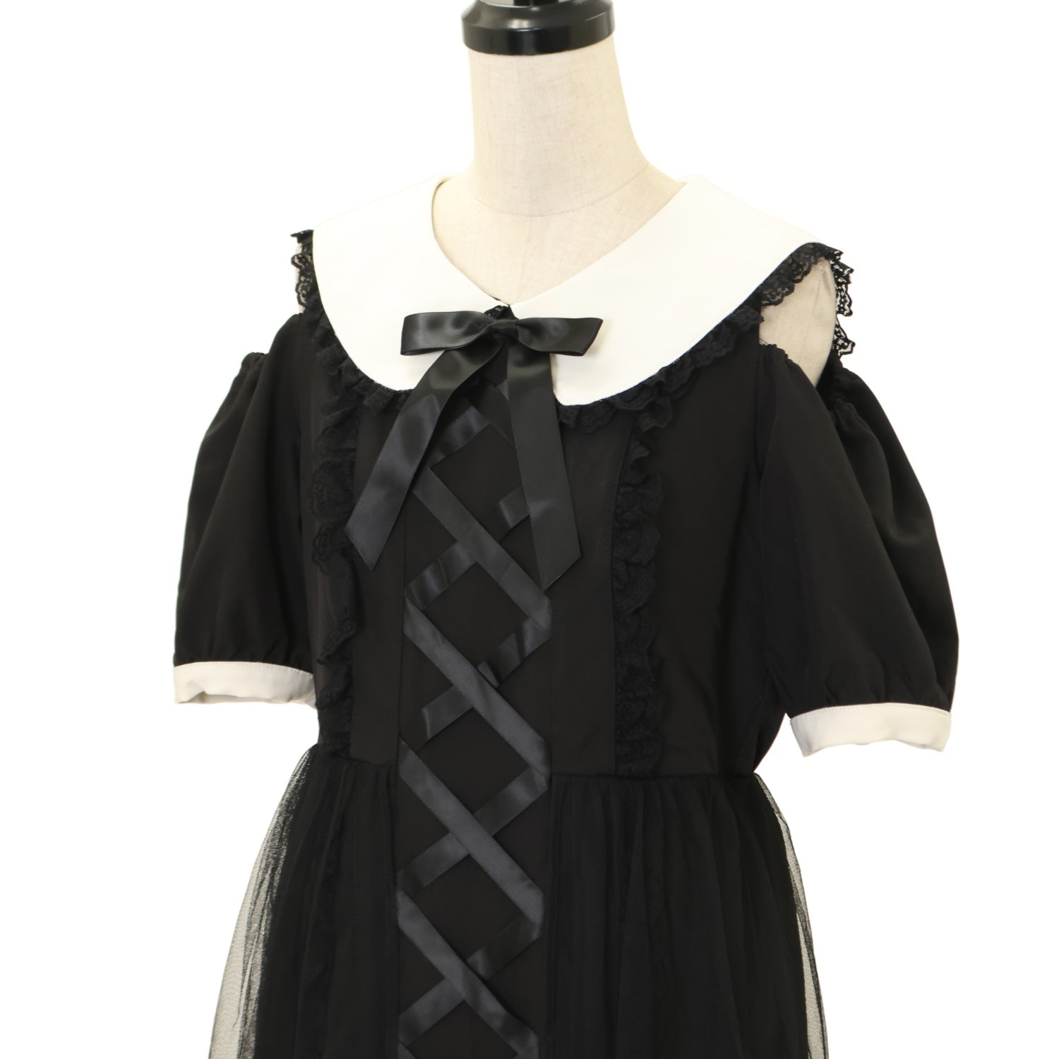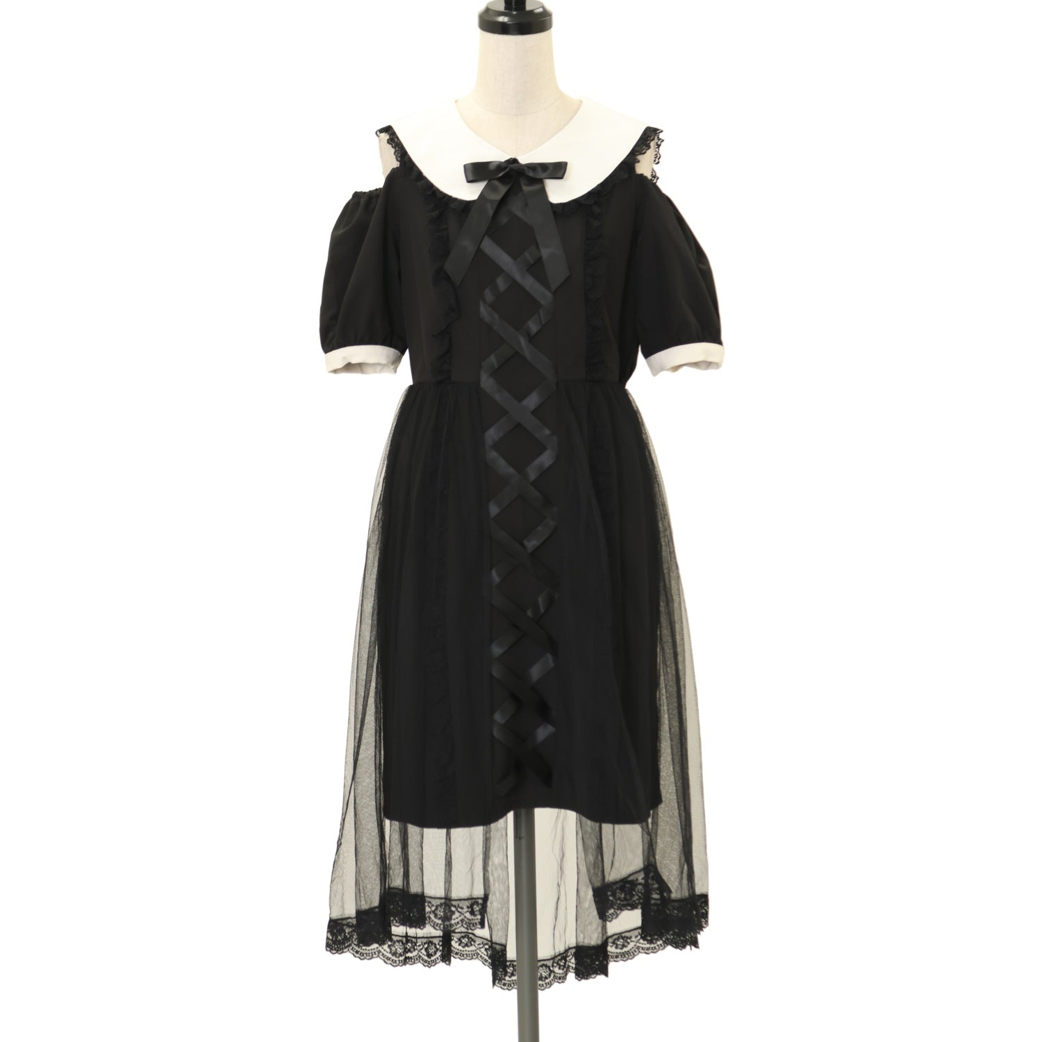 【USED】【princess melody】レースアップ肩あきチュール重ねワンピ