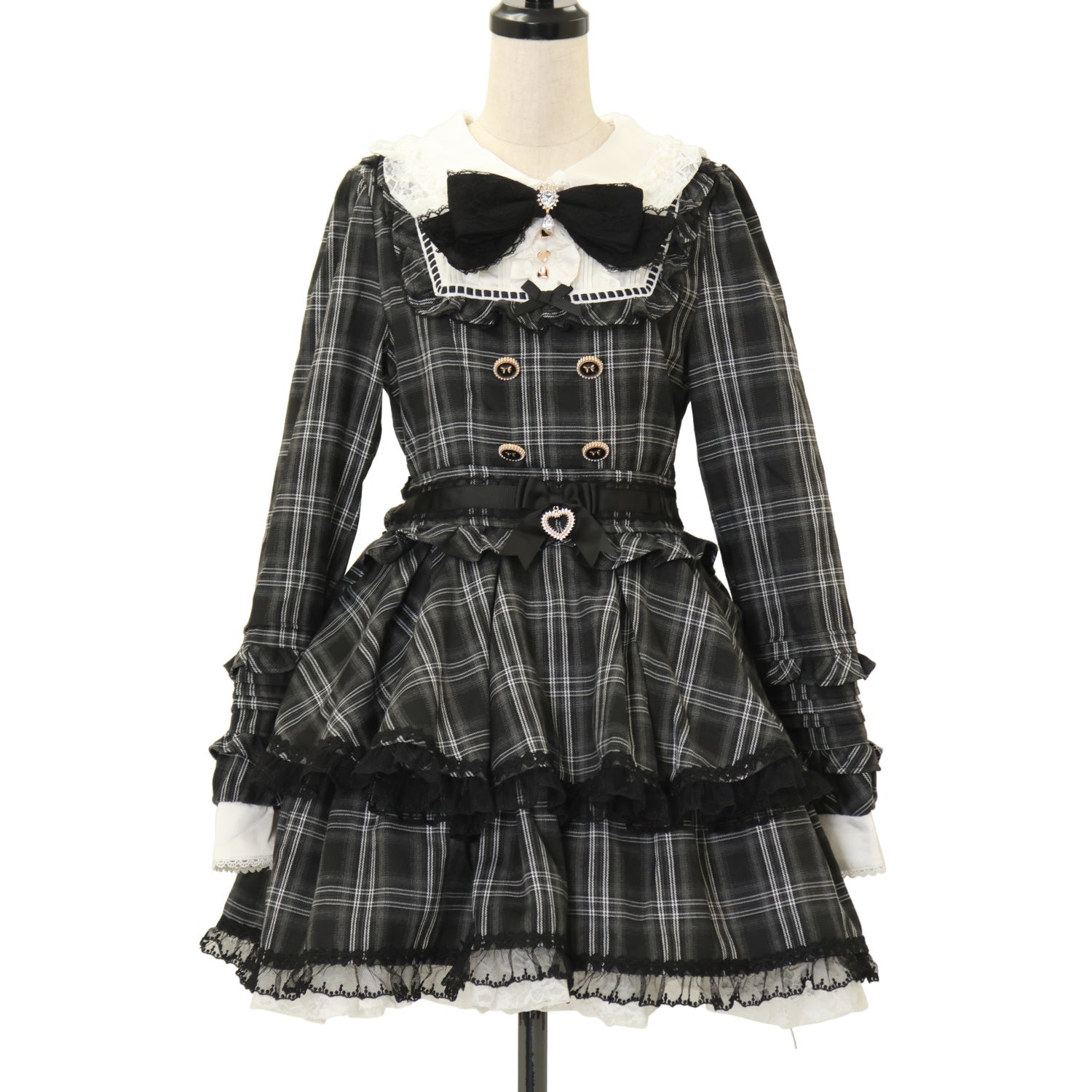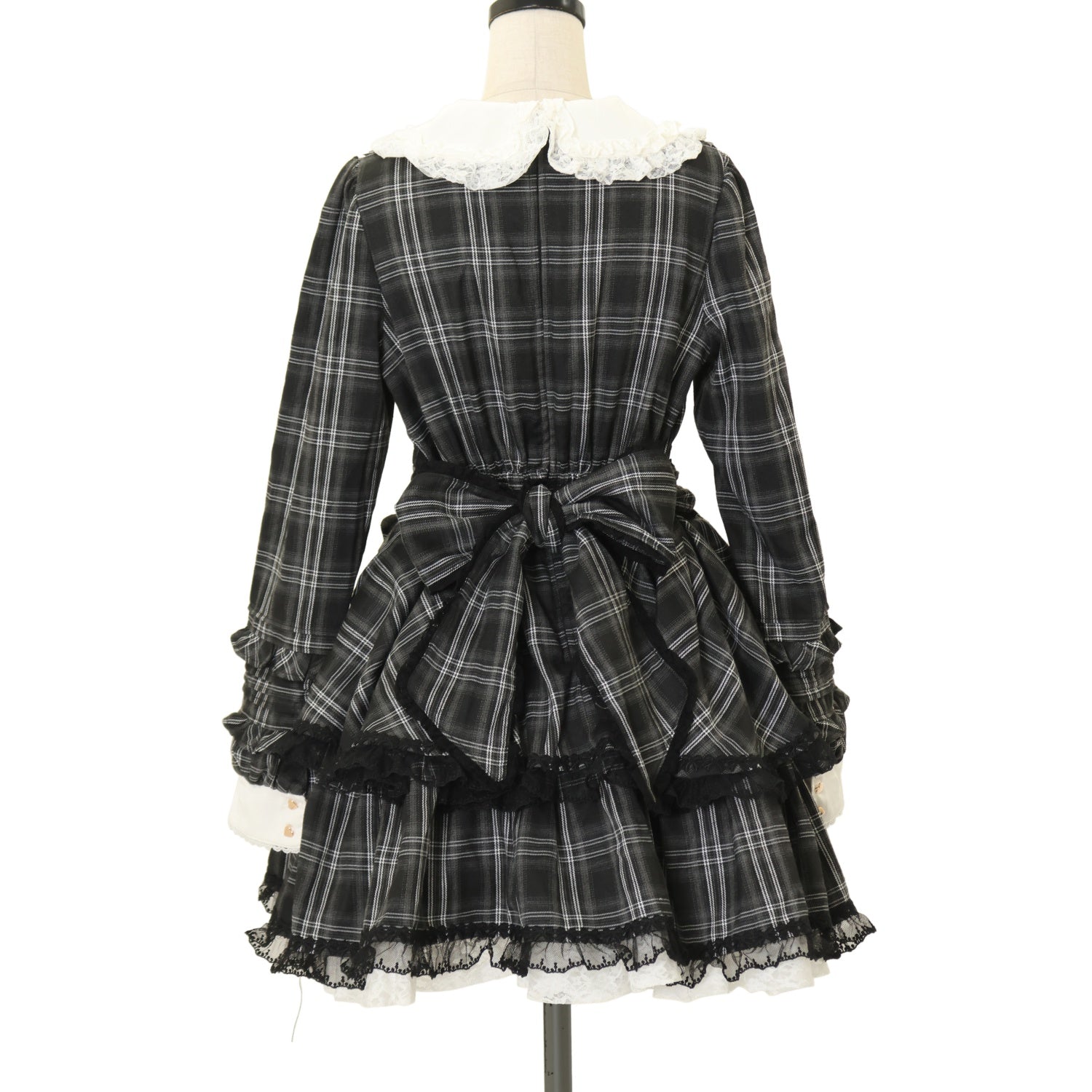 【USED】スピンドルヨークティアードワンピース(ブラックチェック)