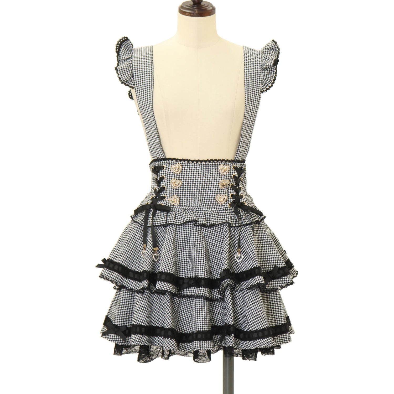 【USED】はしごリボンチェックティアードスカパン