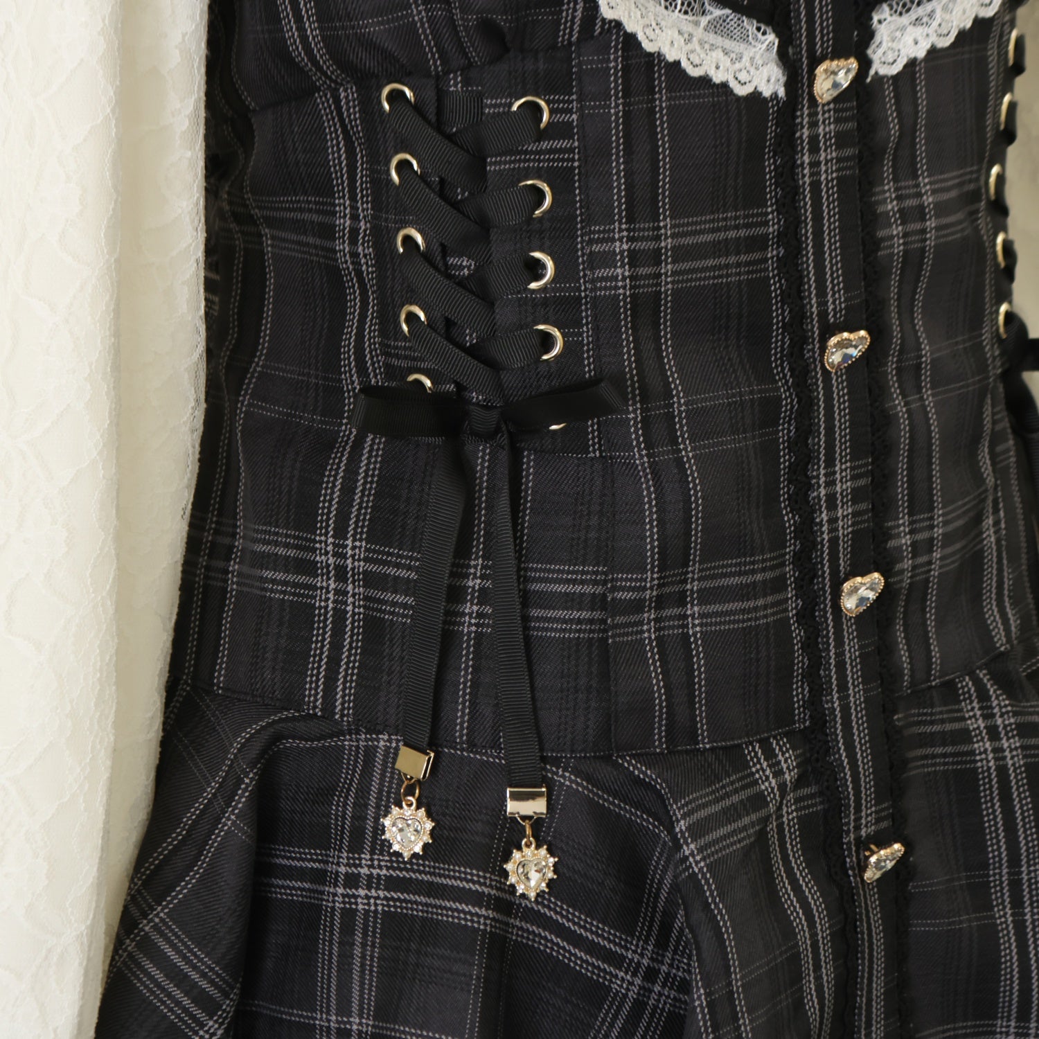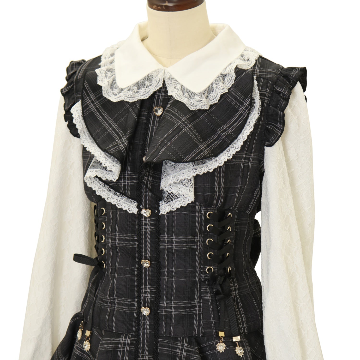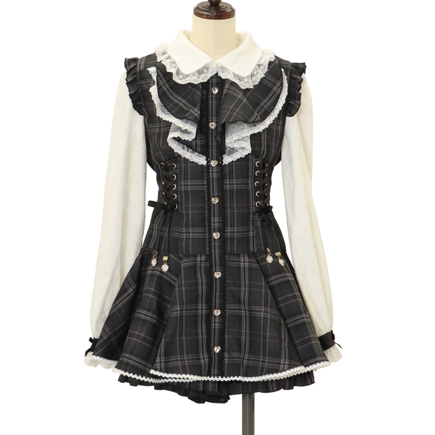 【USED】ラッフルリボンセットアップ(ブラックチェック)