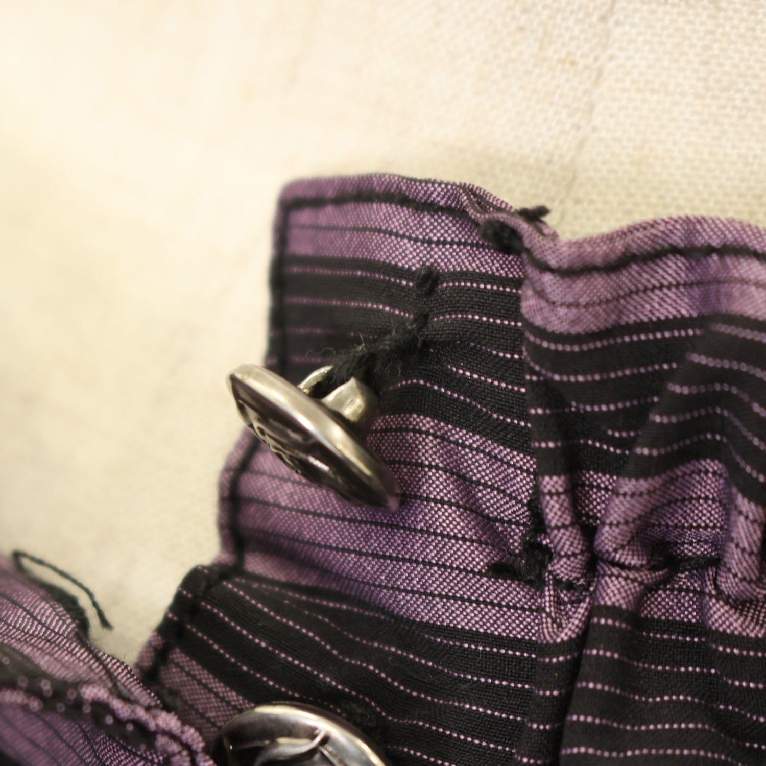 エプロン取付ボタン1個欠品 一部のボタン縫い付け糸に緩み |