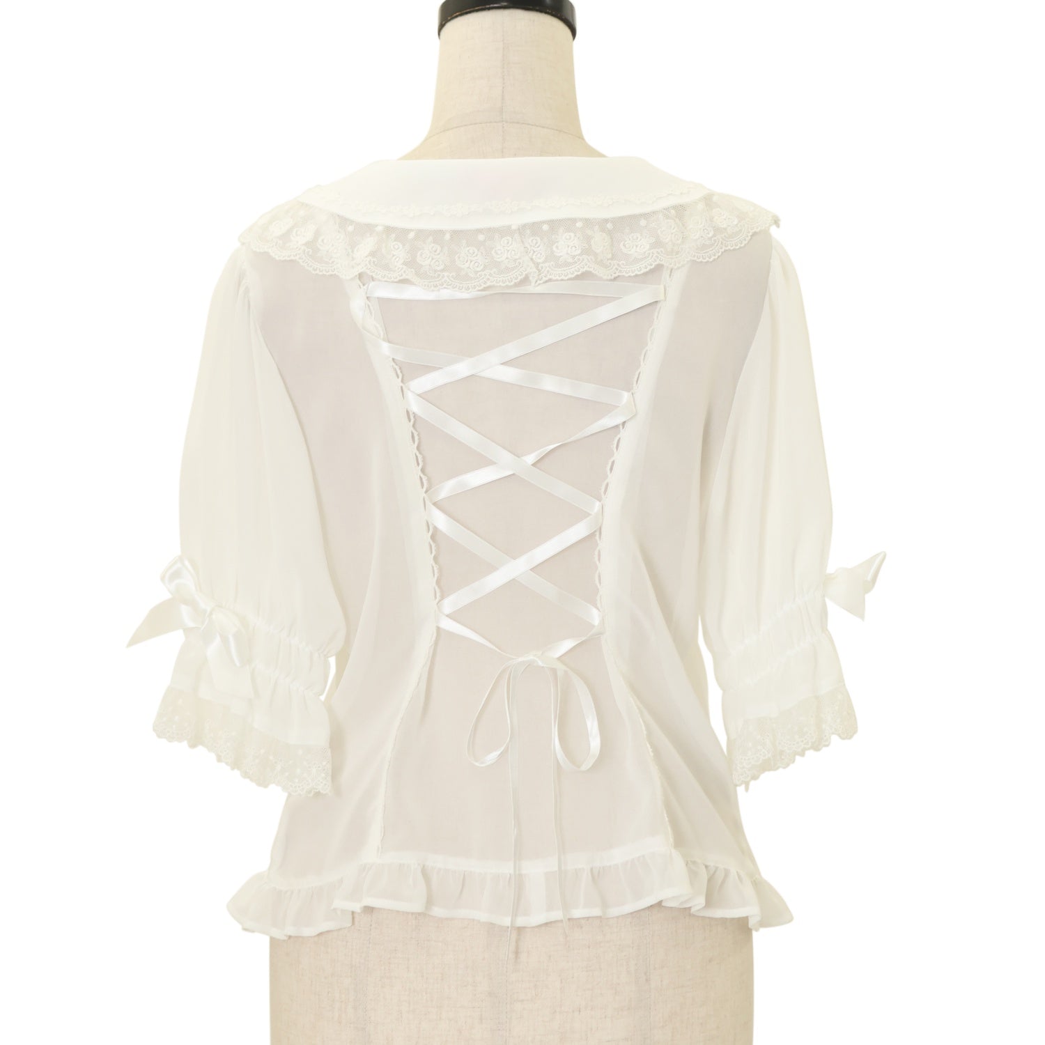 【USED】La Petite Fleur5分袖シフォンブラウス