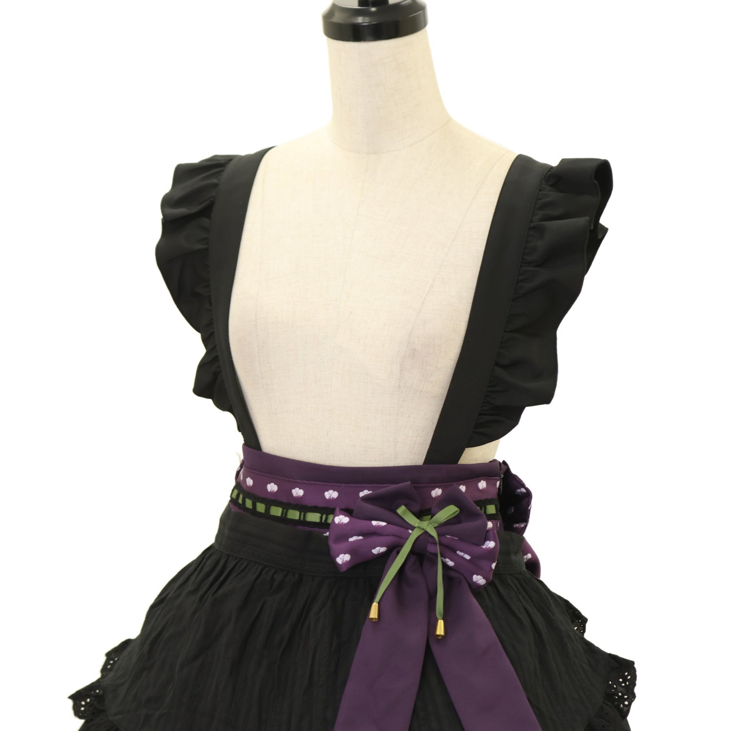 編み上げでサイズ調節可能 肩紐・リボンブローチ取り外し可能 ◆エプロン(取り外し可能) 丈:24cm |