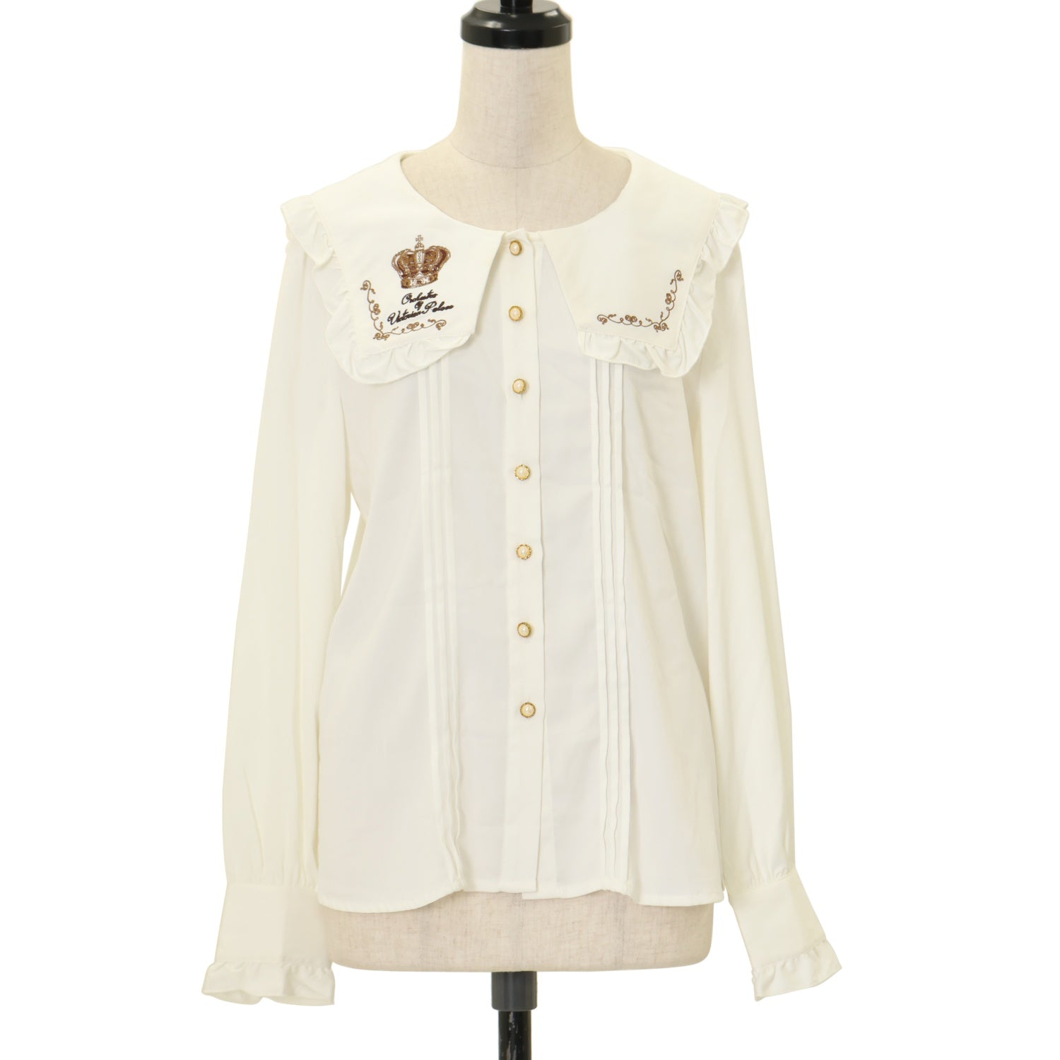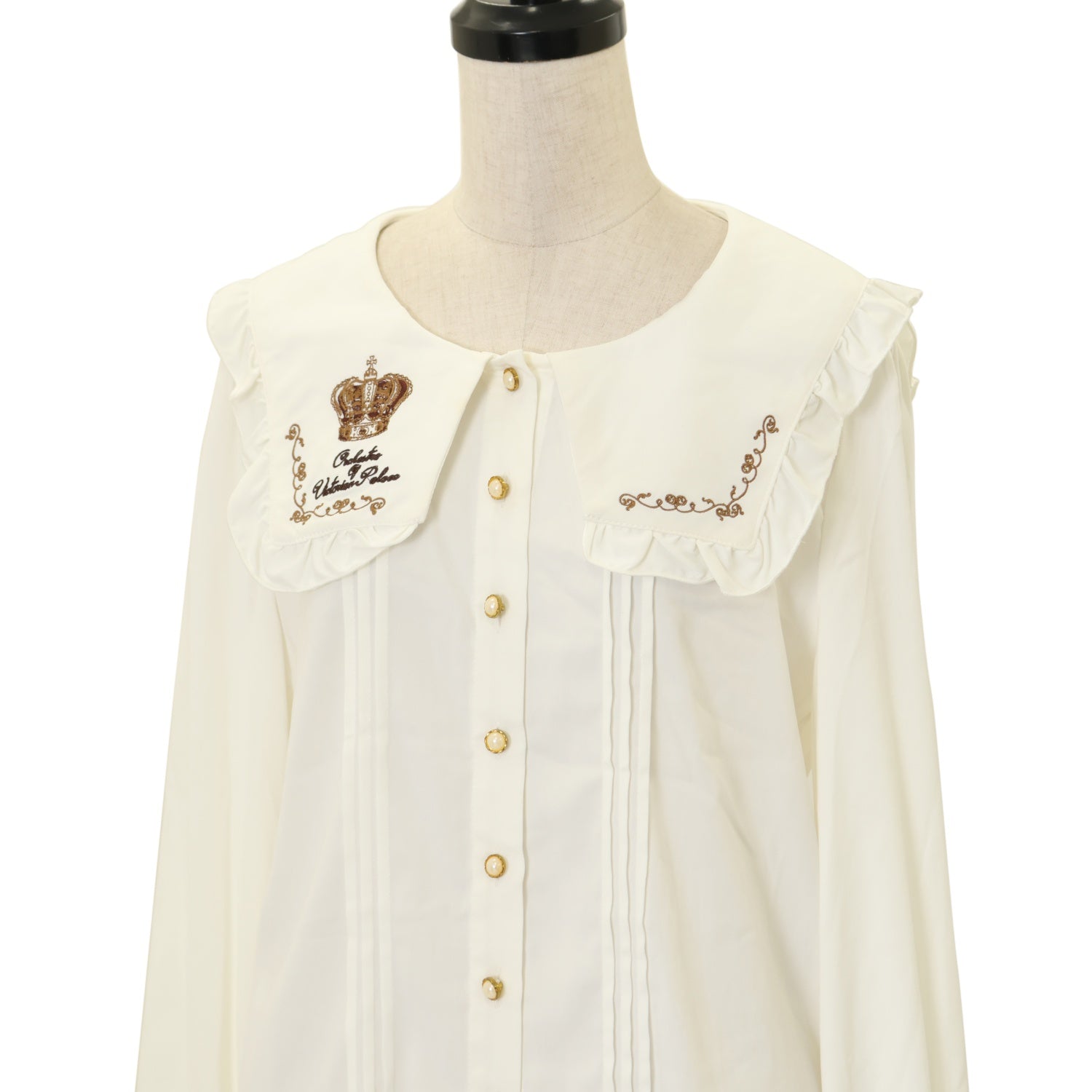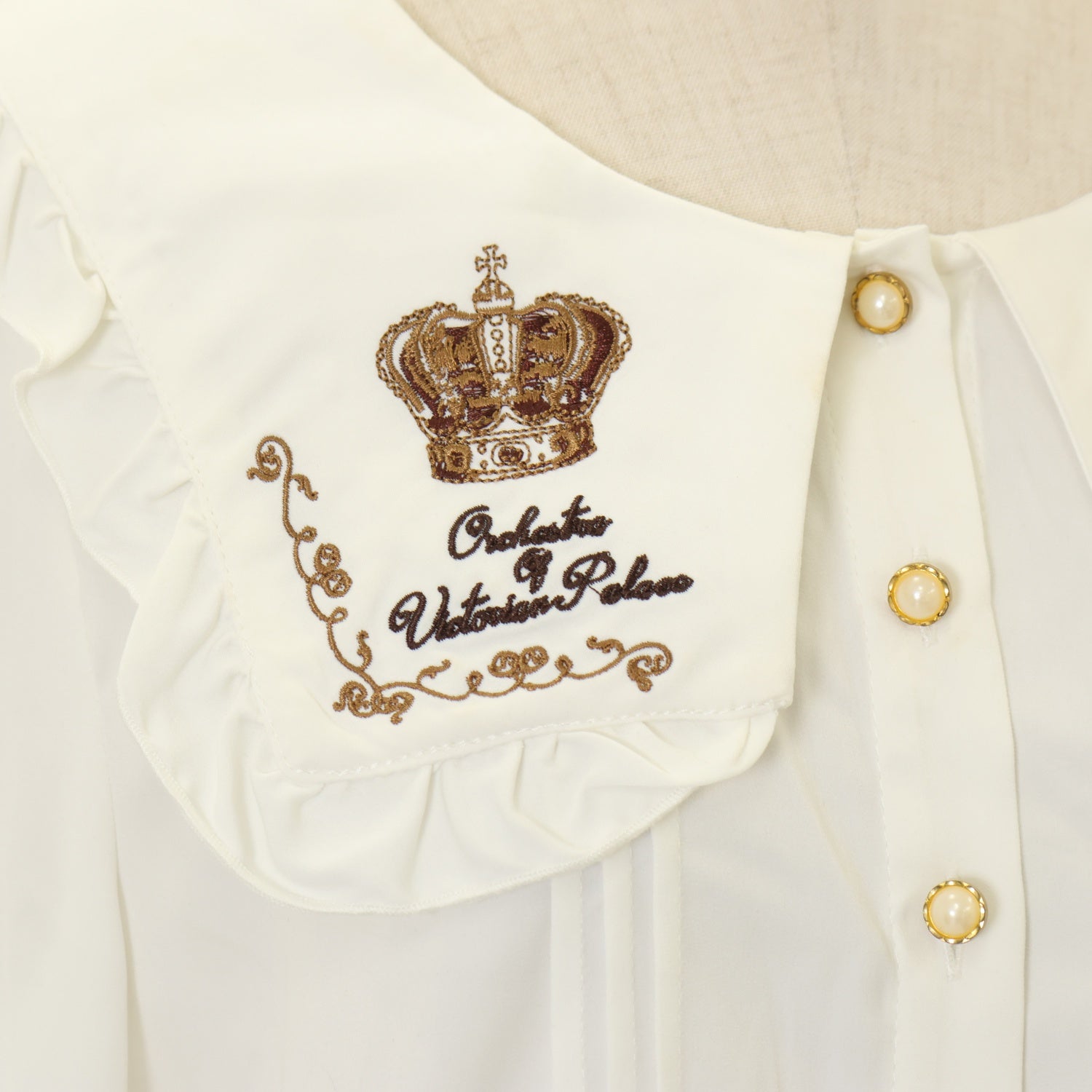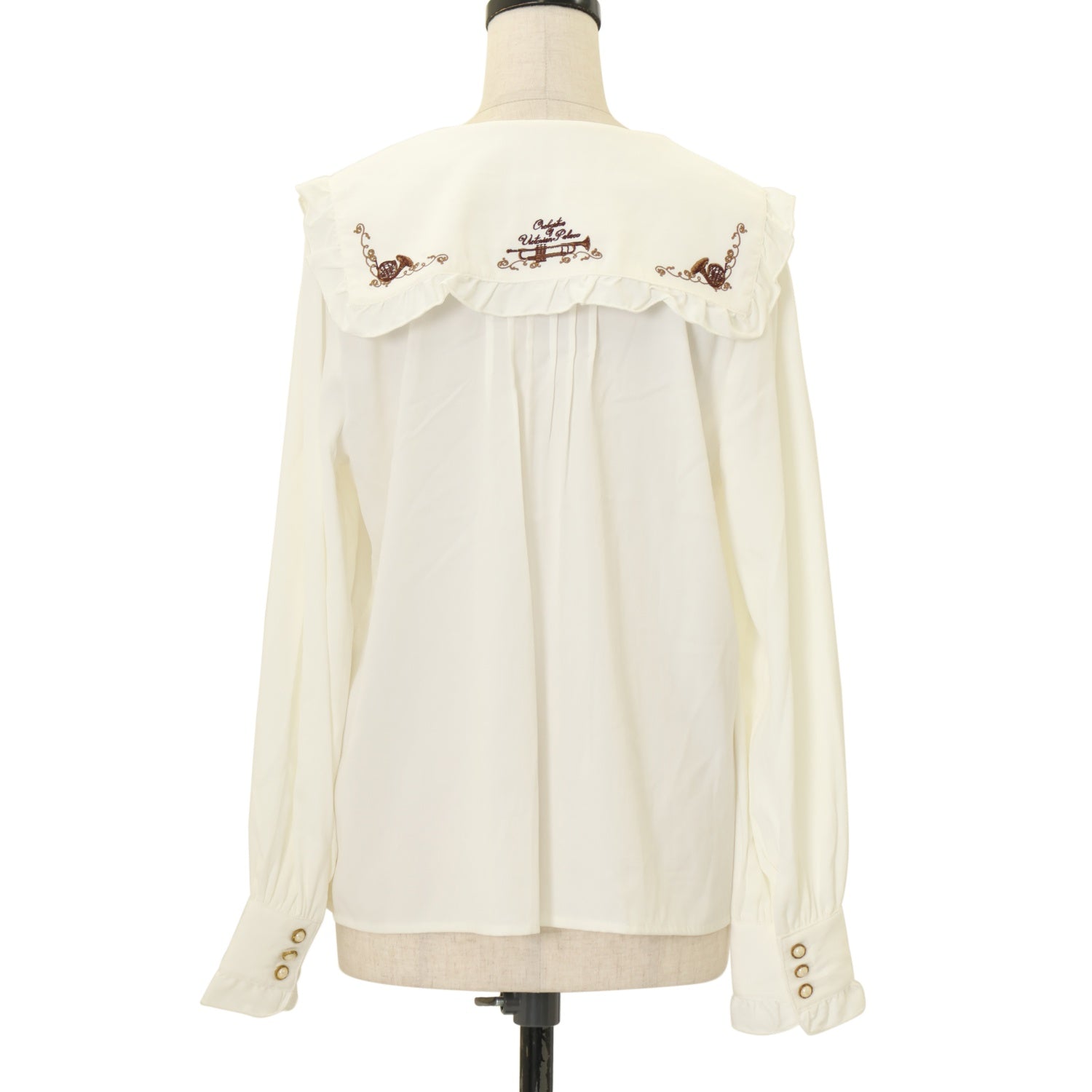 【USED】王冠×楽器刺繍入り ブローチタイ付スクエアカラーブラウス