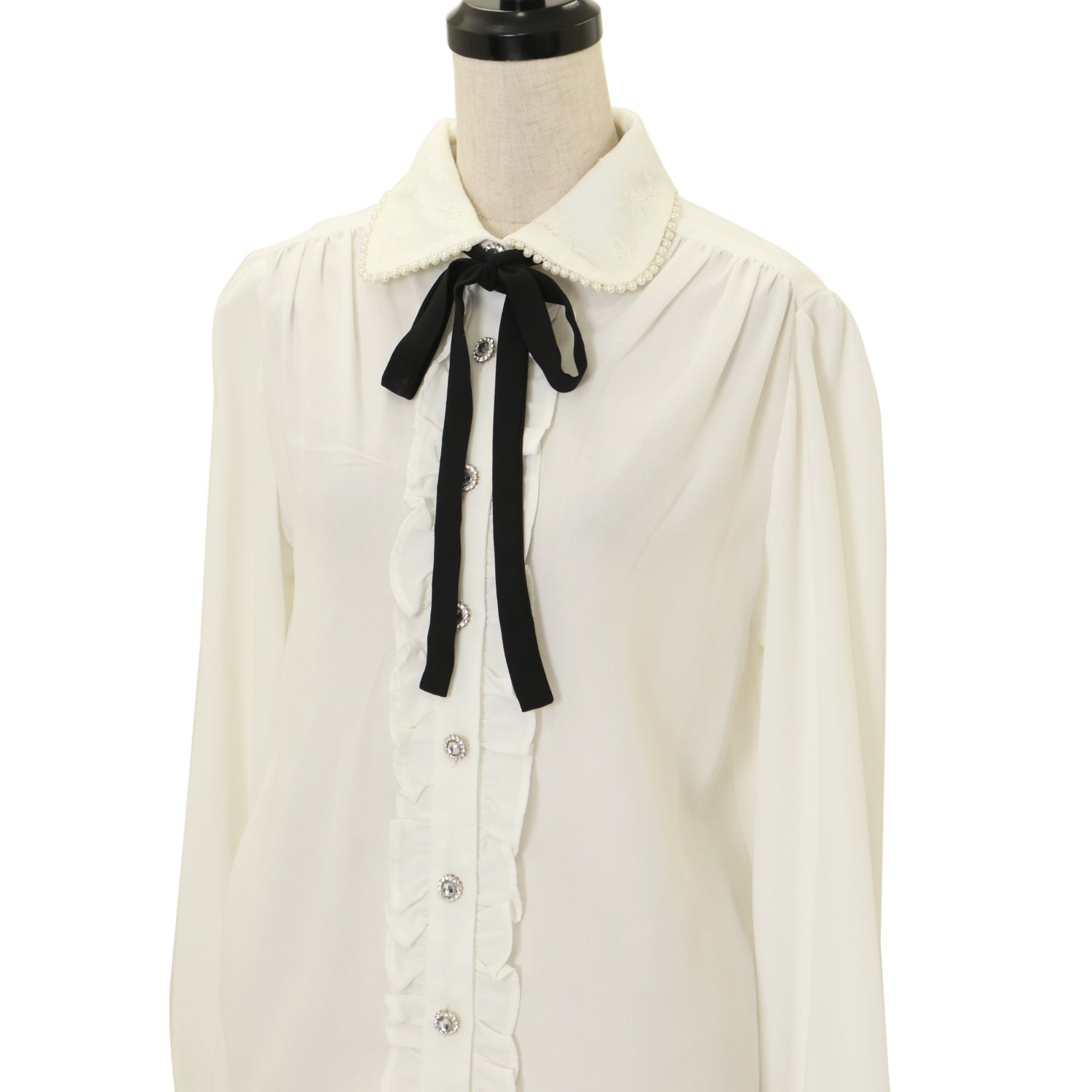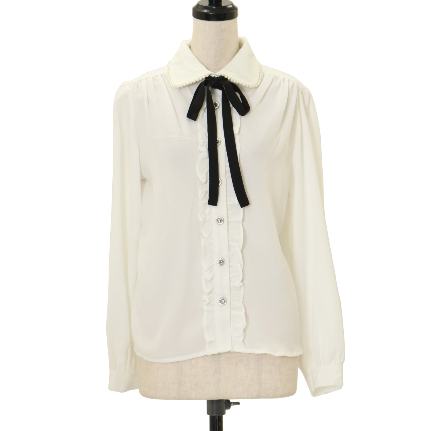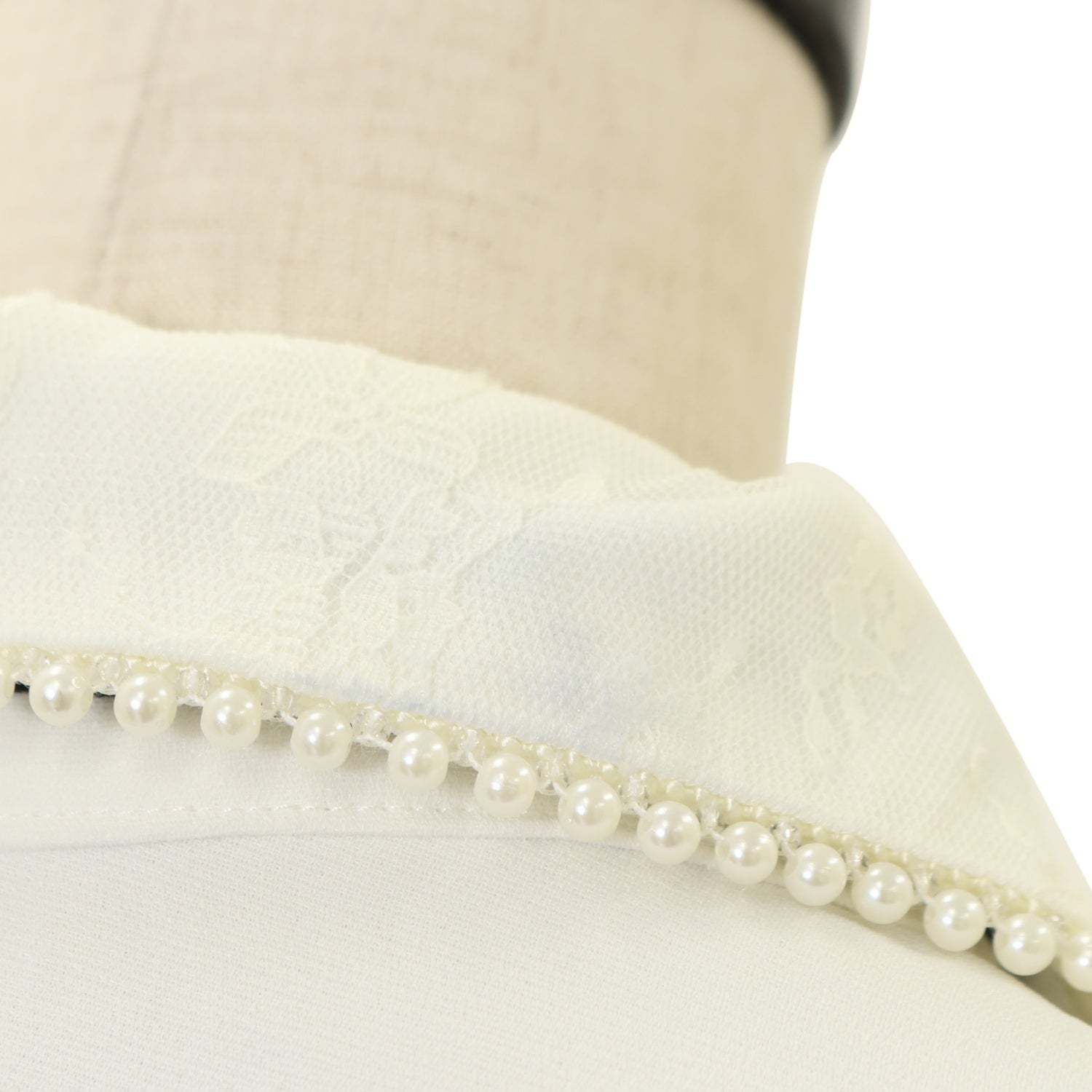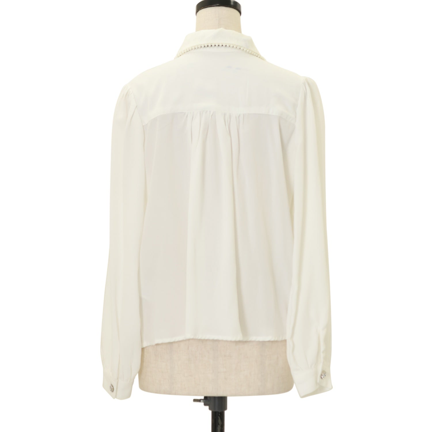 【USED】【Mサイズ】パールトリムレース衿ブラウス