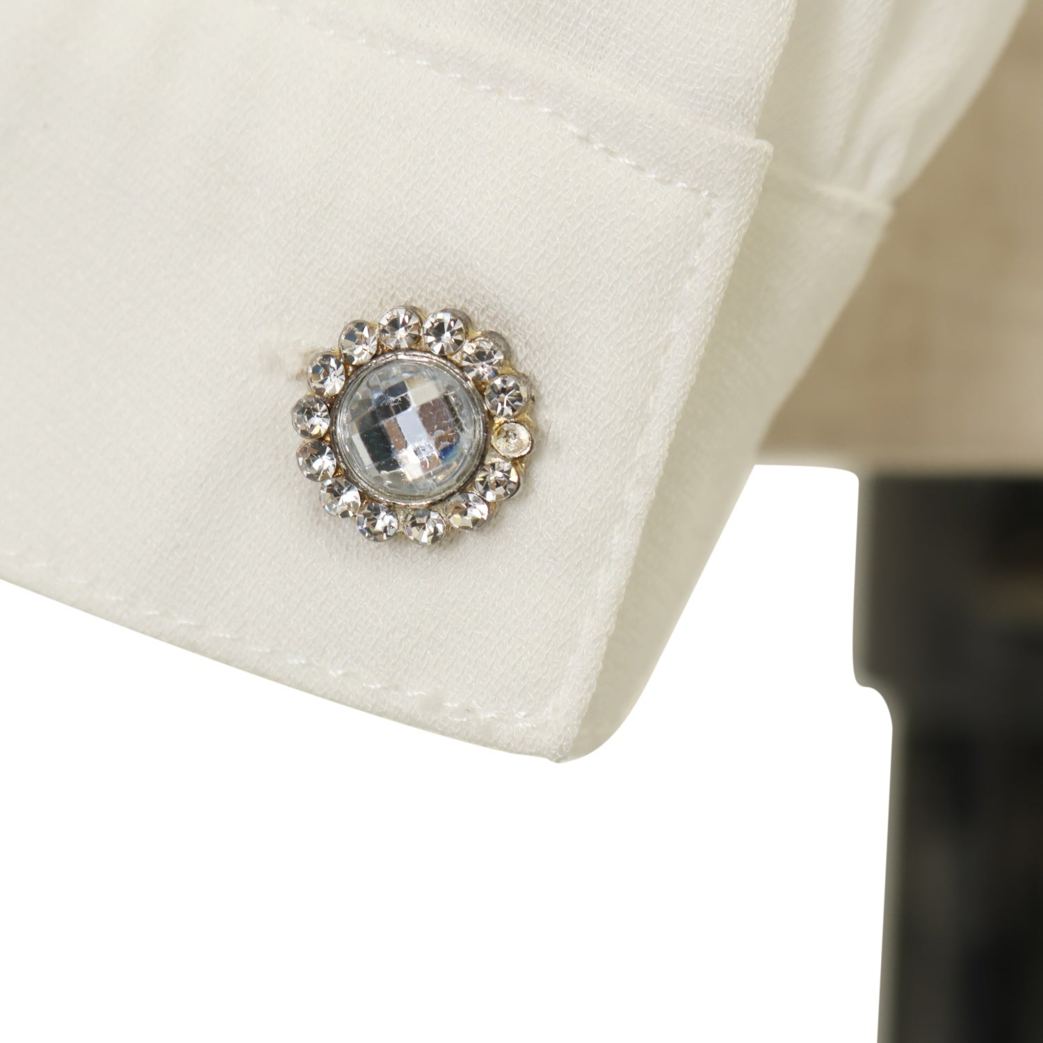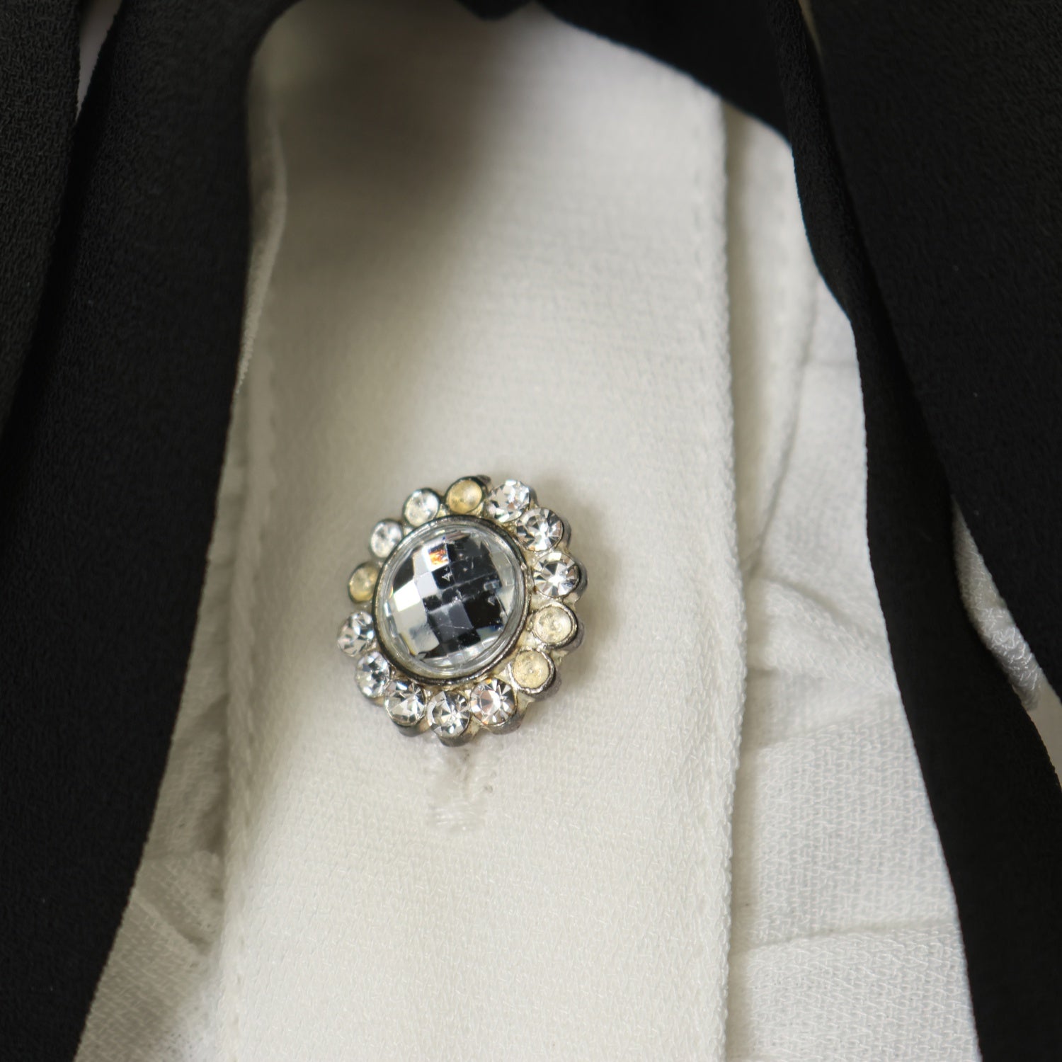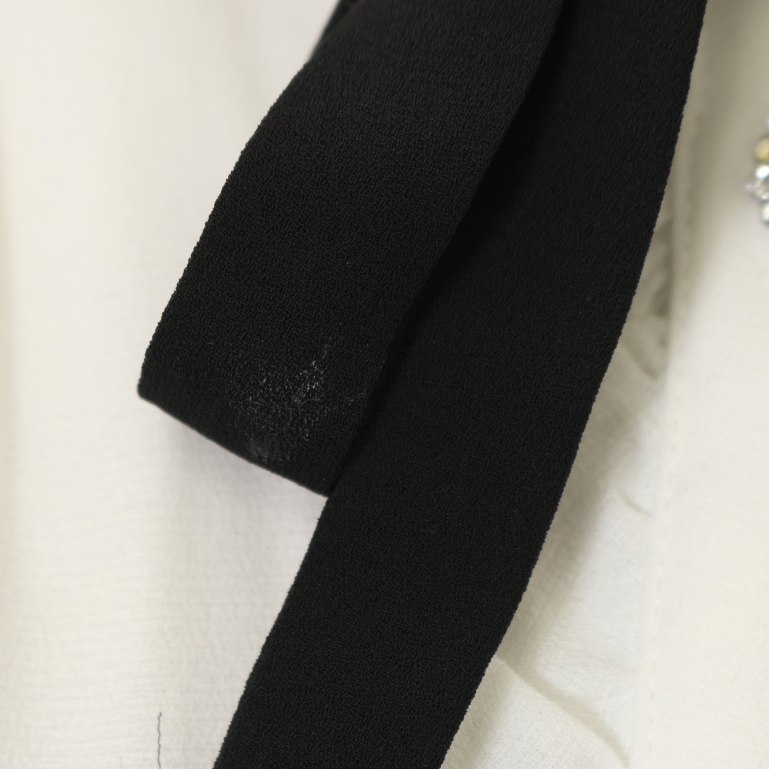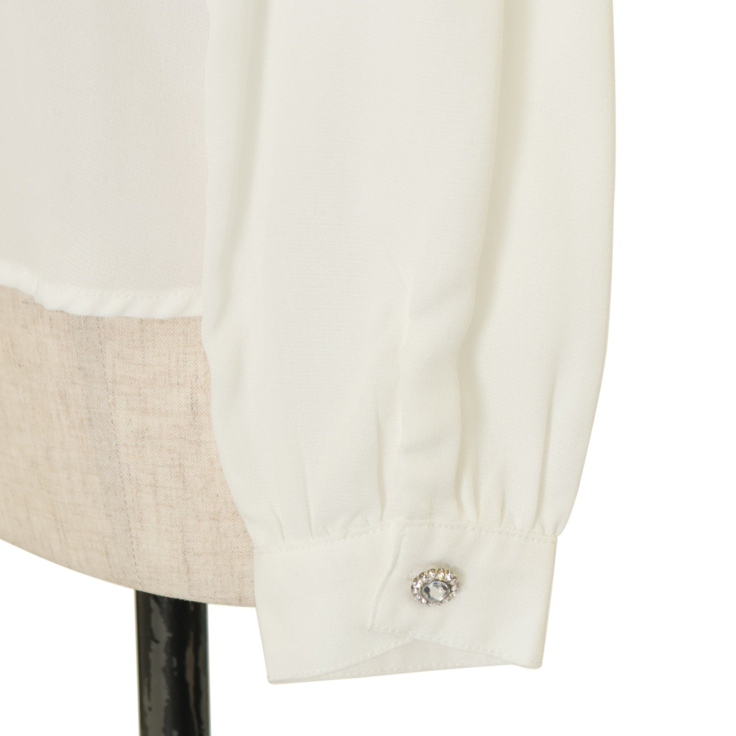 【USED】【Mサイズ】パールトリムレース衿ブラウス