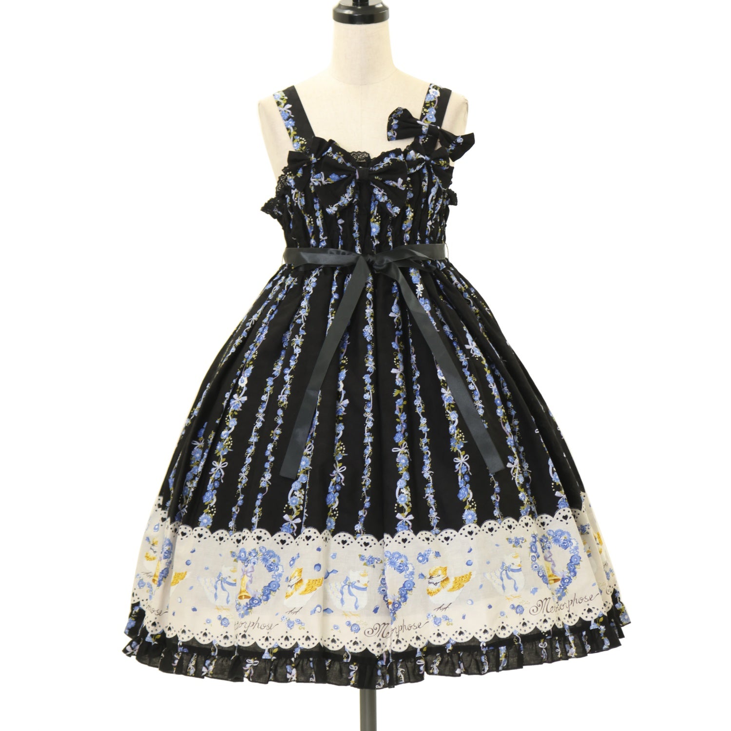 【USED】happy bell ハイウエストシャーリングジャンパースカート+リボンバレッタセット