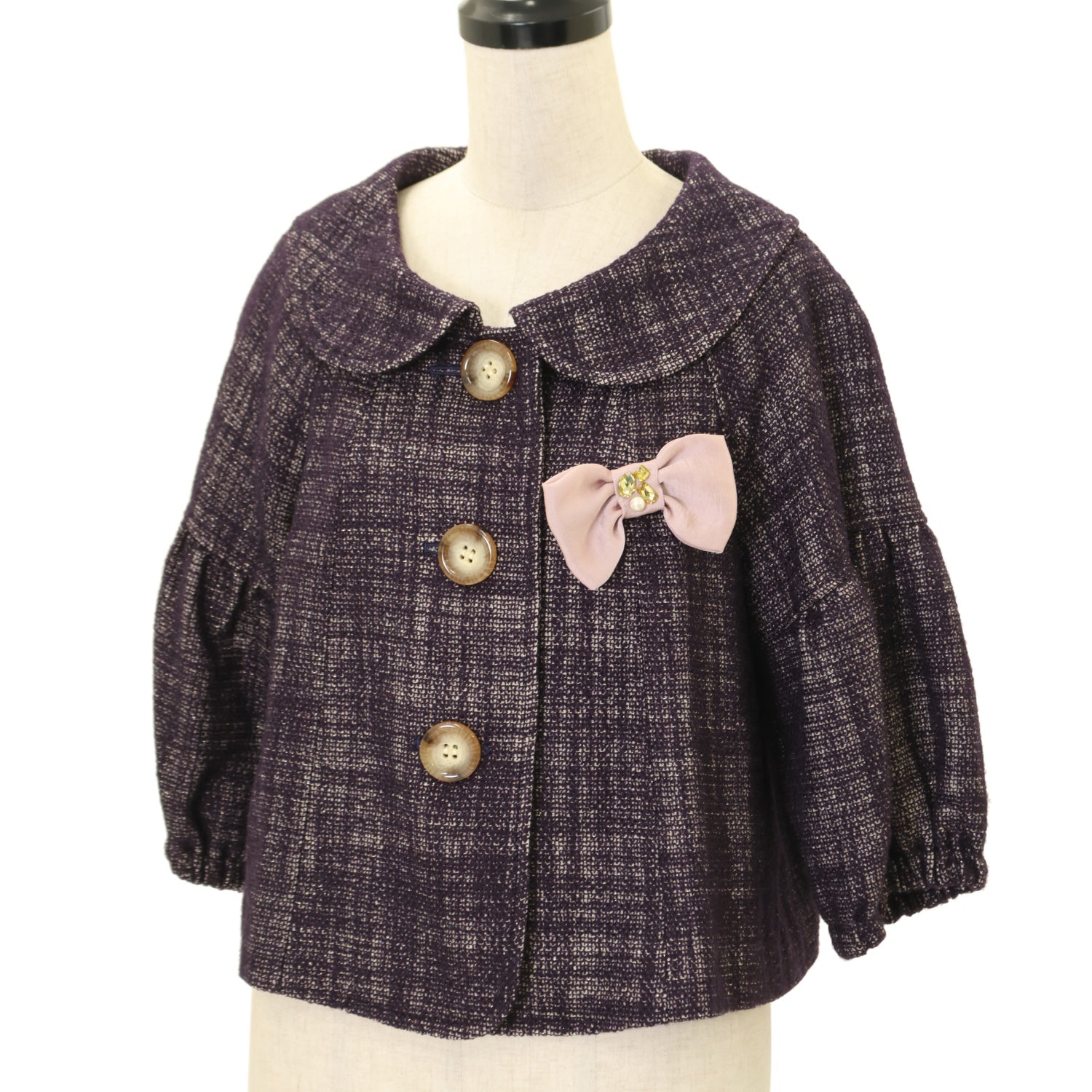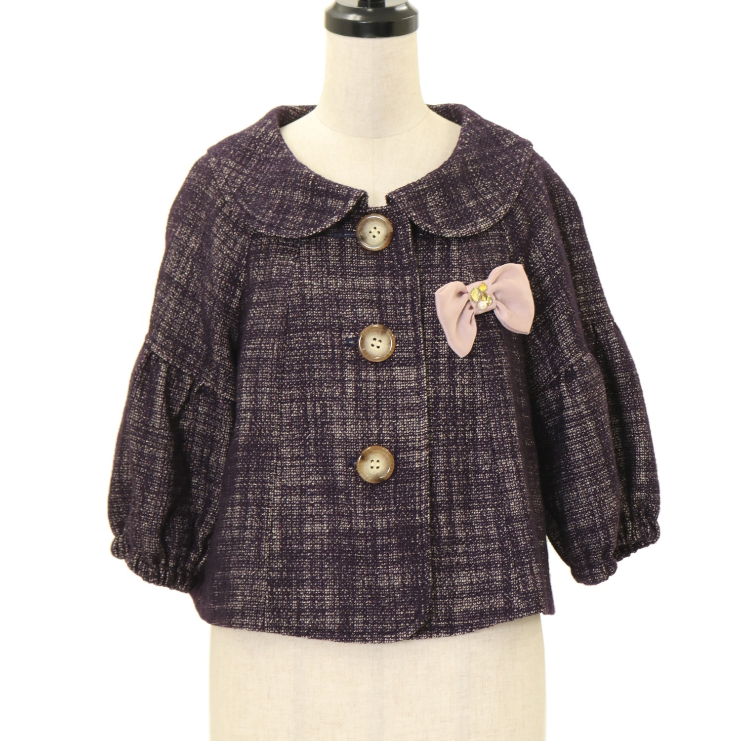 【USED】リボンブローチ付 ラメツイード ショートジャケット