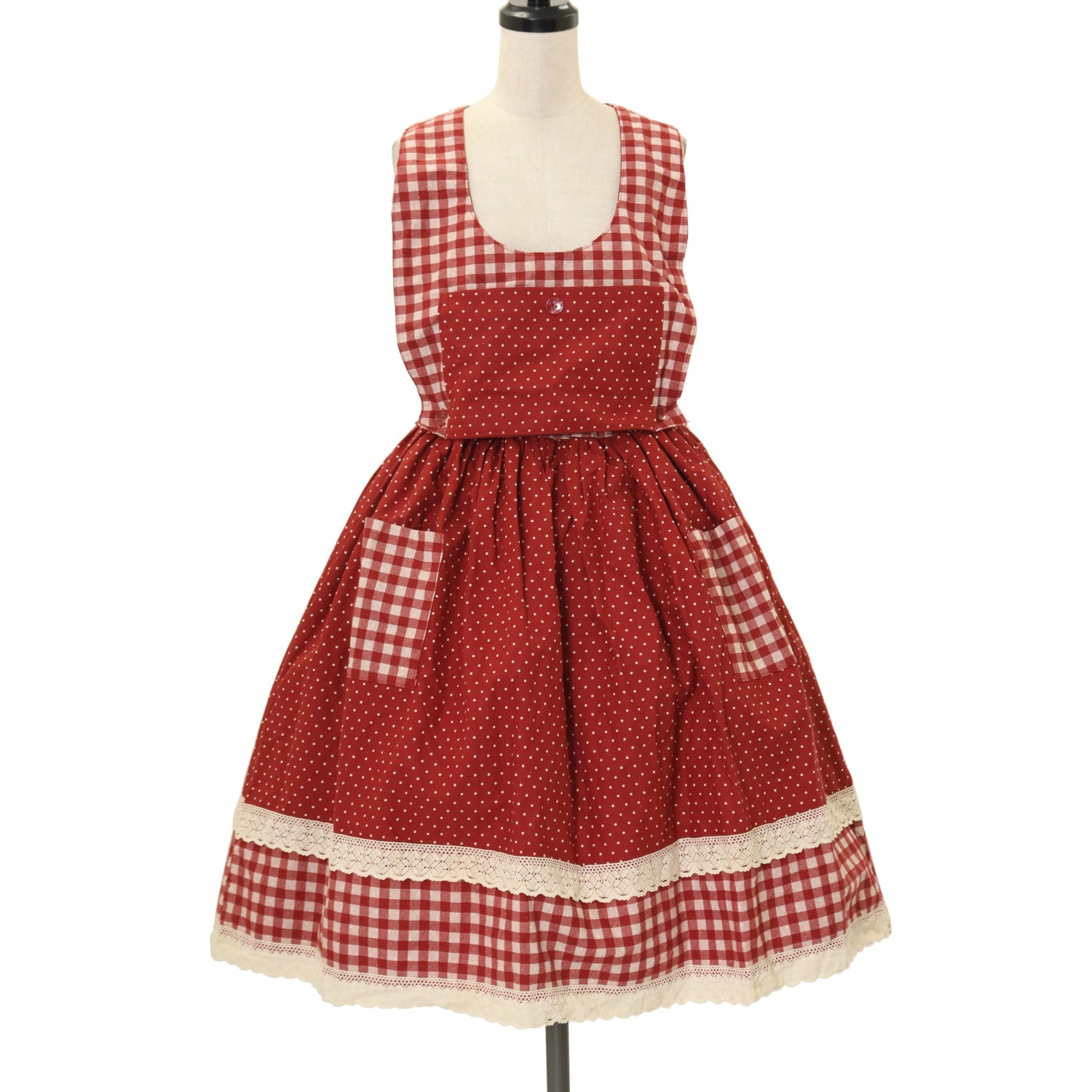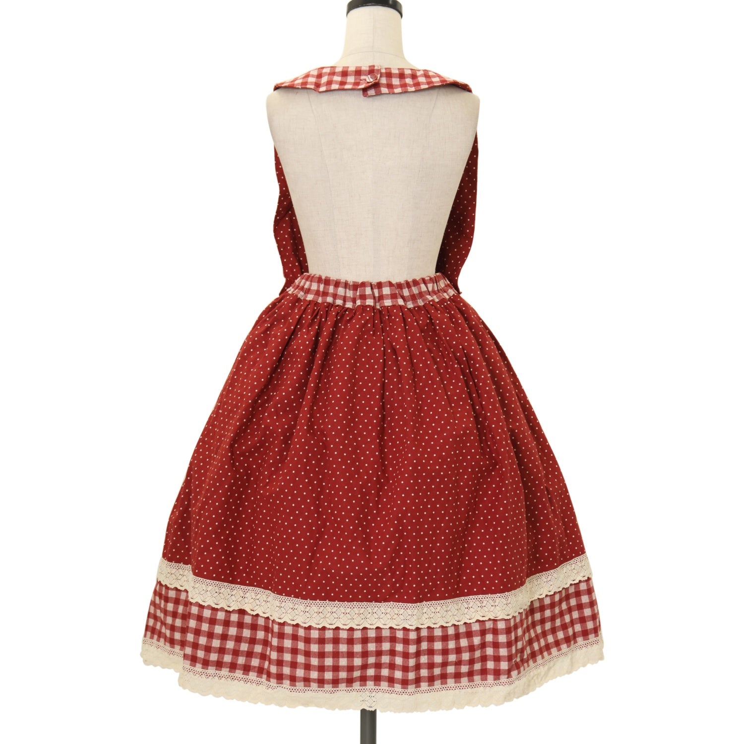 【USED】サロペットスカート3【赤ドット×チェック柄】