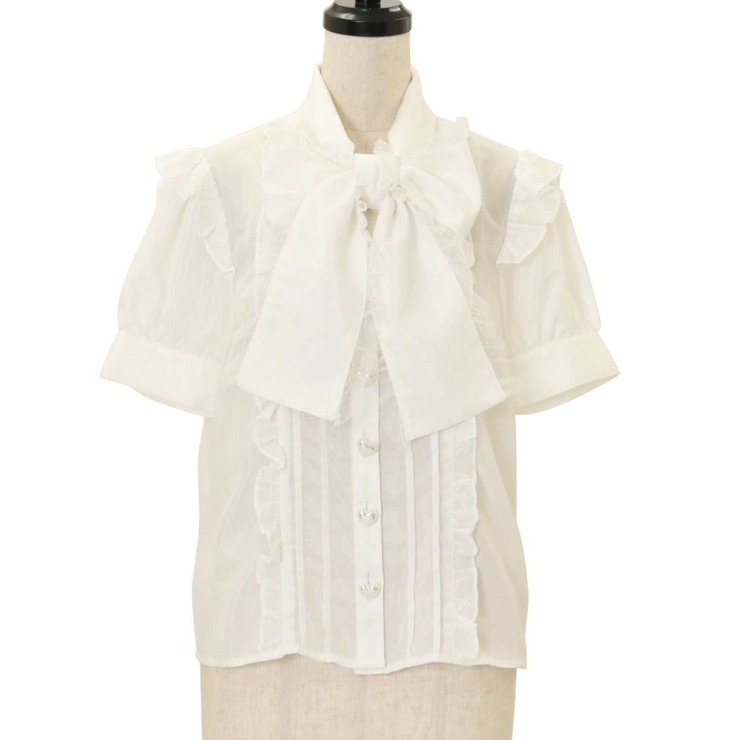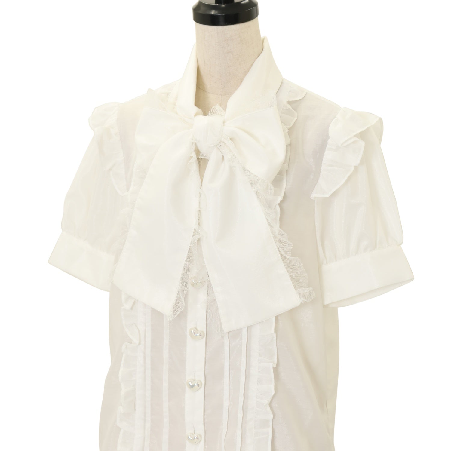 【USED】【Mサイズ】チュールフリルリボンタイブラウス
