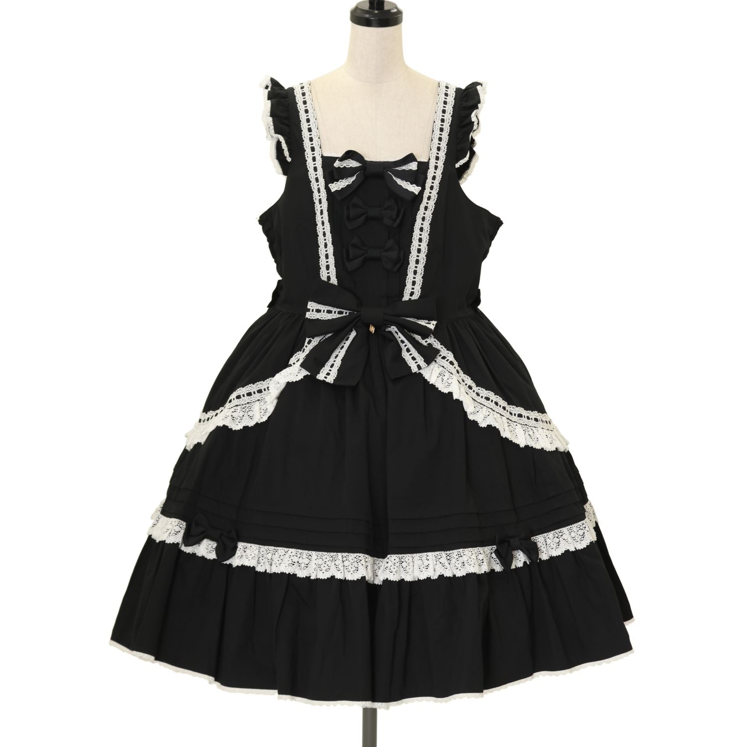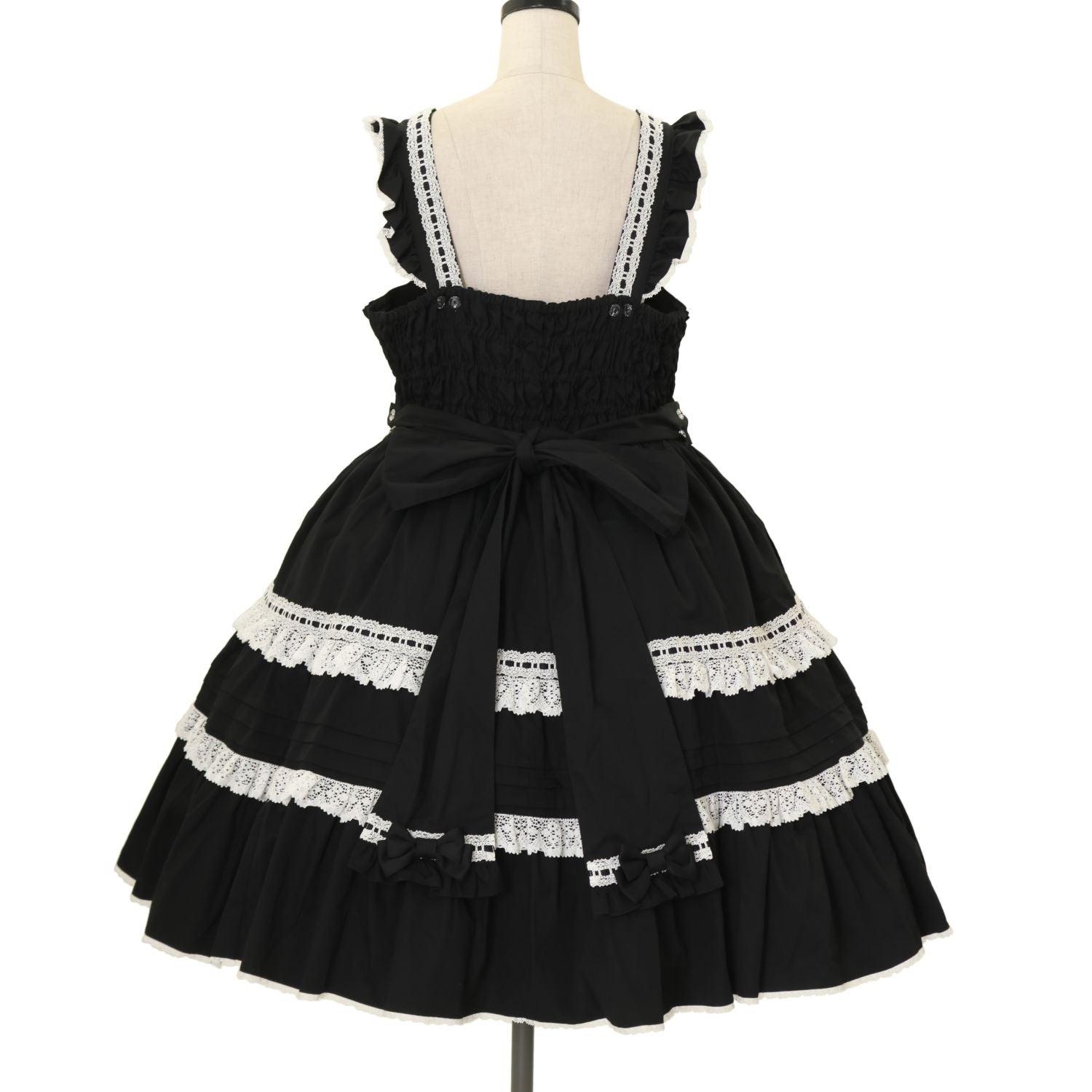 【USED】【プラスサイズ】はしごレースピンタックリボンジャンパースカート