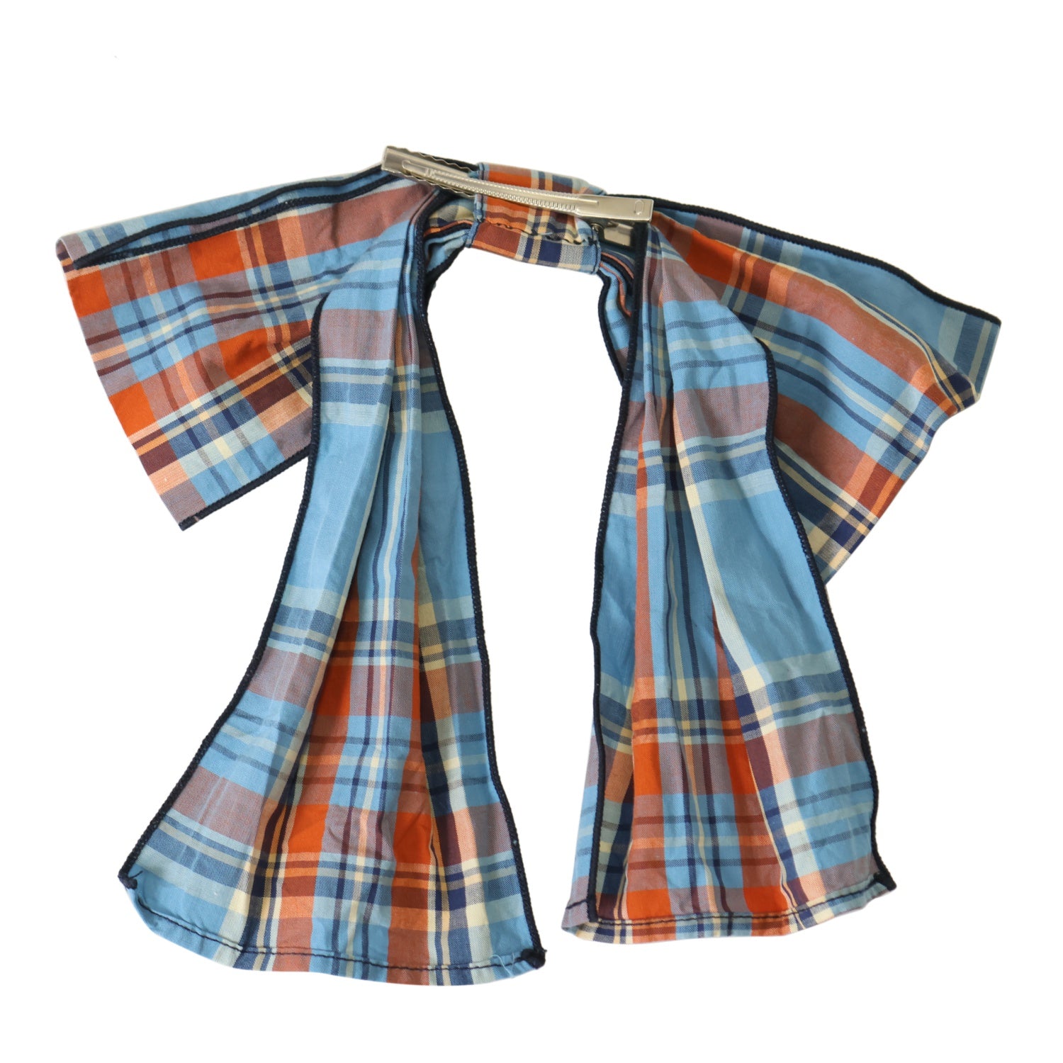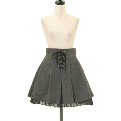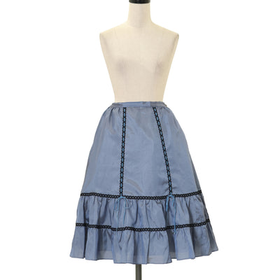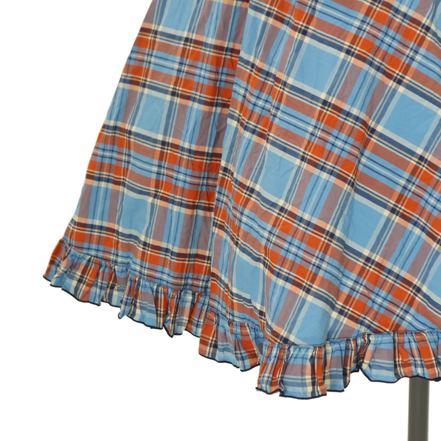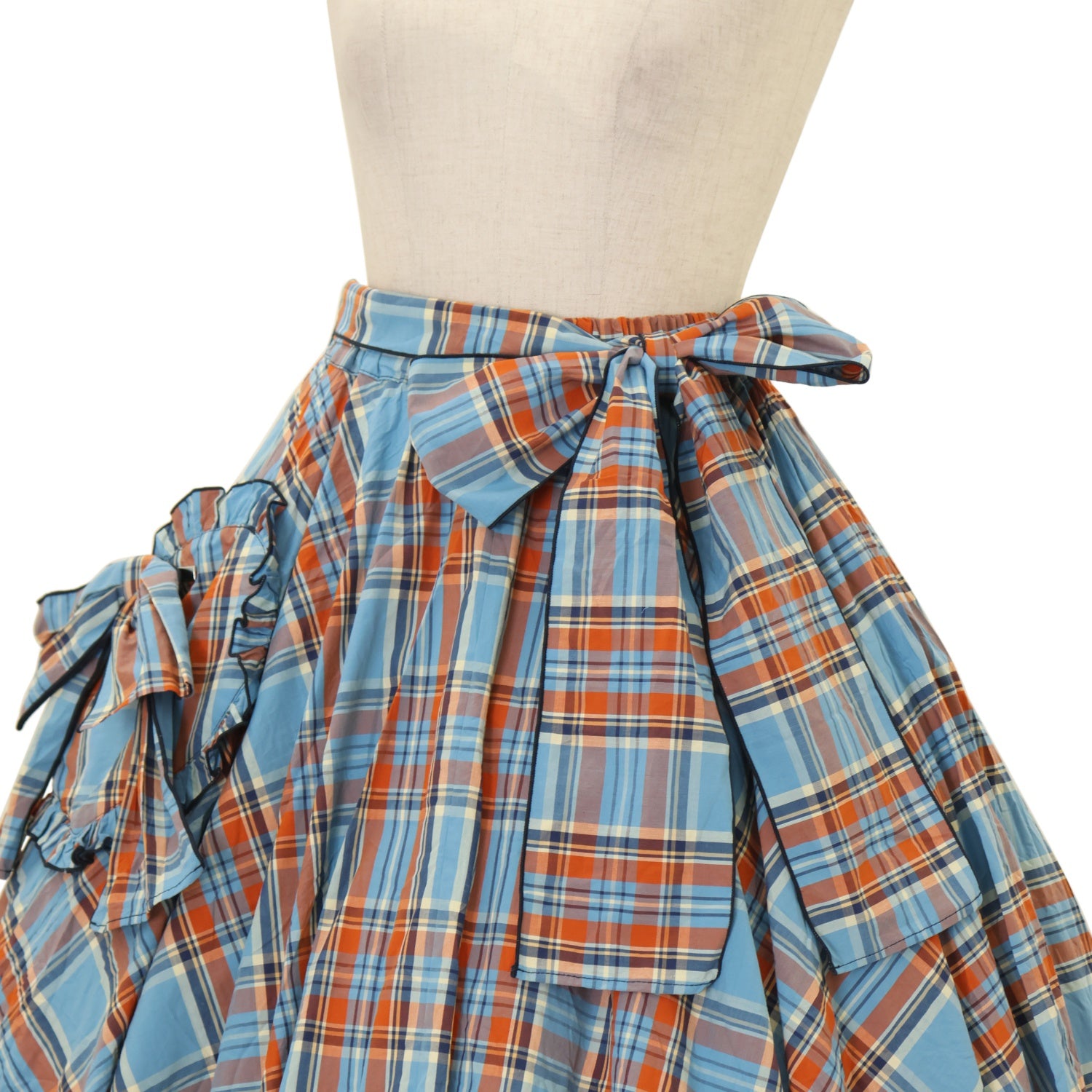 【USED】ハートポケットサーキュラースカート【水色チェック×紺刺繍ロゴ】