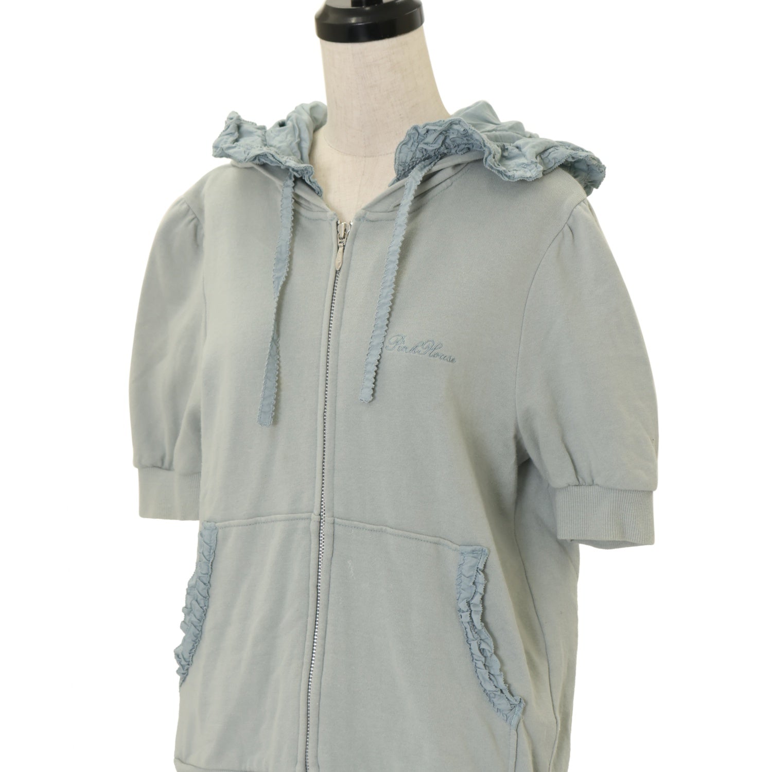 【USED】【Lサイズ】フリルフード半袖パーカー