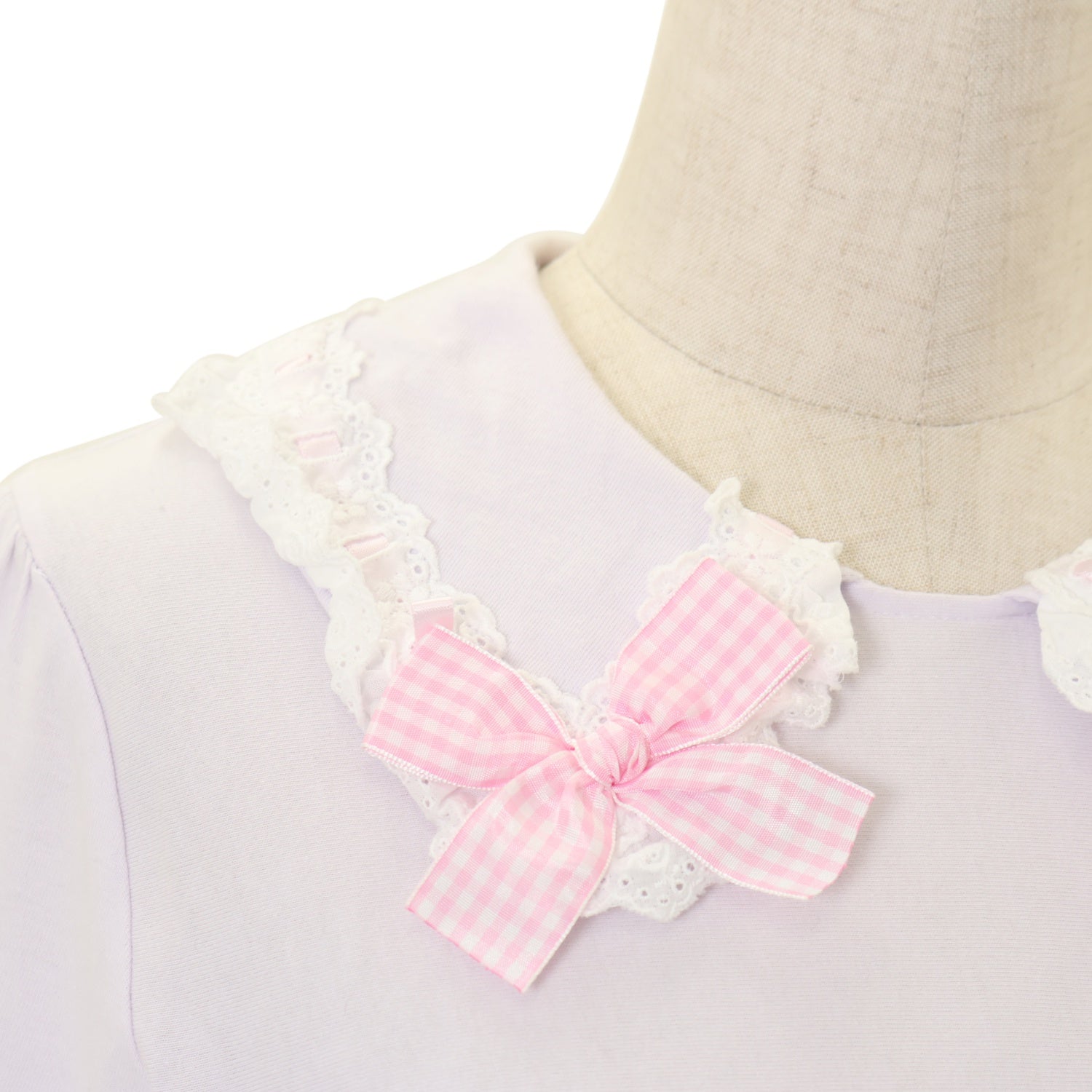【USED】はしごレースギンガムリボンカットソー