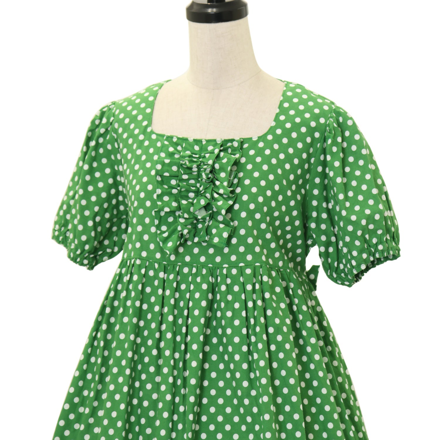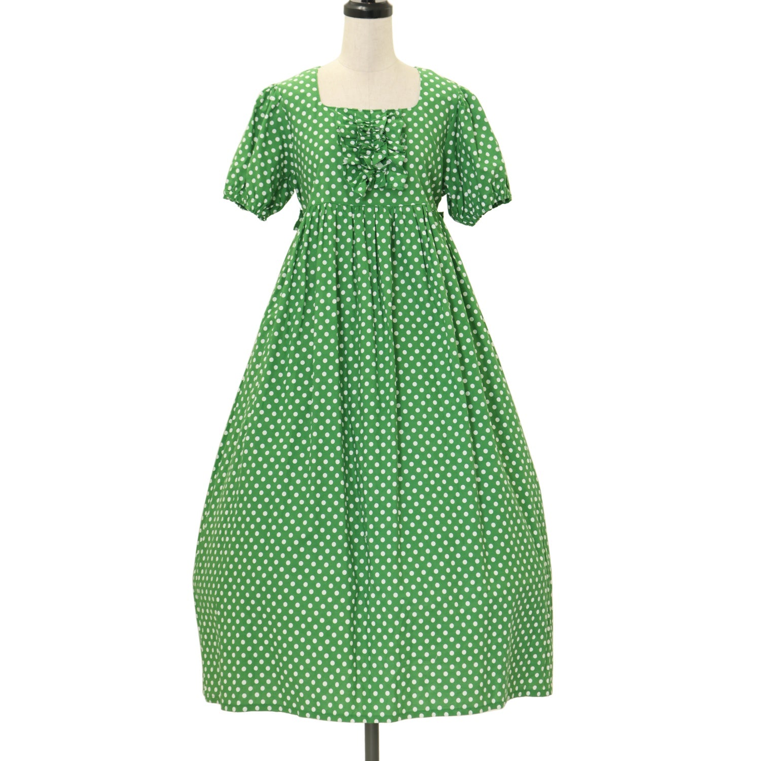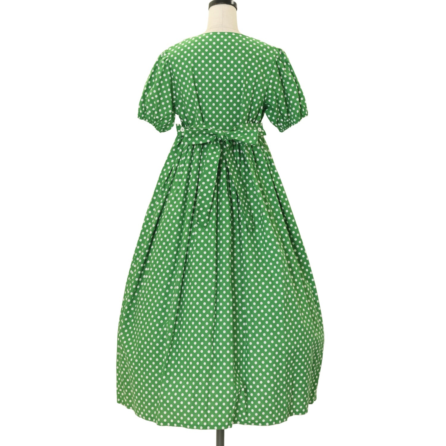 【USED】デイリー半袖ロングワンピース【グリーン・水玉柄】