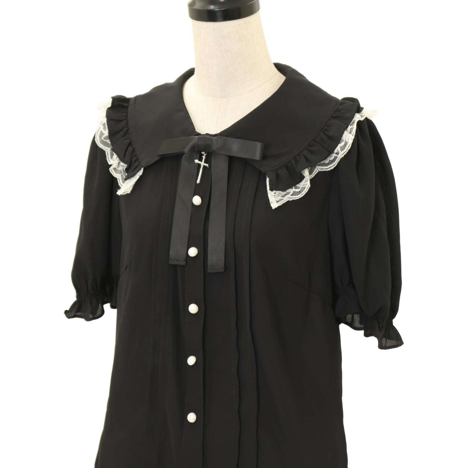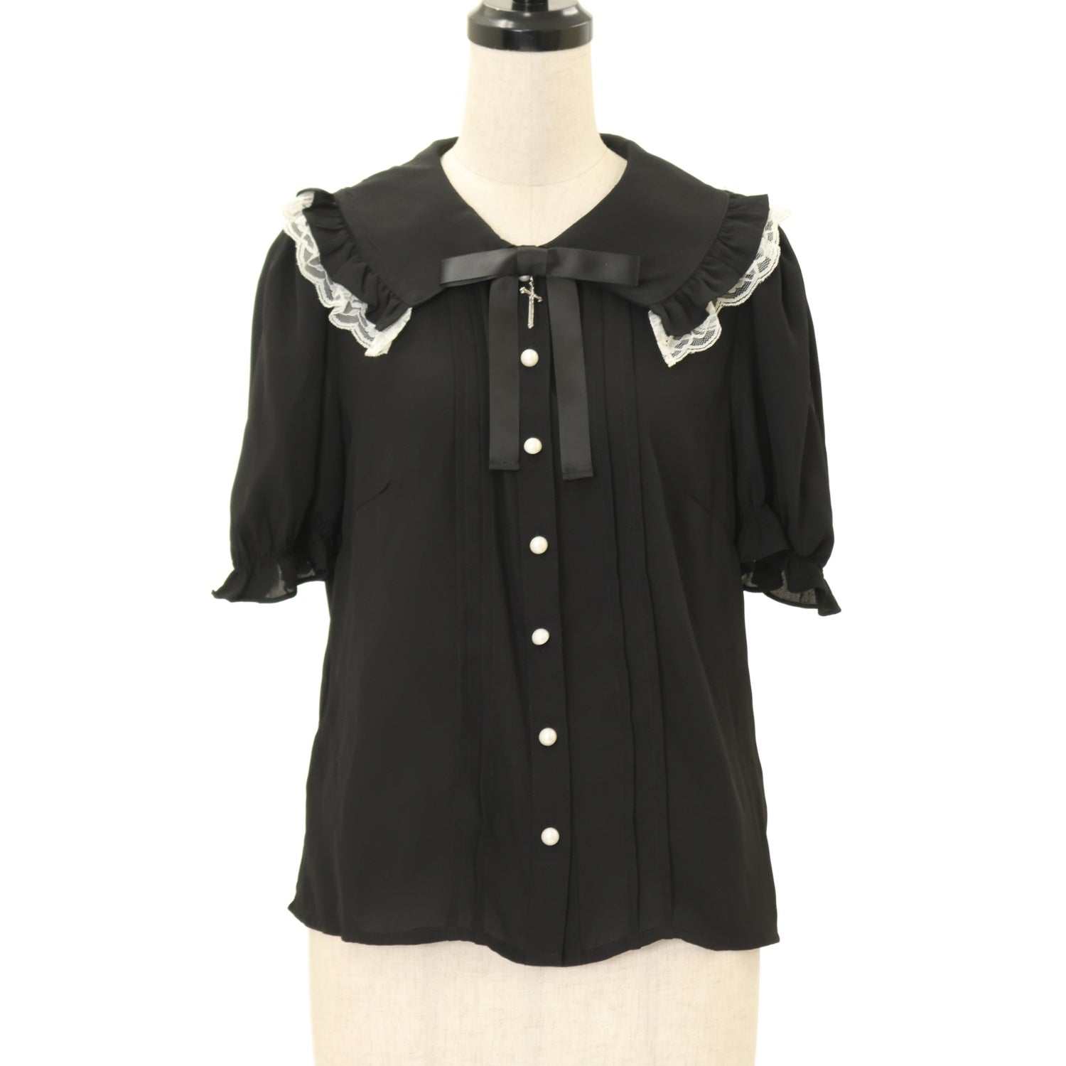 【USED】【Mサイズ】クロスチャームリボンブラウス