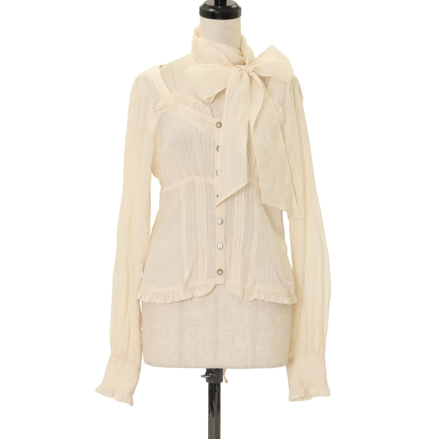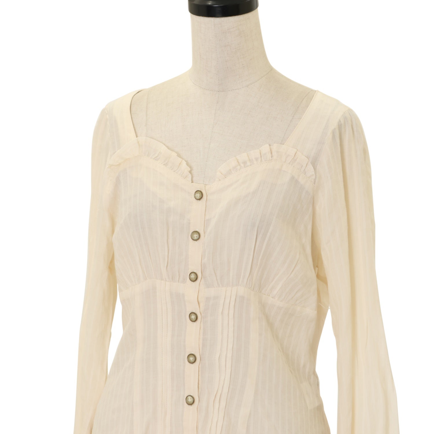前身頃左切り替え部分・右袖のピンタックの縫製にほつれ