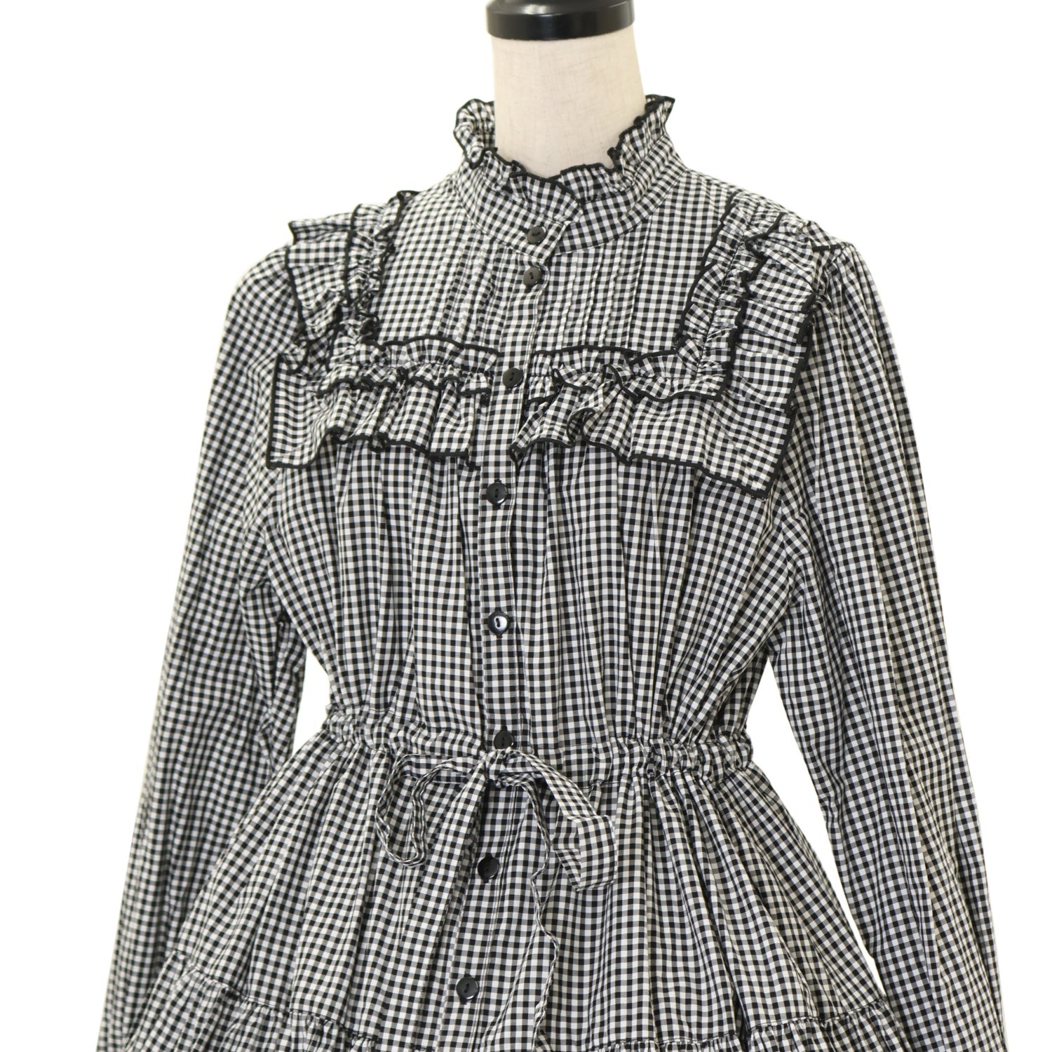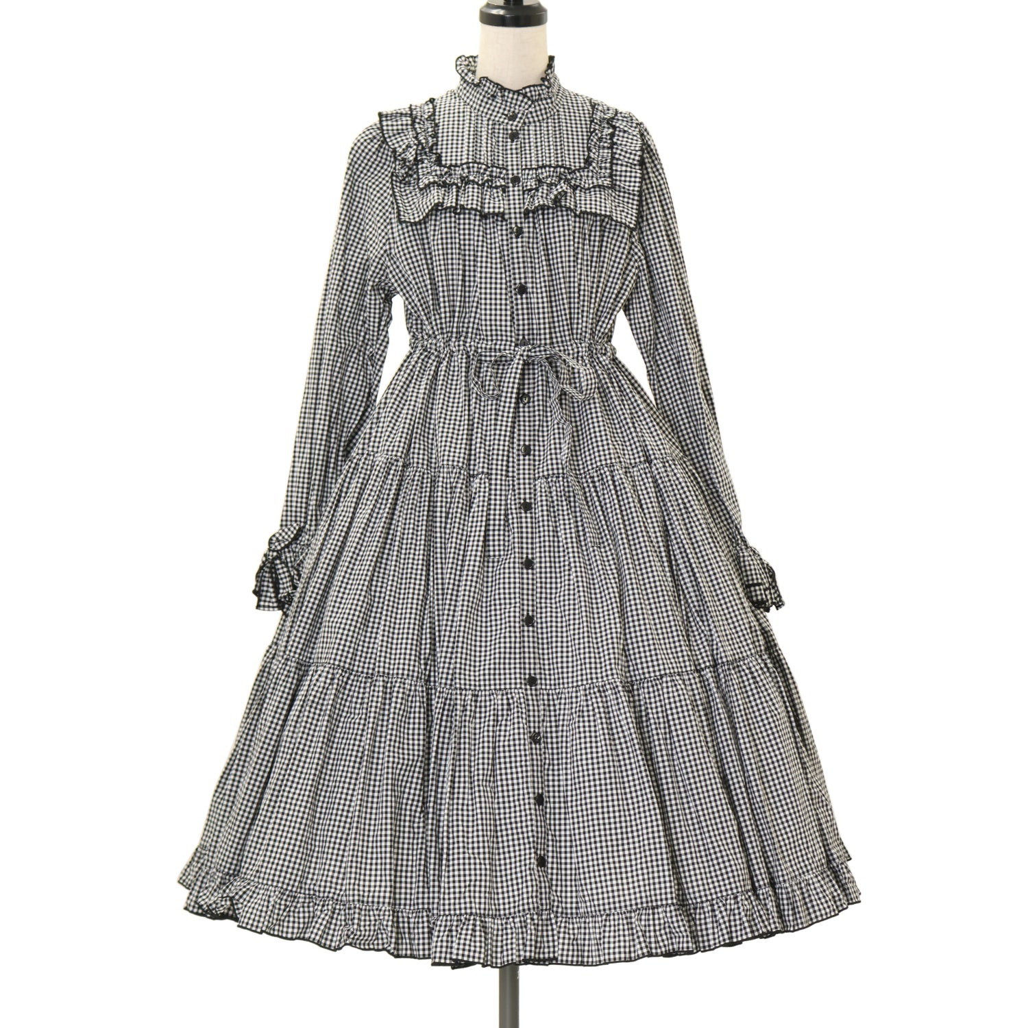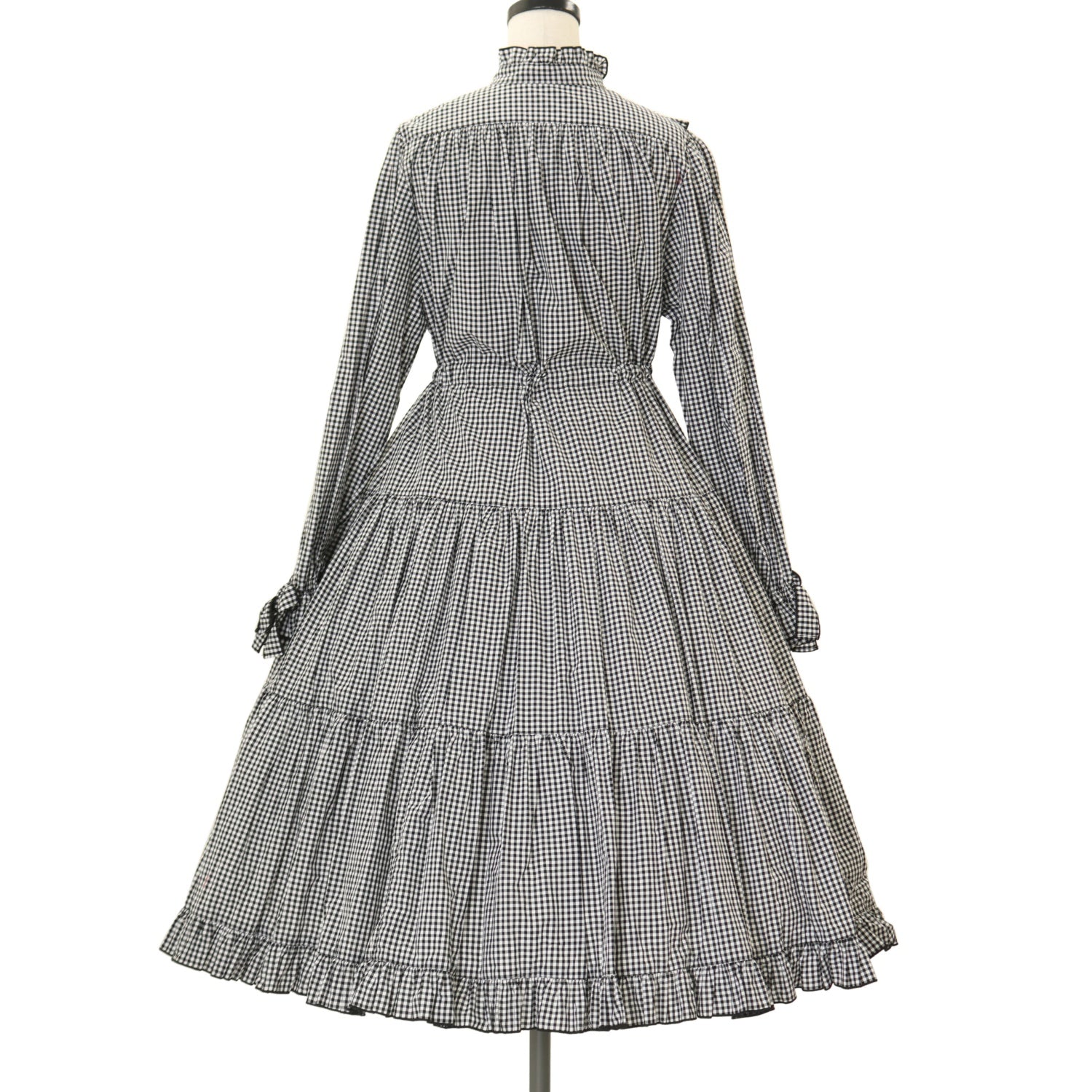 【USED】スタンドカラーワンピース【黒ギンガム】