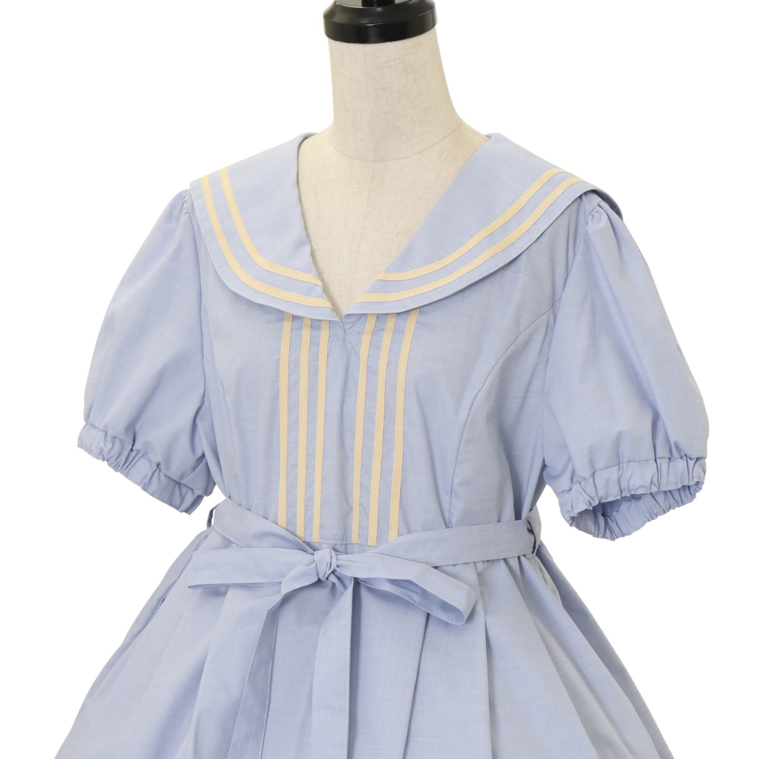 【USED】セーラーチュニックワンピース【水色×生成】