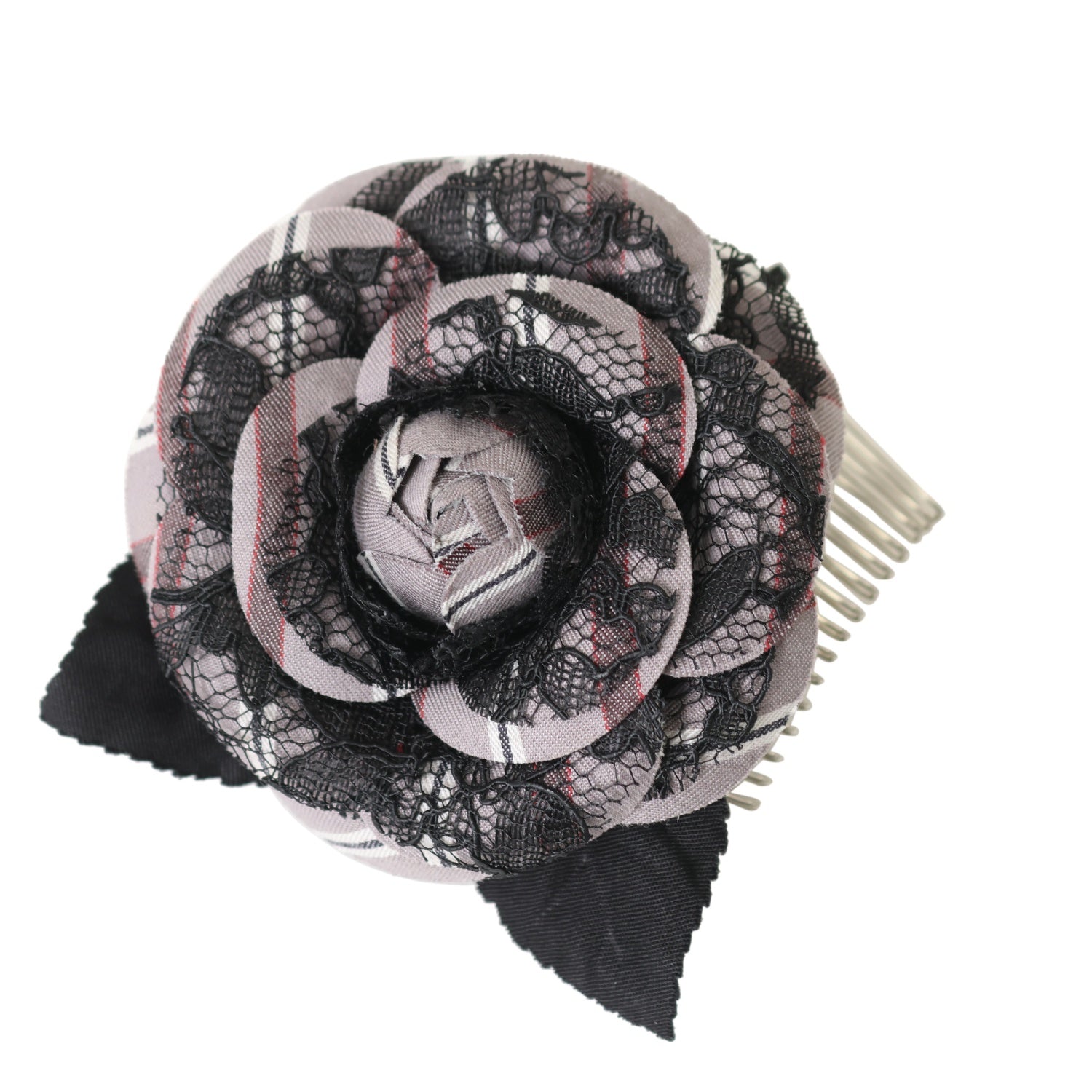 【USED】レジメンタルストライプコサージュ(アッシュ)