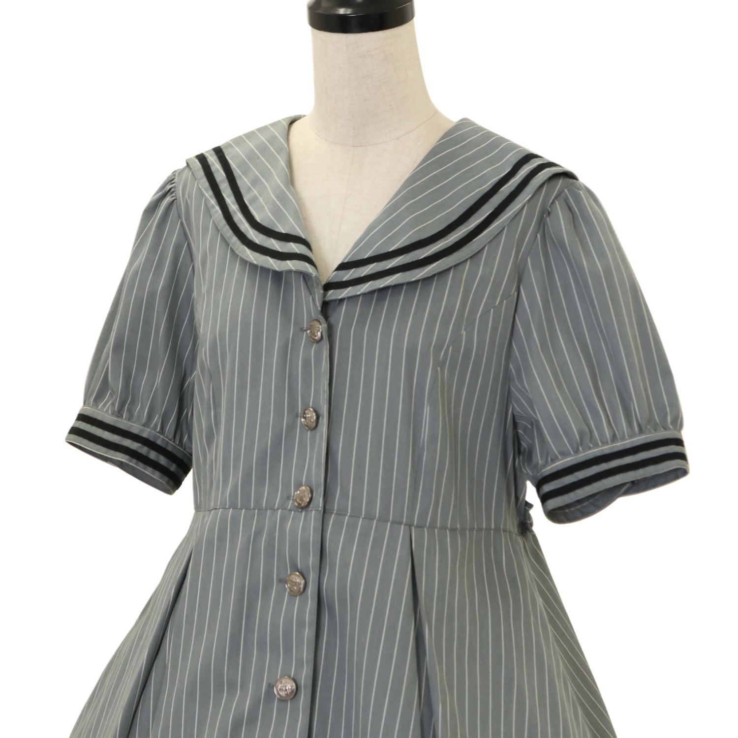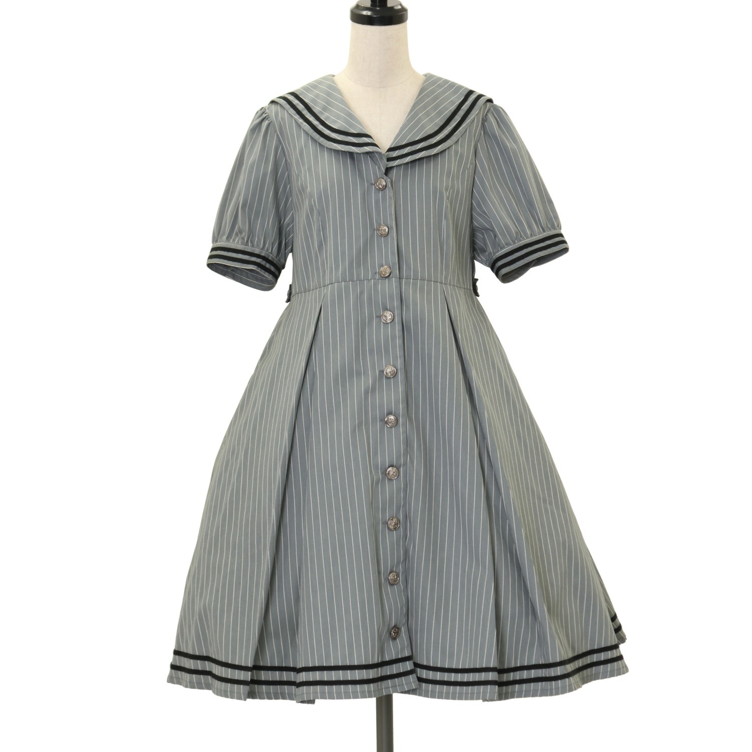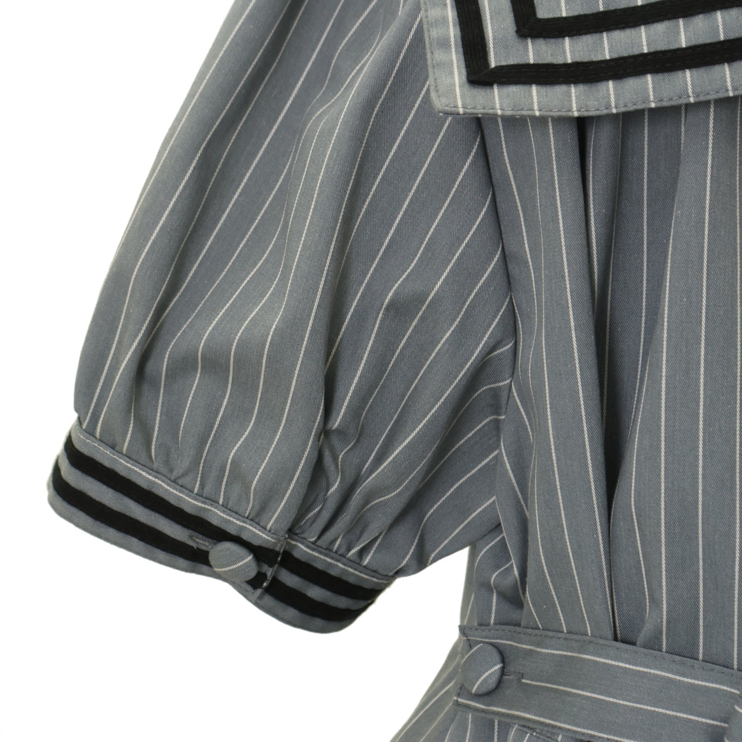 【USED】半袖セーラーワンピース【グレー×黒ライン】