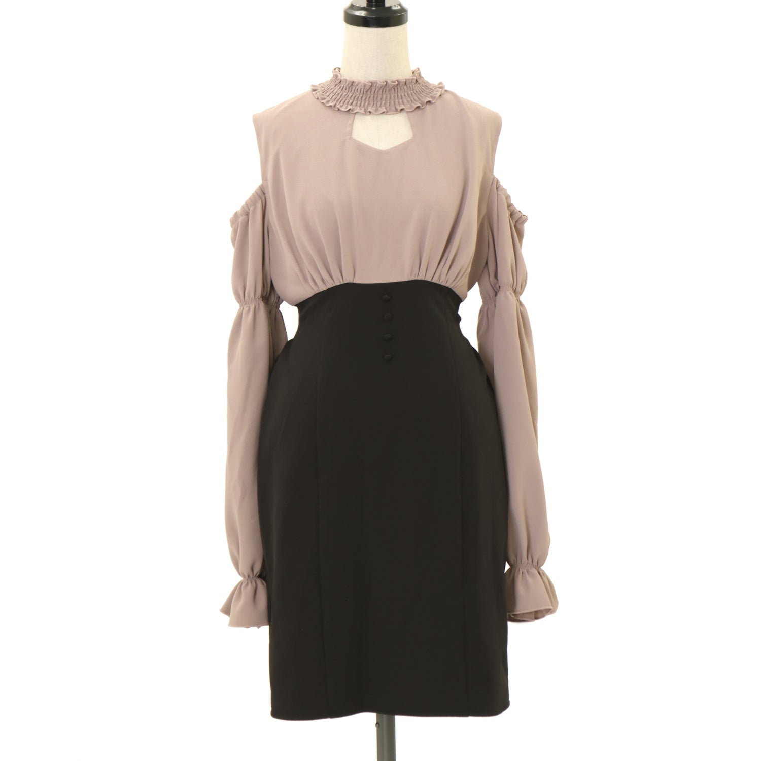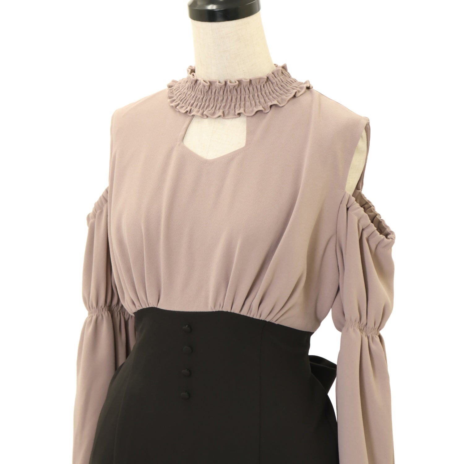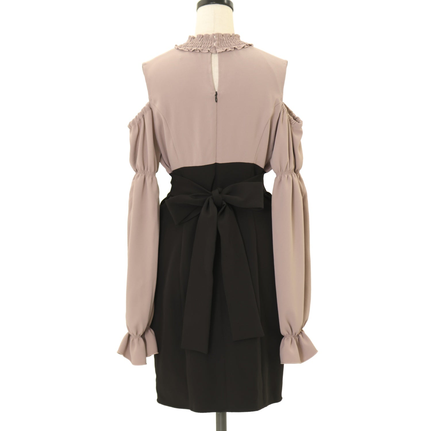 【USED】【Sサイズ】シャーリングネックデコルテドッキングワンピース