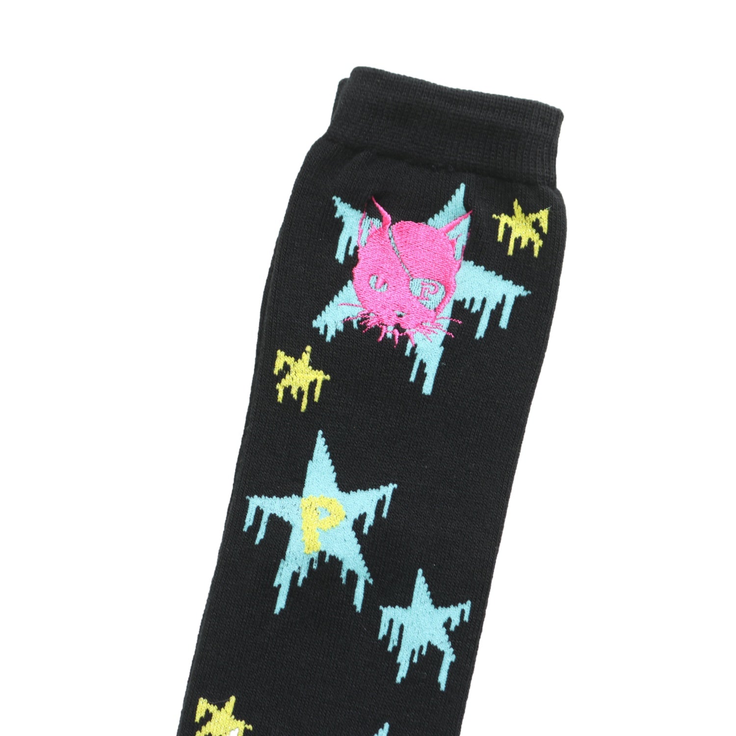 【USED】眼帯ネコ刺繍星柄オーバーニー