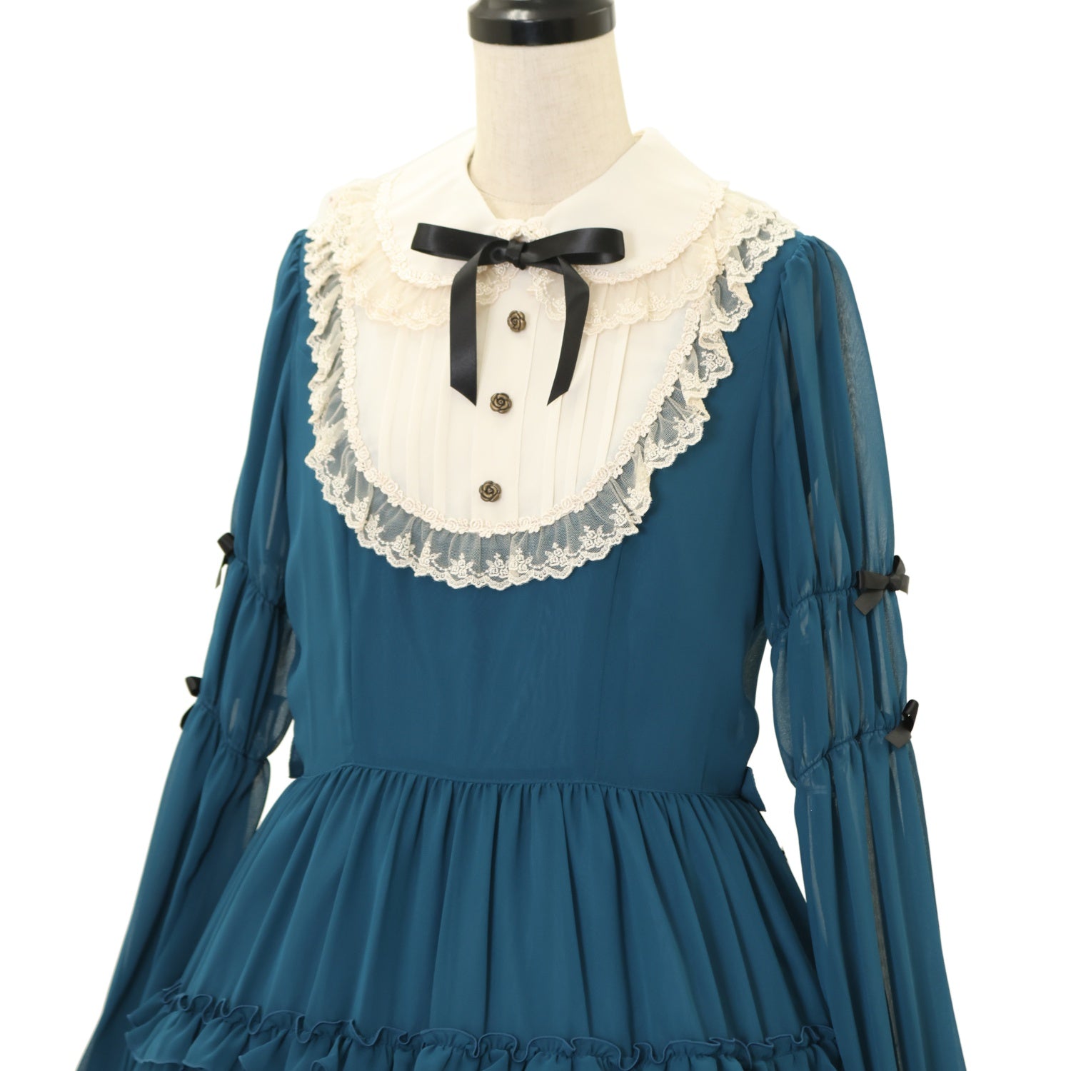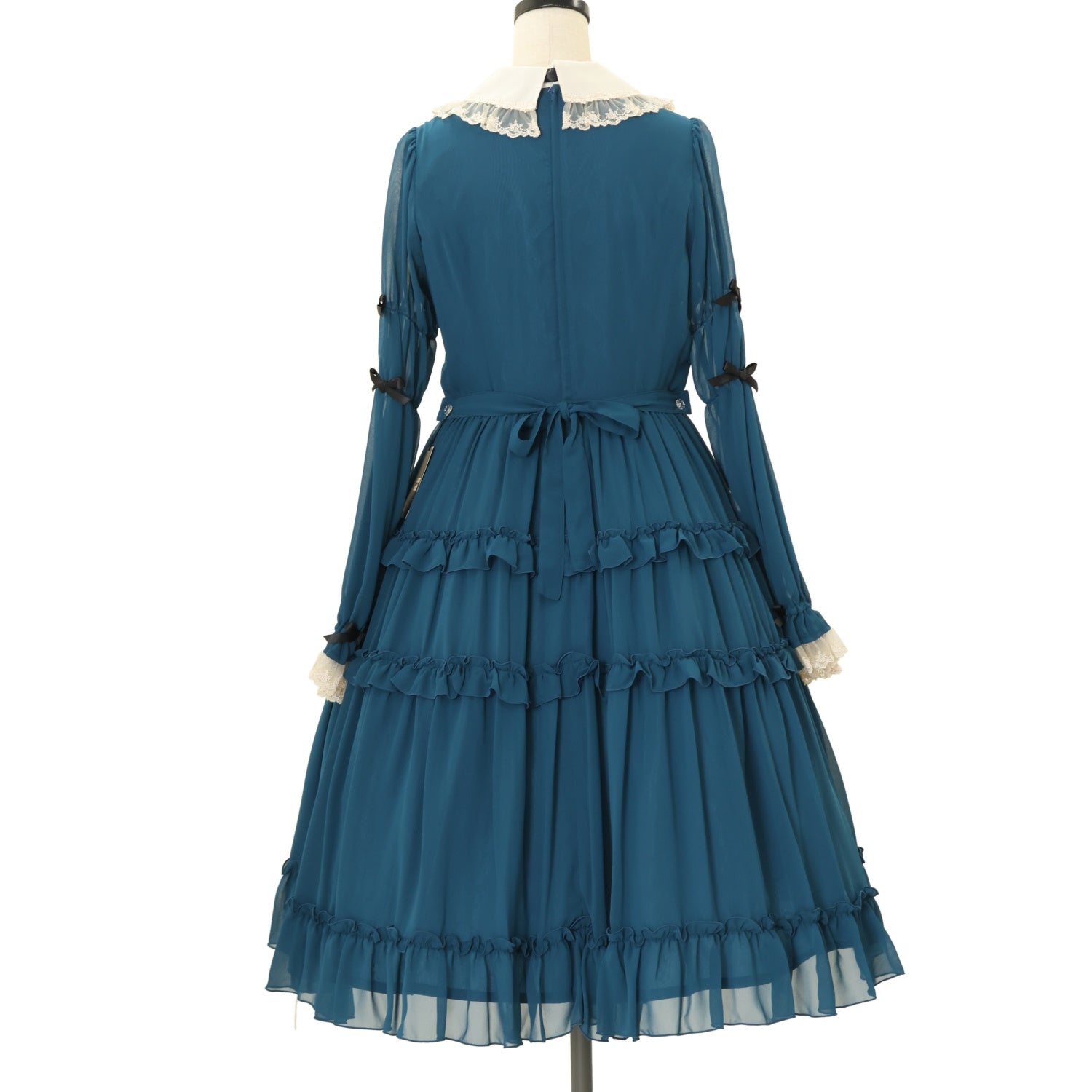 【USED】【Mサイズ】大人アリスシフォンドレス(ブルーグリーン×生成)