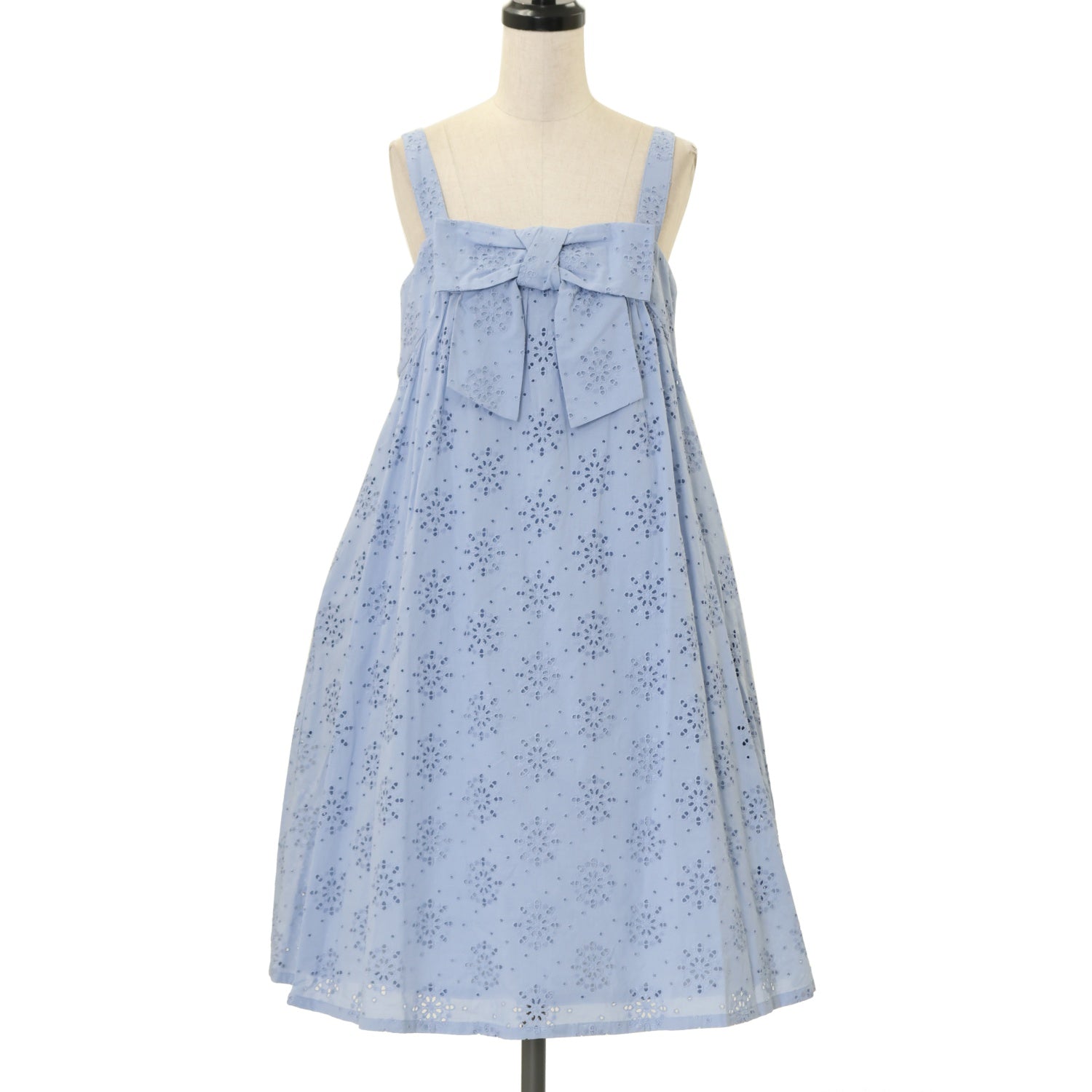 【USED】【Mサイズ】アイレットレースのリボンドレス