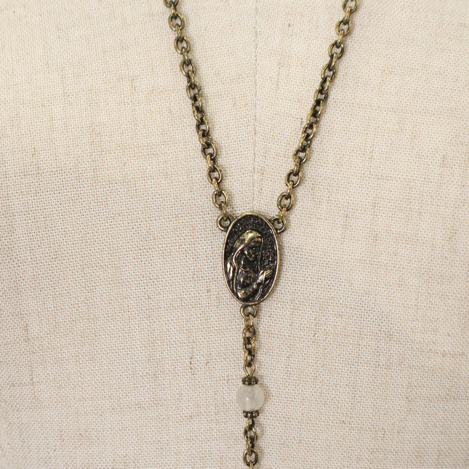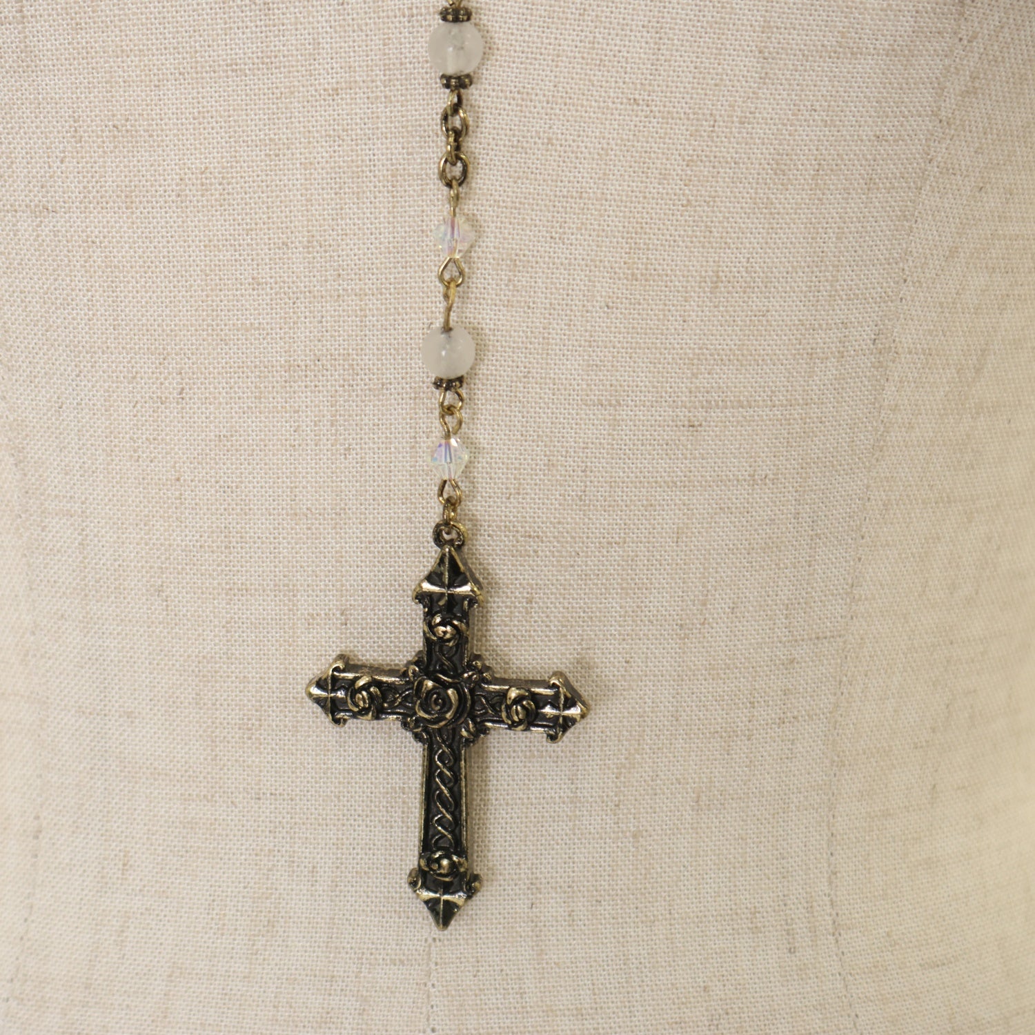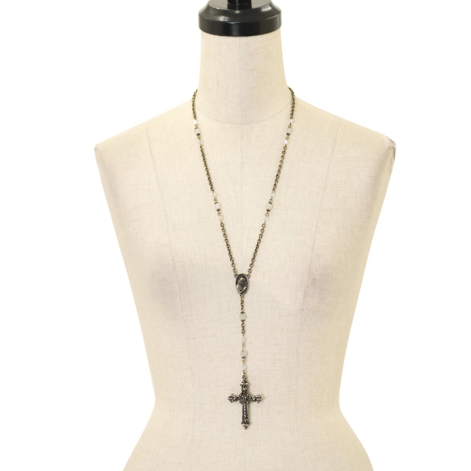 【USED】ローズ十字架ロザリオネックレス(white × gold)