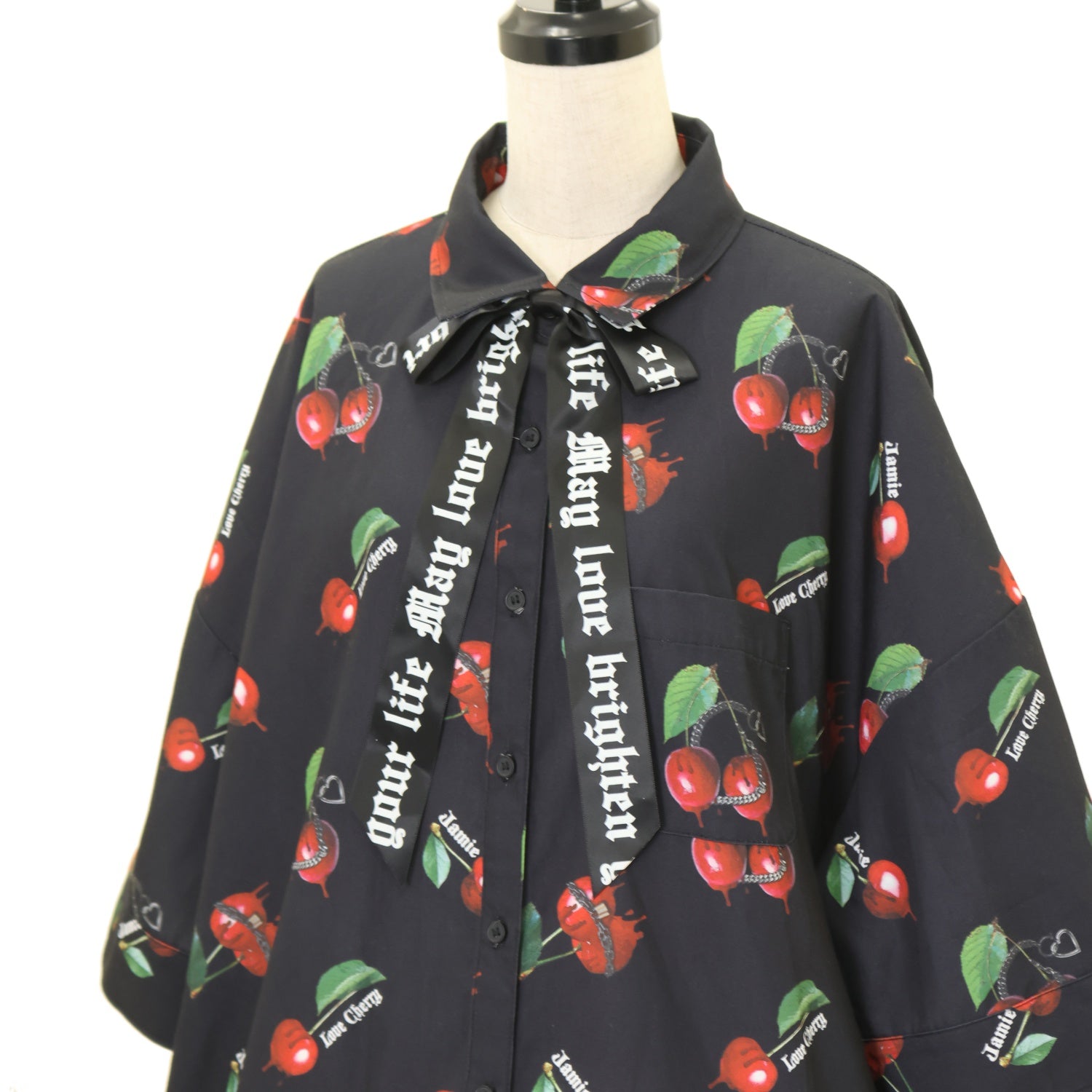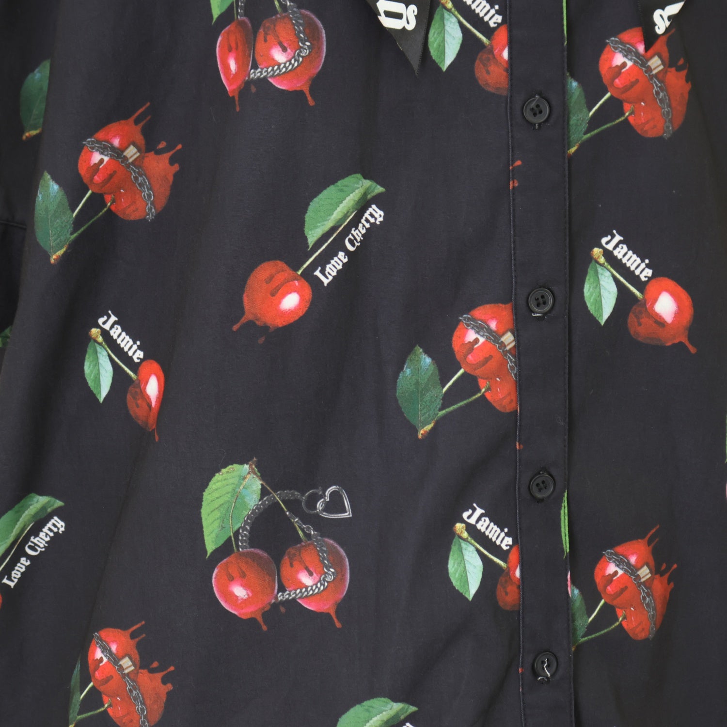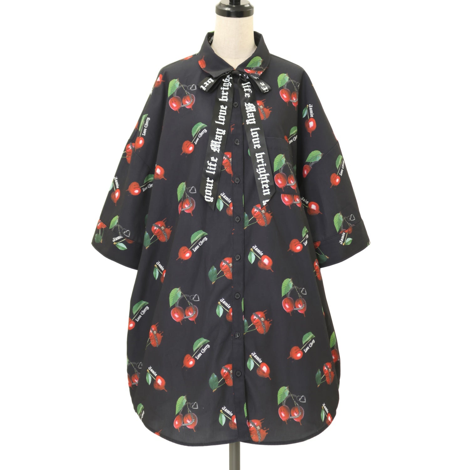 【USED】チェリープリントリボンタイドレスシャツ