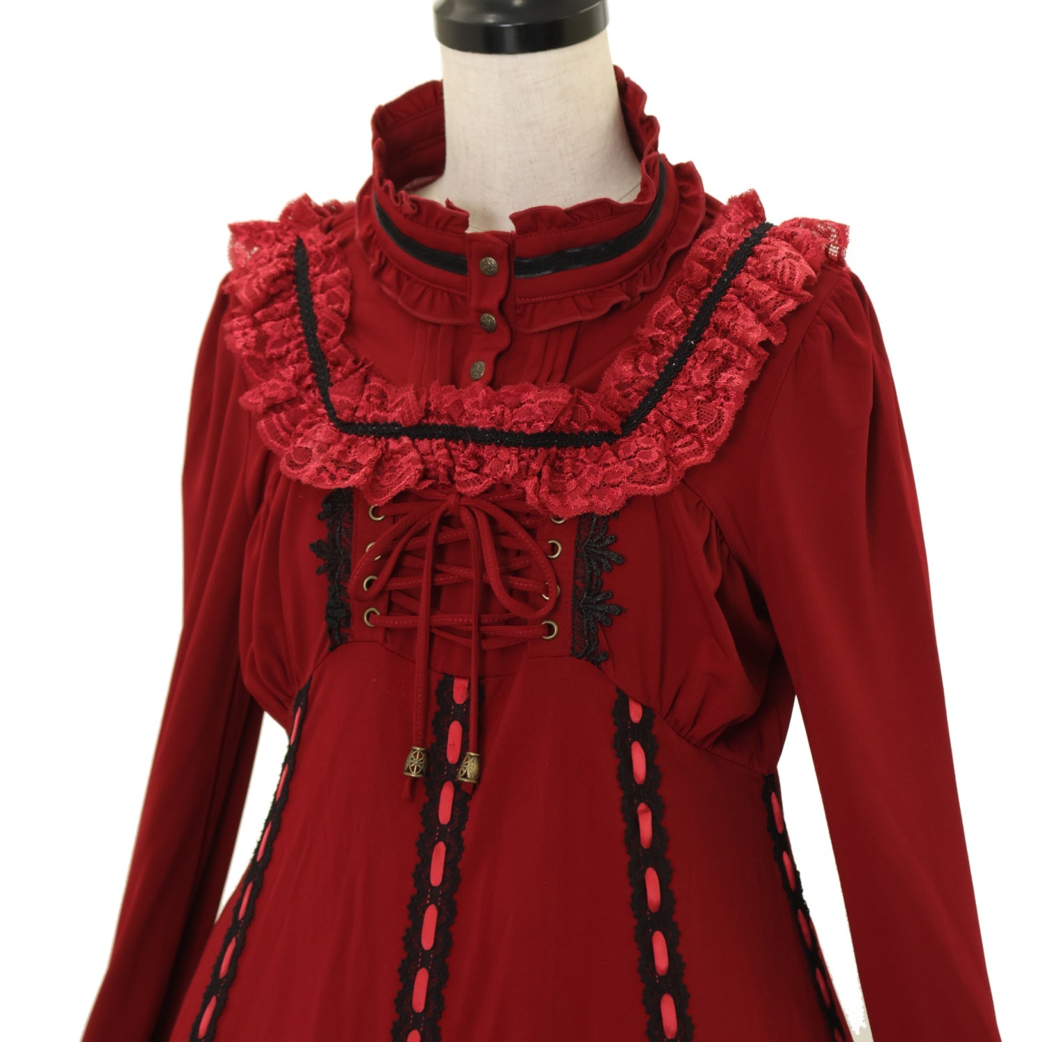 【USED】ONESTE はしごレーススタンドカラーワンピース