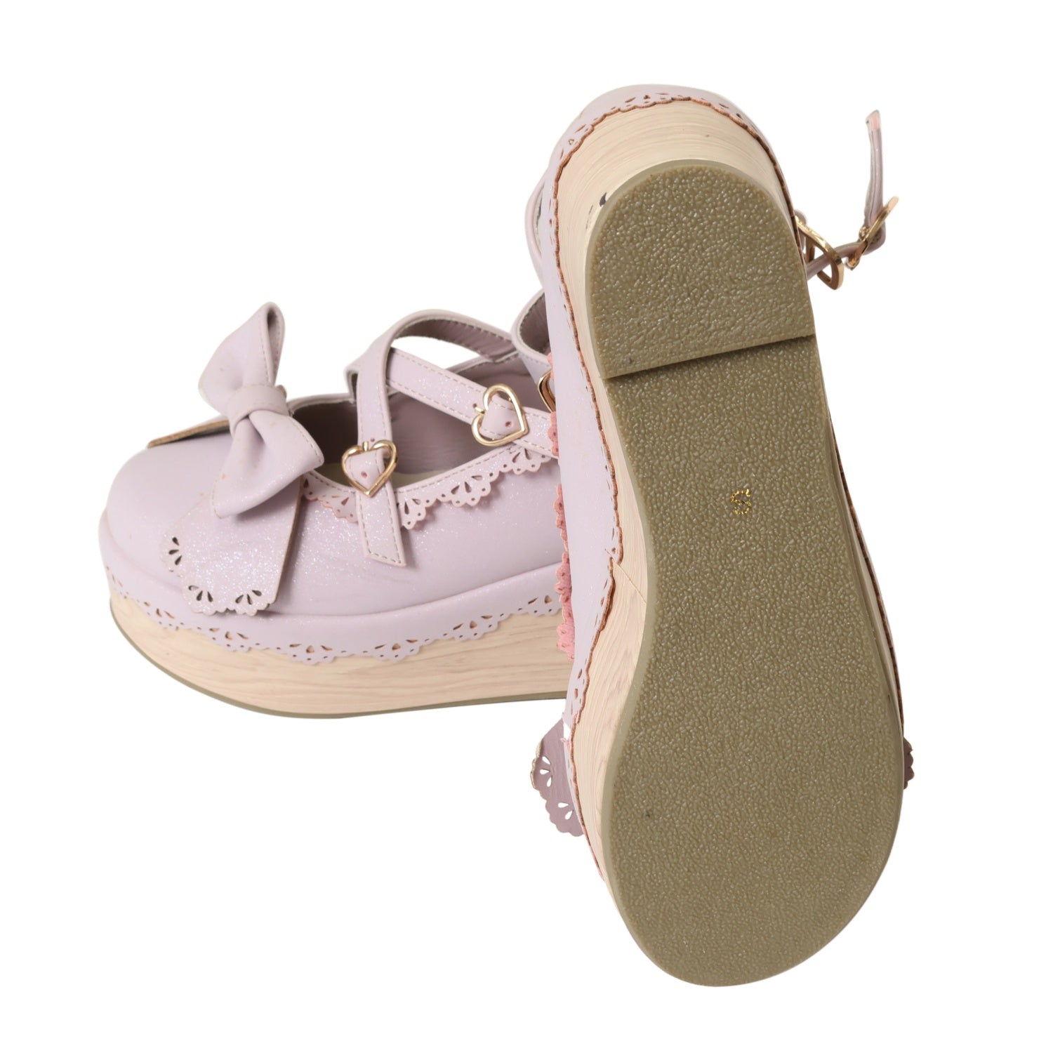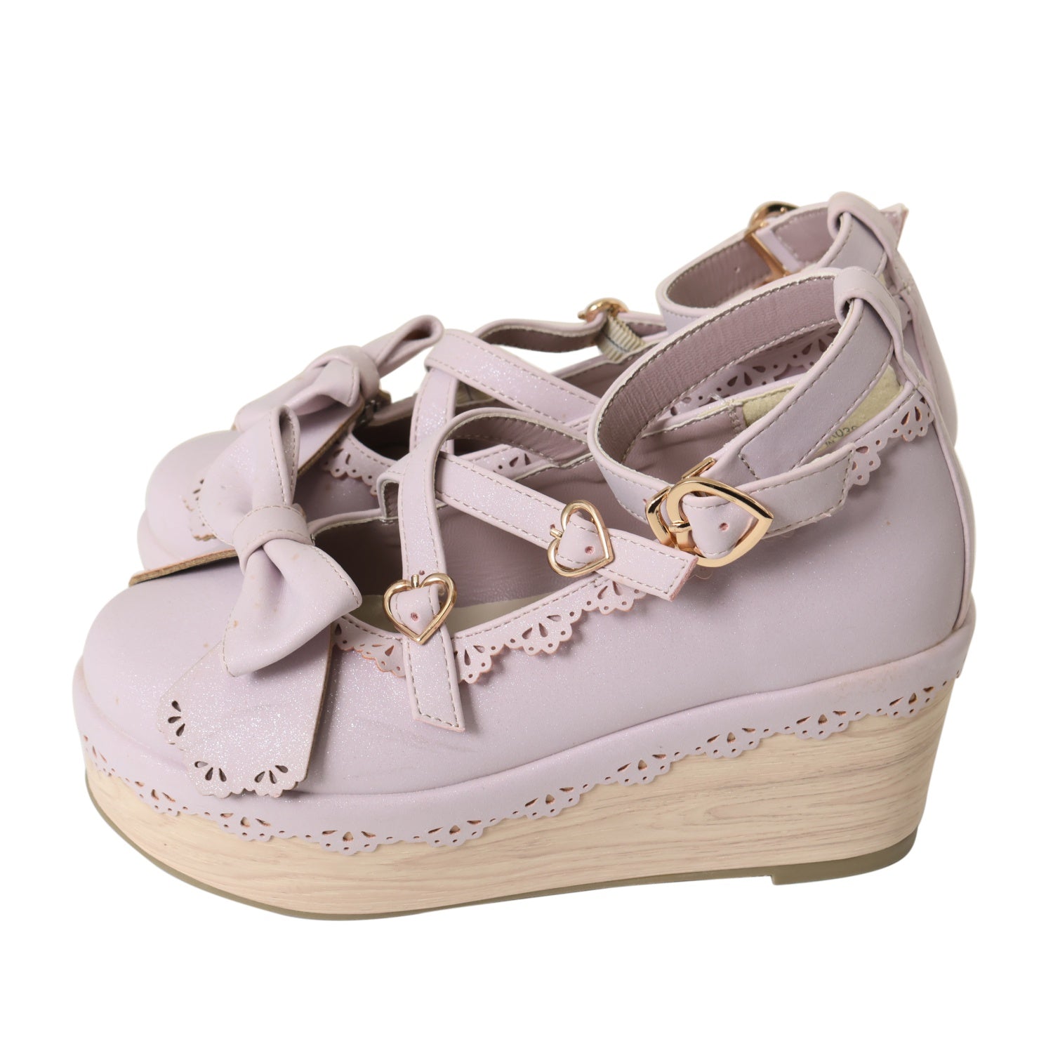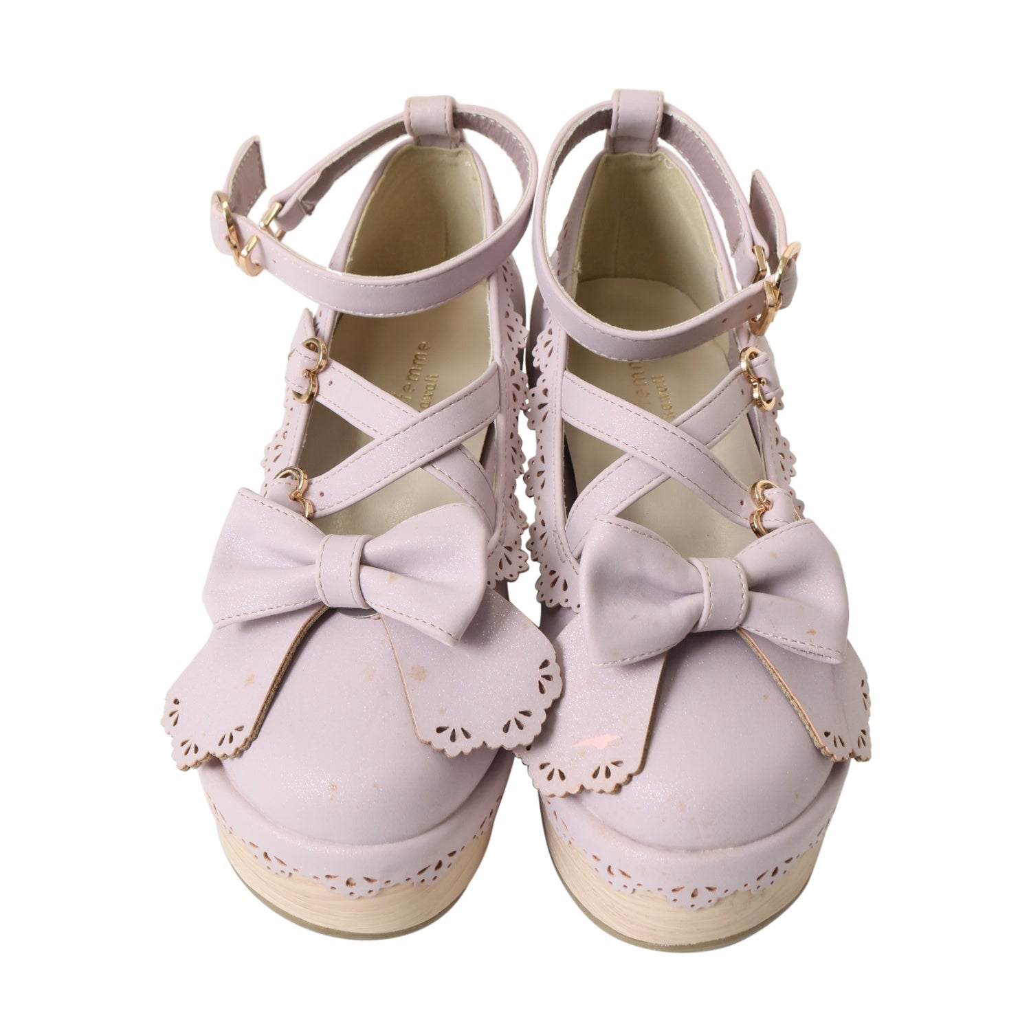 【USED】【axes femme kawaii/Sサイズ】スカラップ木底風シューズ(淡ピンク)