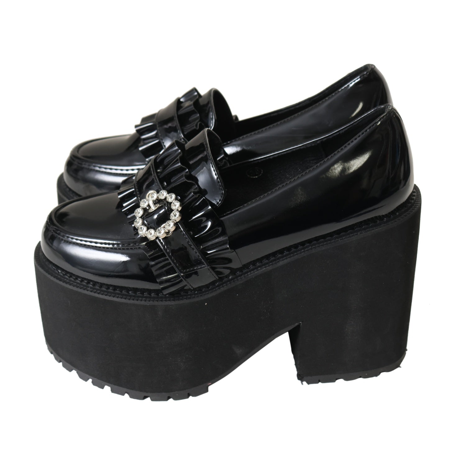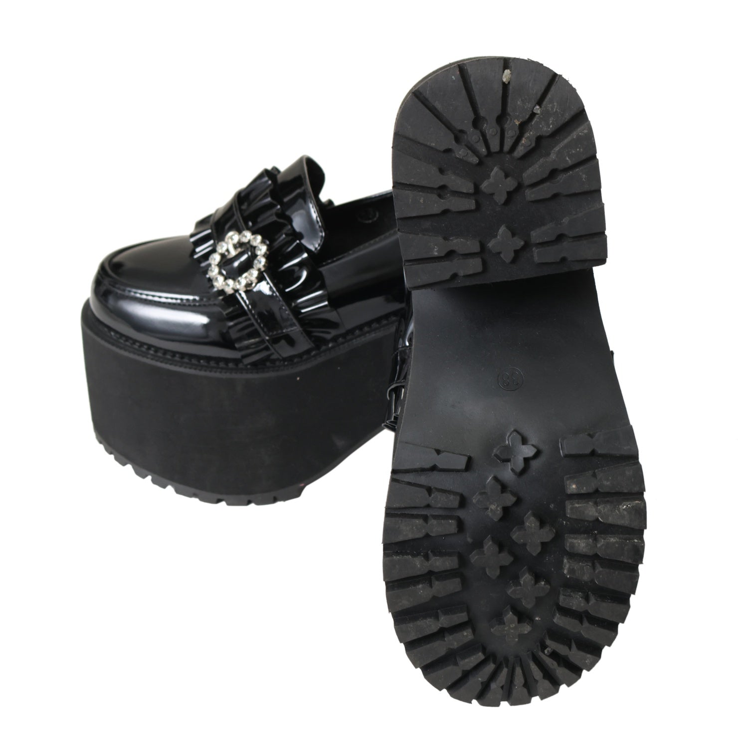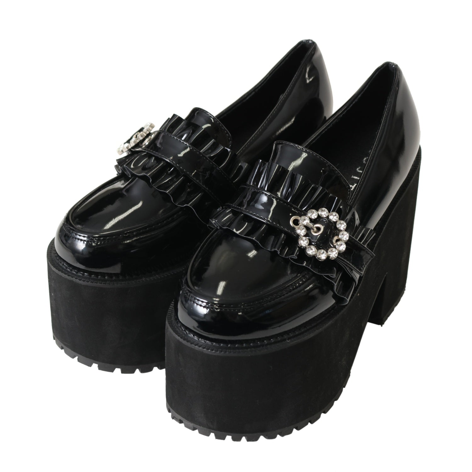 【USED】【サイズ38】リングバックル付エナメルフリルシューズ
