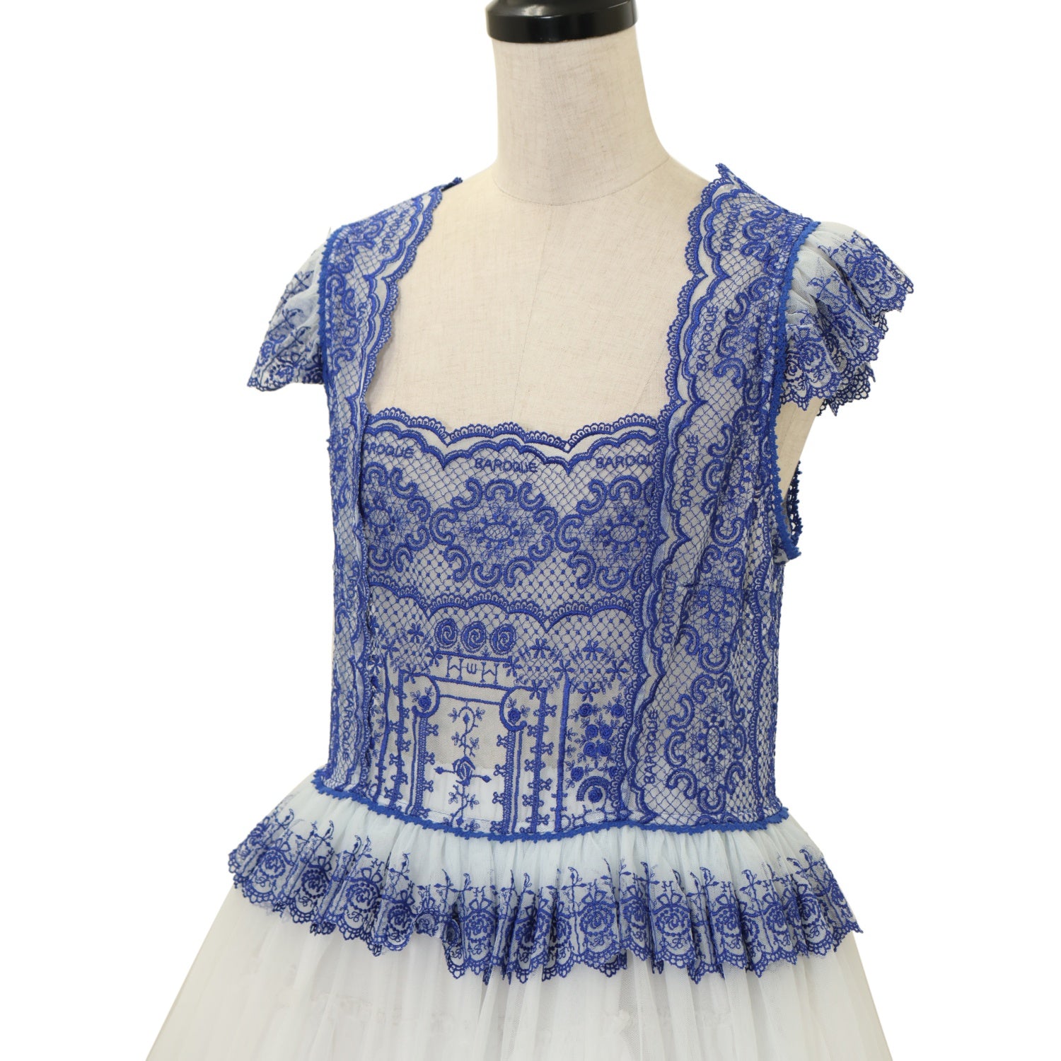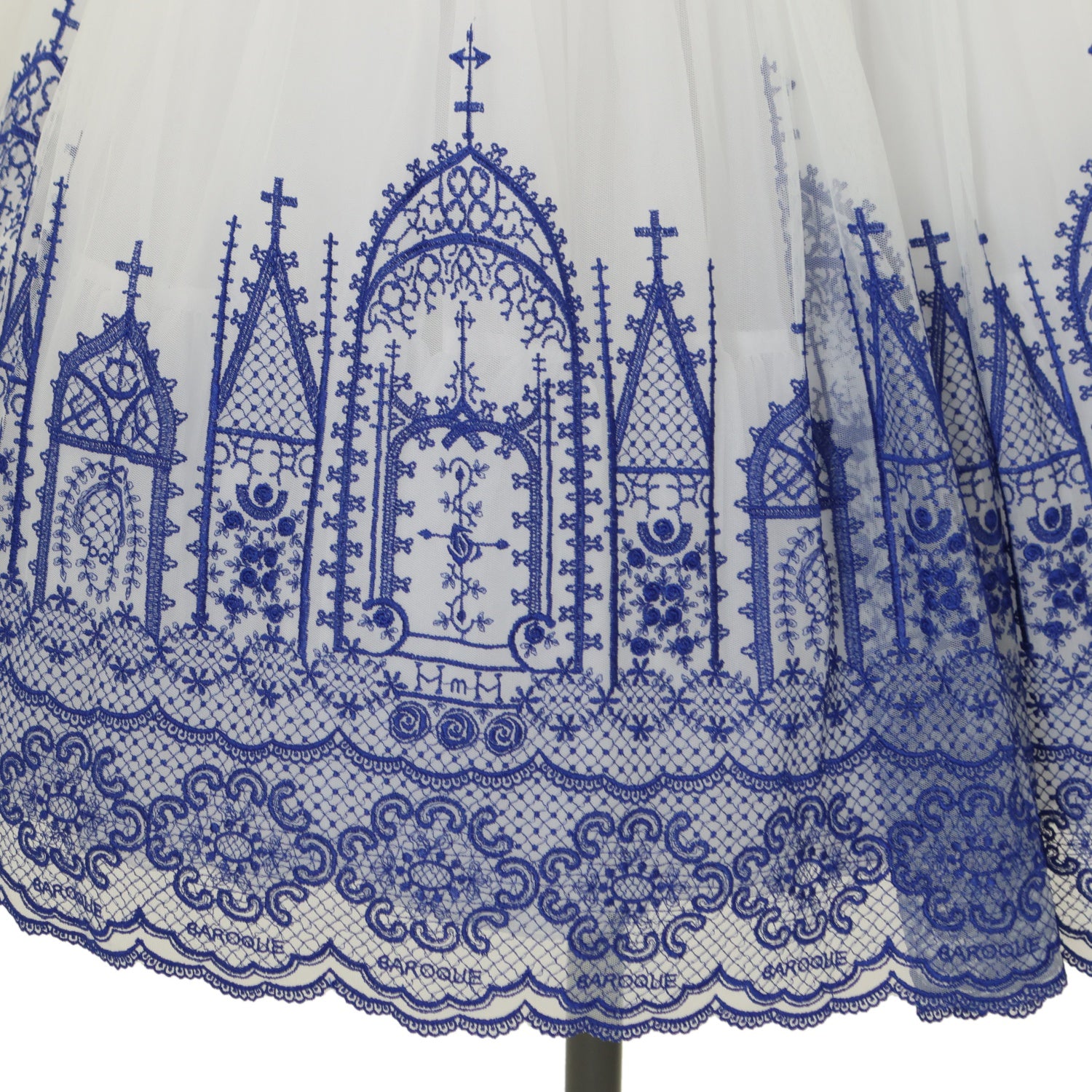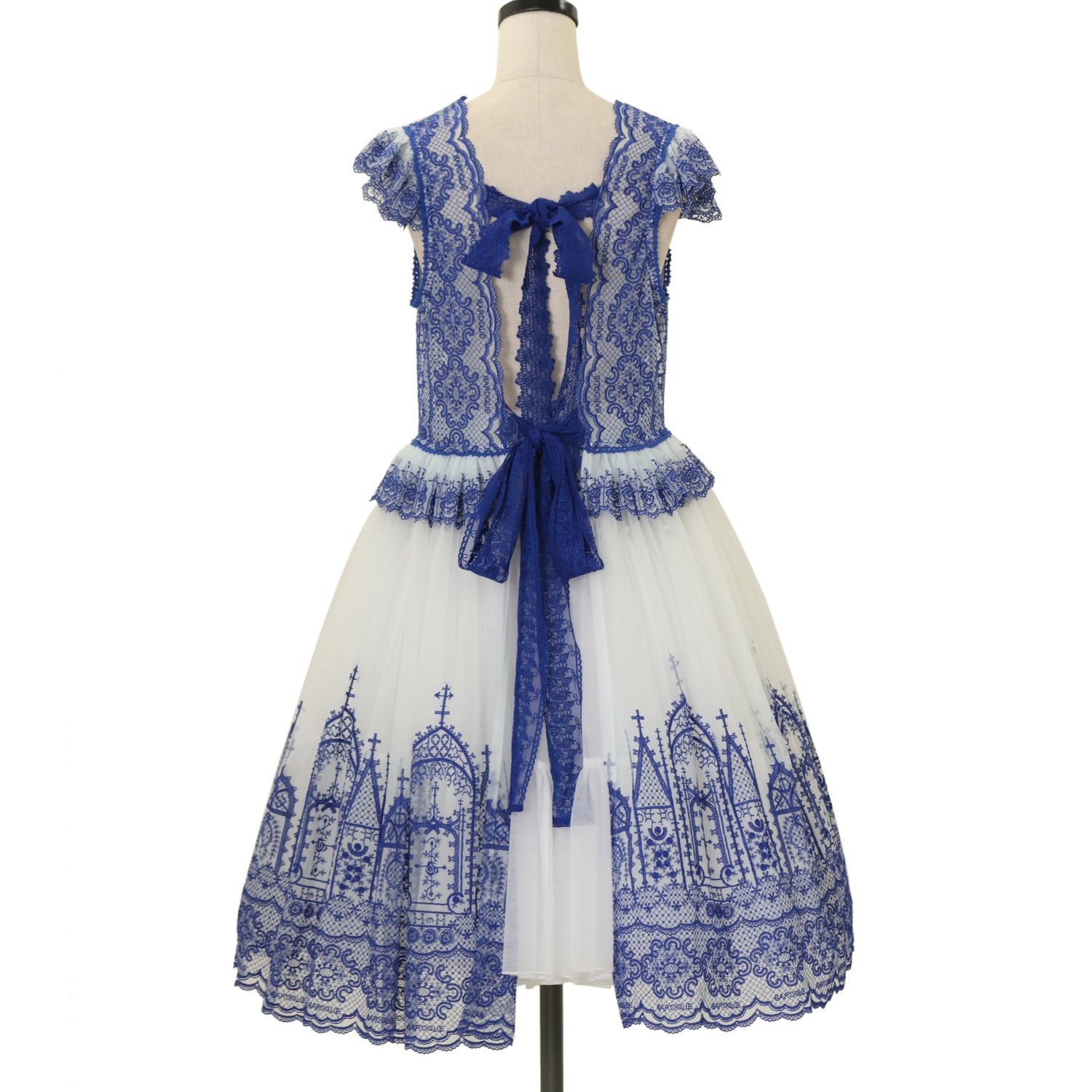 【USED】【Lサイズ】Church & Roses ~透き徹る秘めやかに眠る真珠と薔薇十字架の聖壇~ レースタブリエ(白×青)