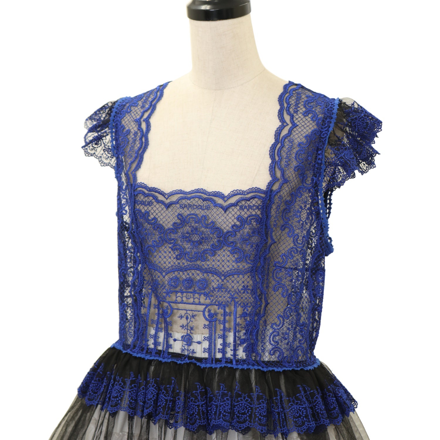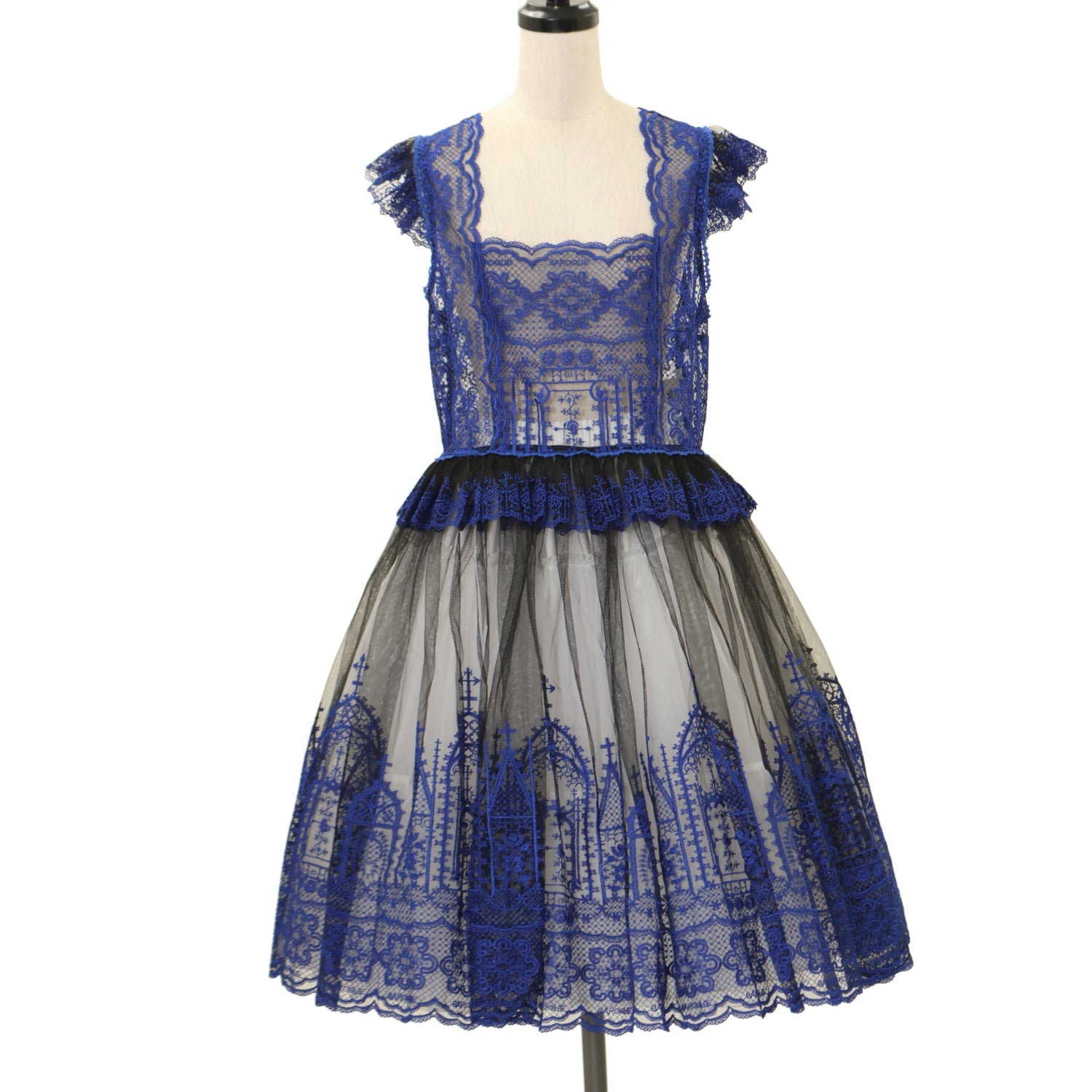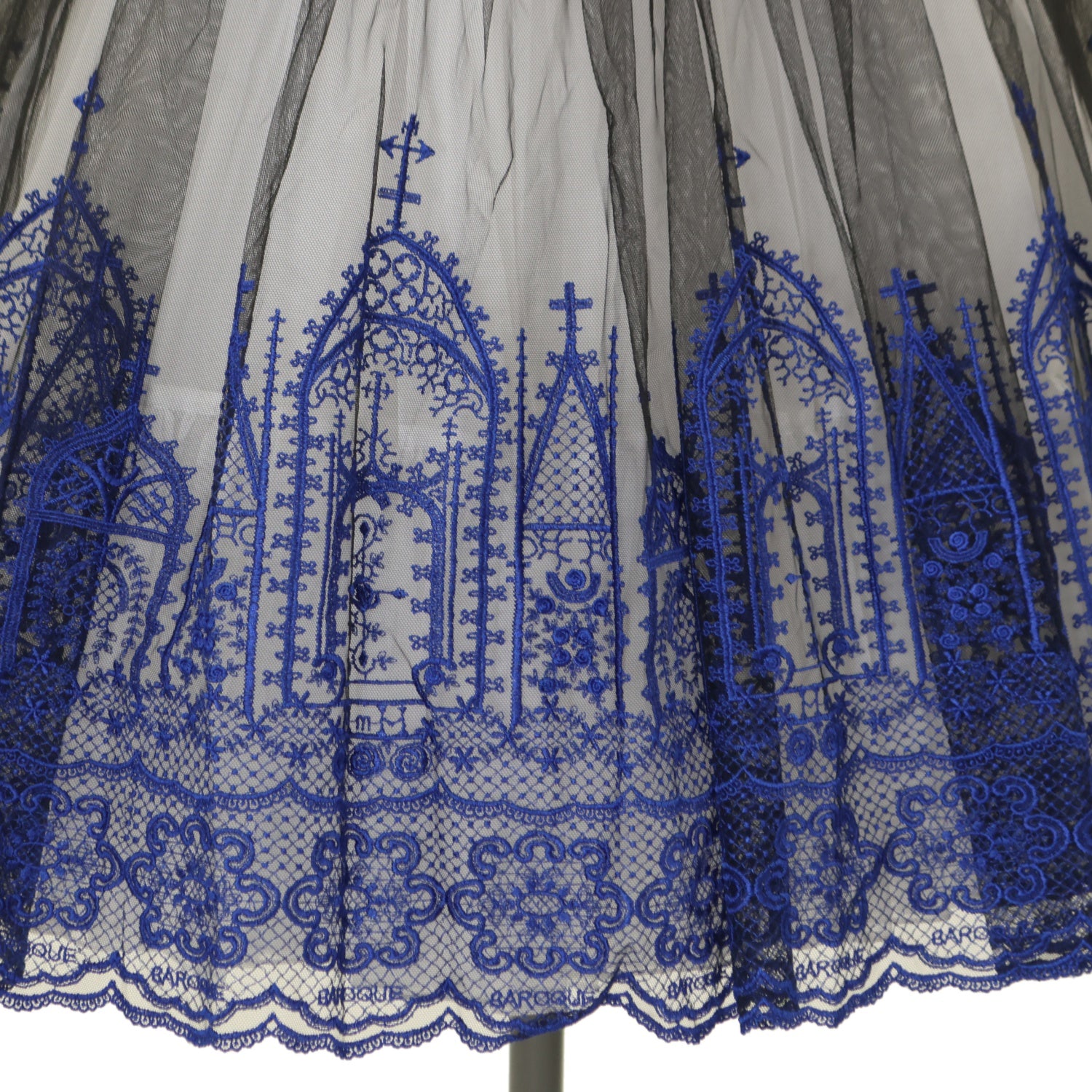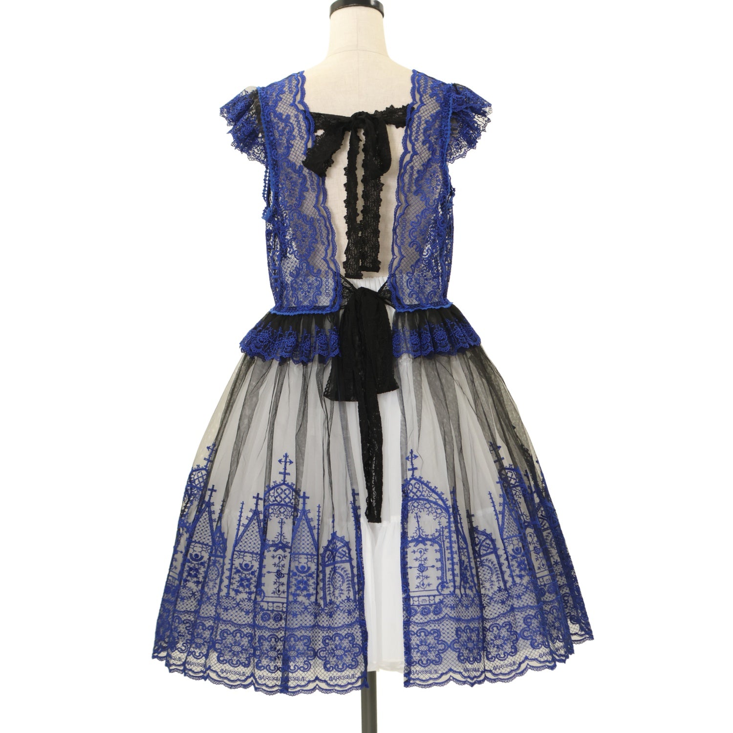 【USED】【Lサイズ】Church & Roses ~透き徹る秘めやかに眠る真珠と薔薇十字架の聖壇~ レースタブリエ(黒×青)
