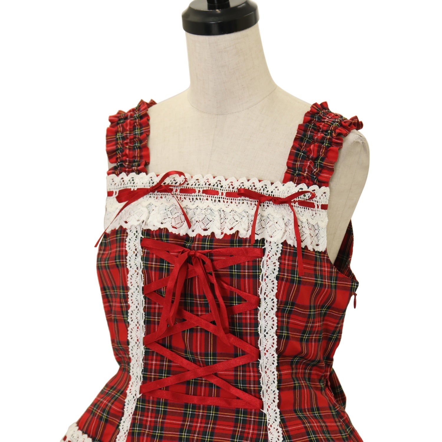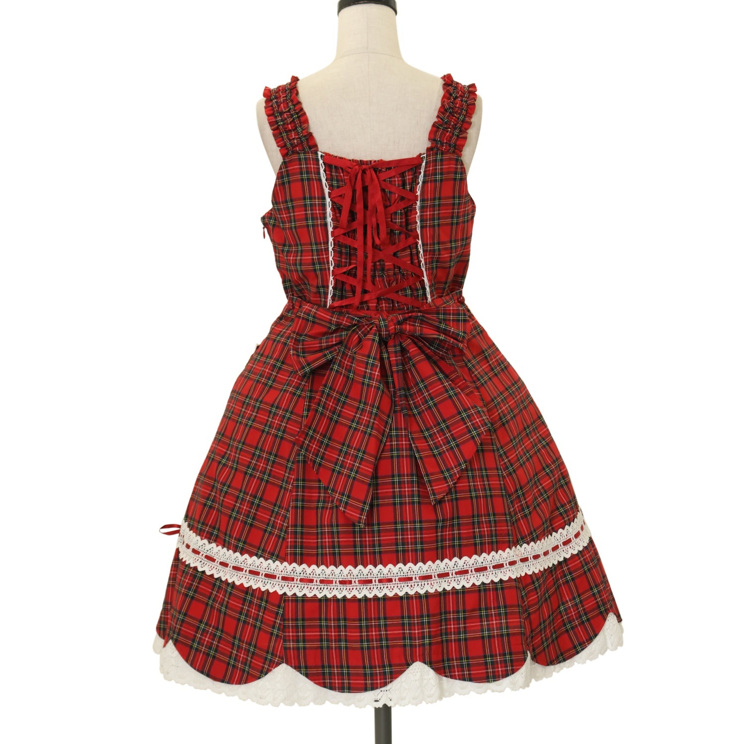 【USED】裾スカラップタータンチェックジャンパースカートセット