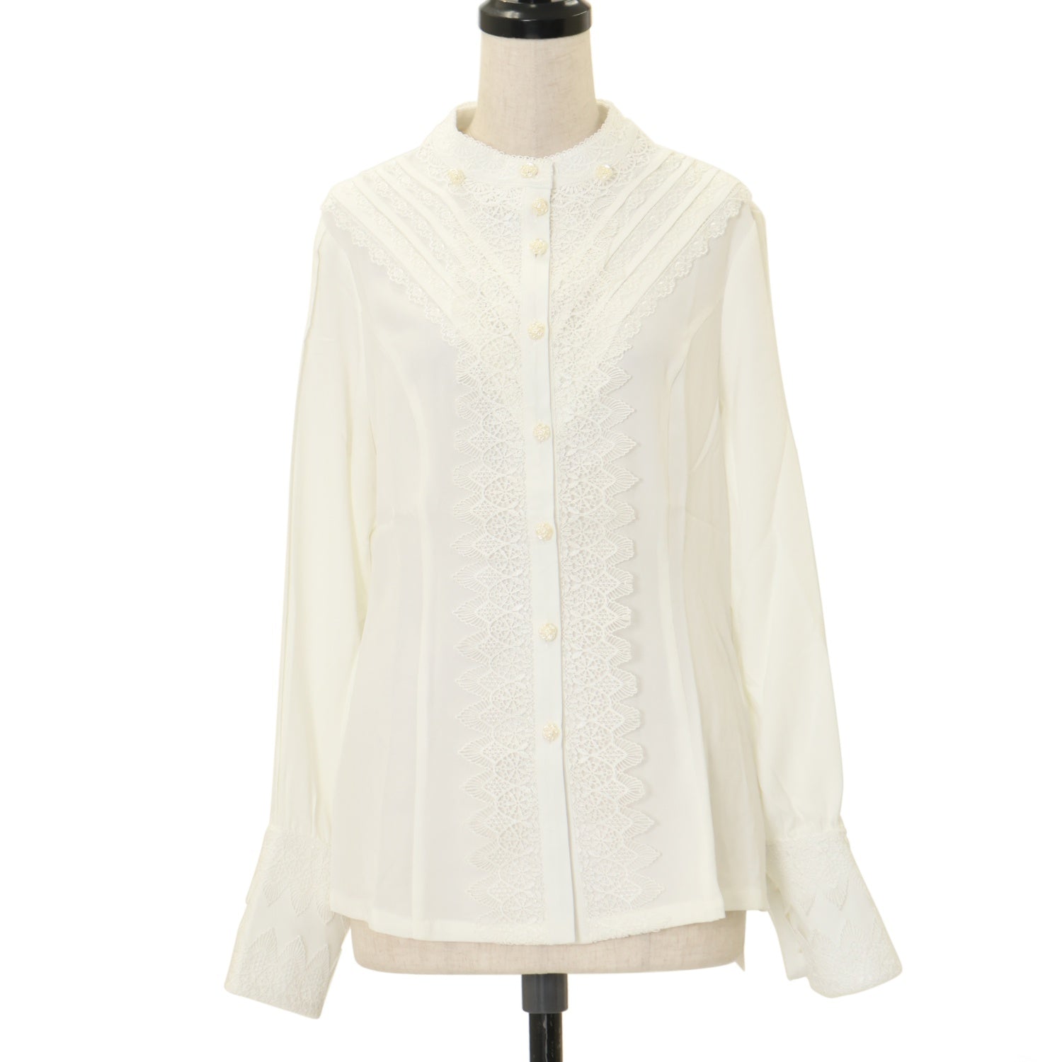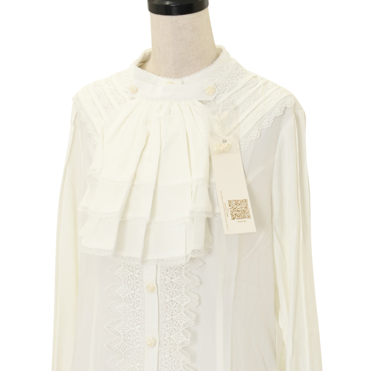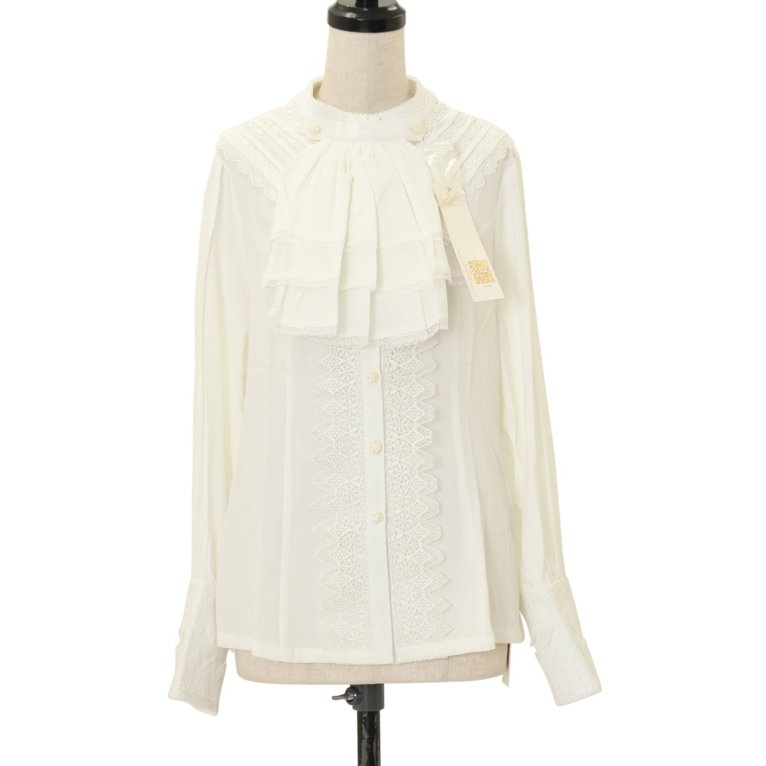 【USED】【Penny House/Mサイズ】フリルジャボスタンドカラーブラウス
