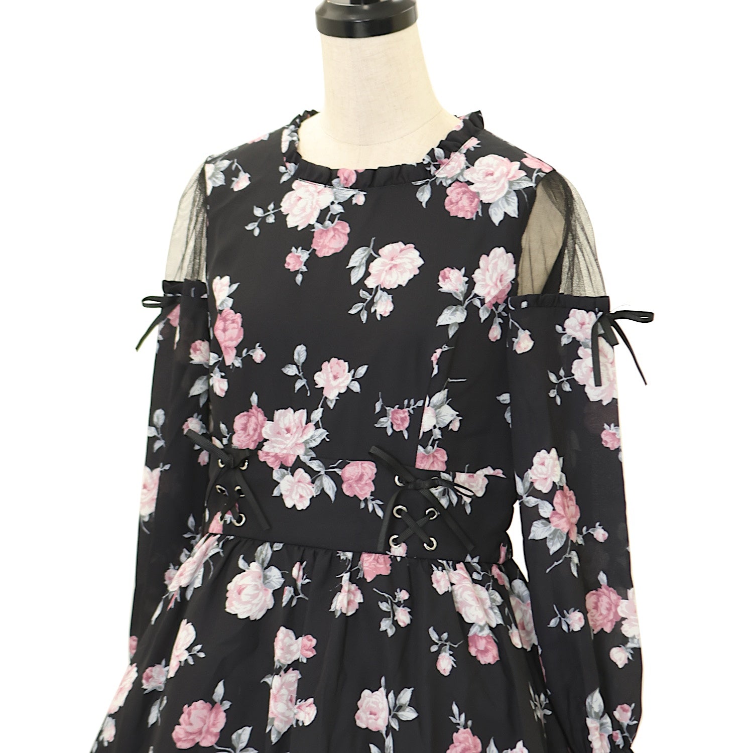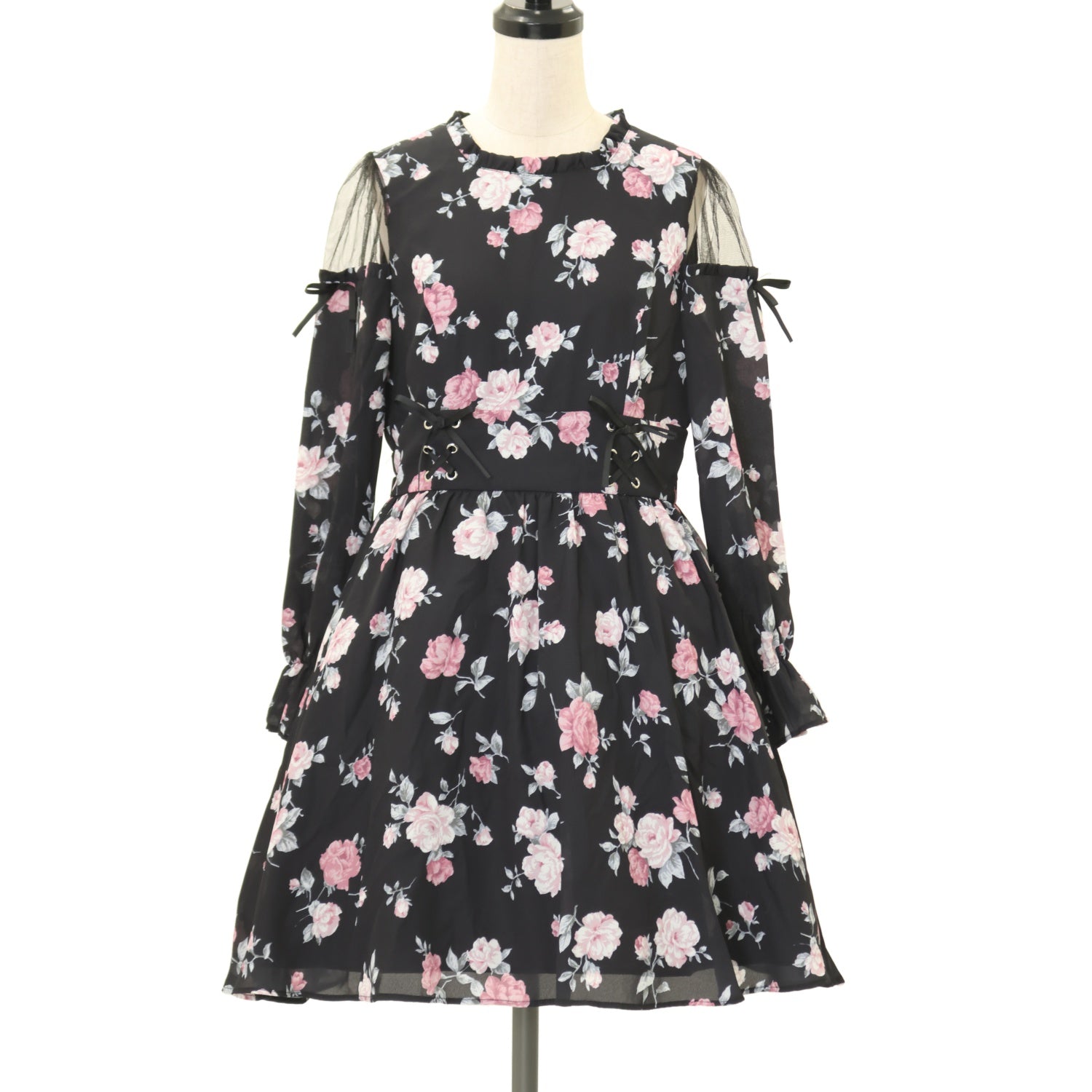 【USED】【Mサイズ】花柄チュール切替ワンピース