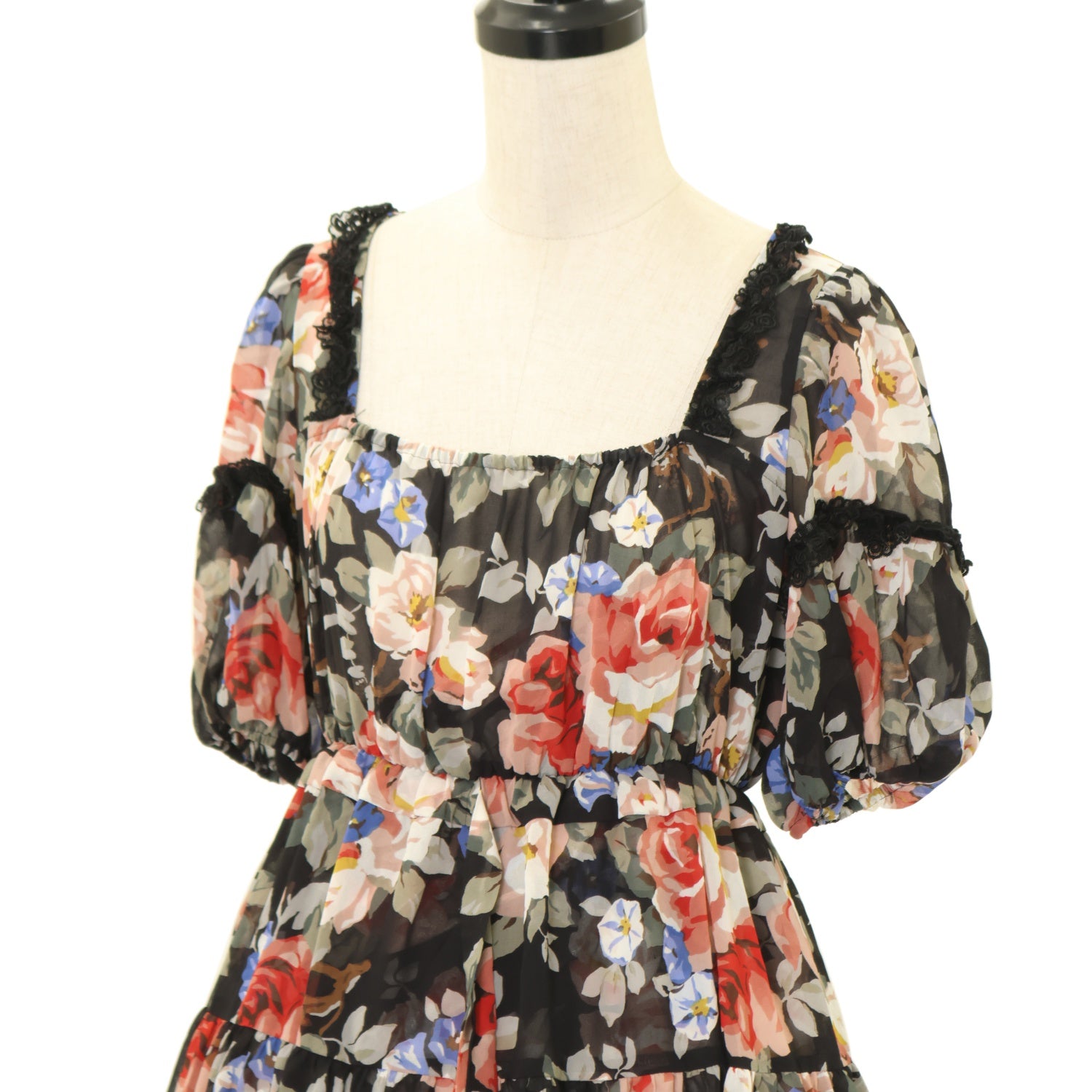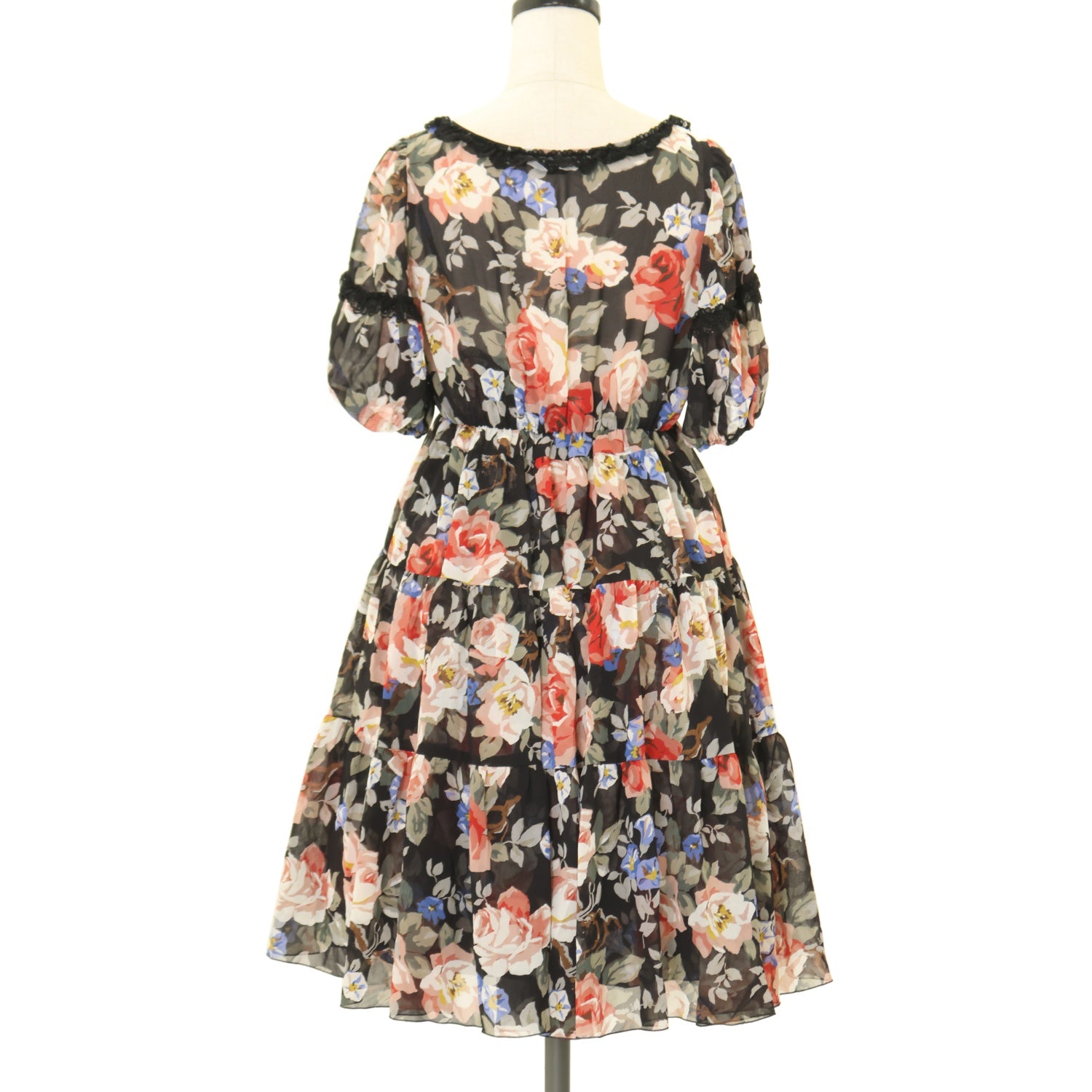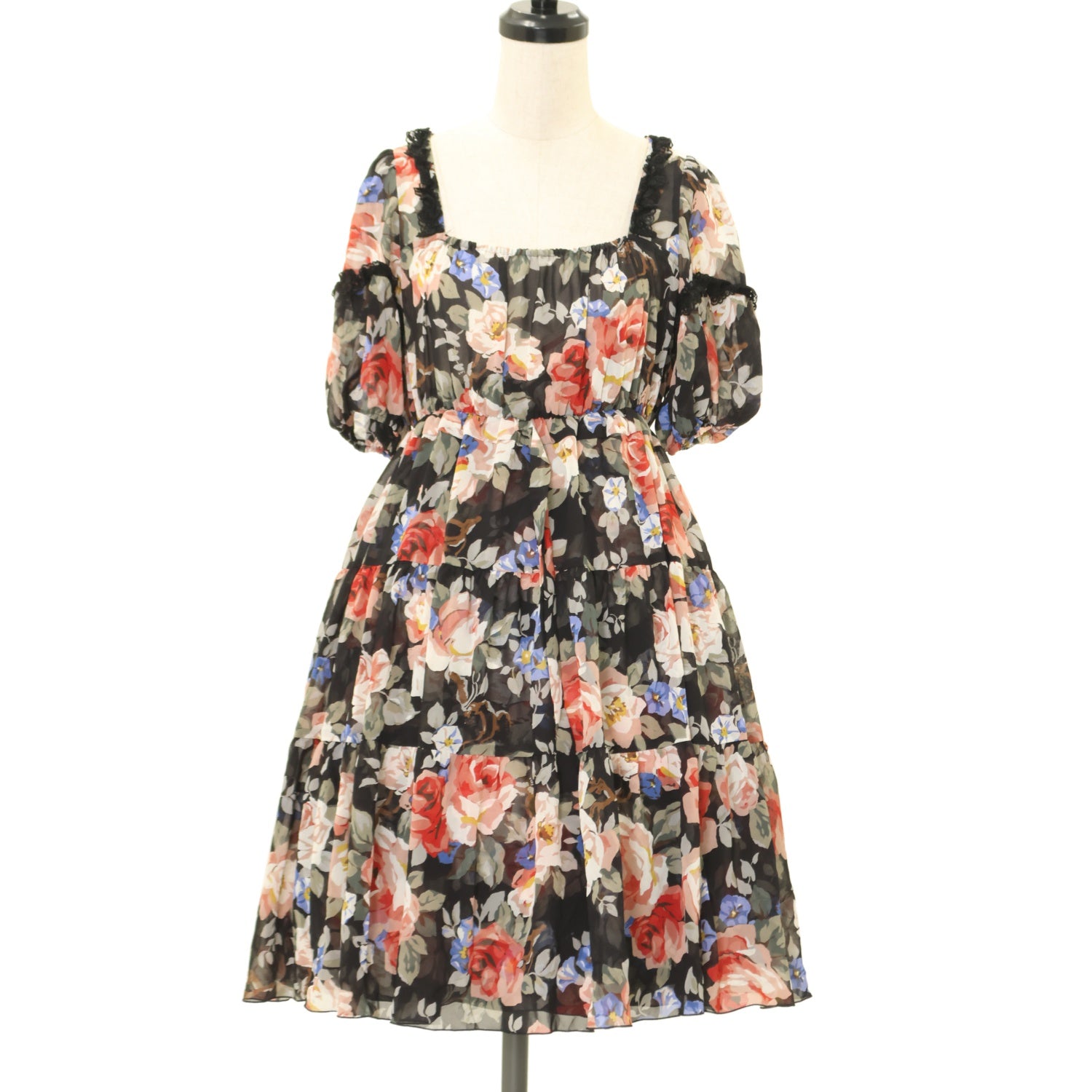 【USED】【サイズ38】スクエアネックティアードワンピ(新トリアノン薔薇柄)
