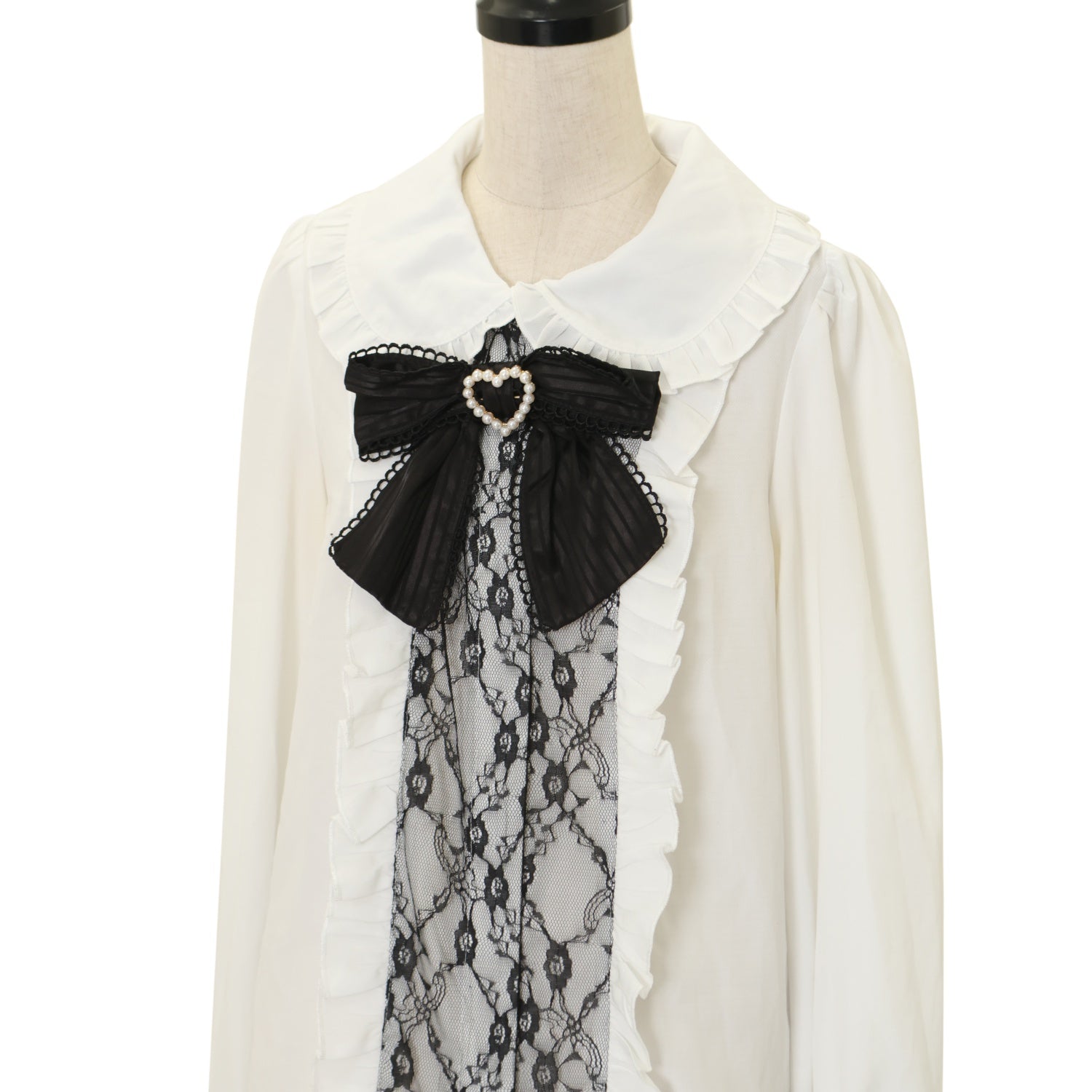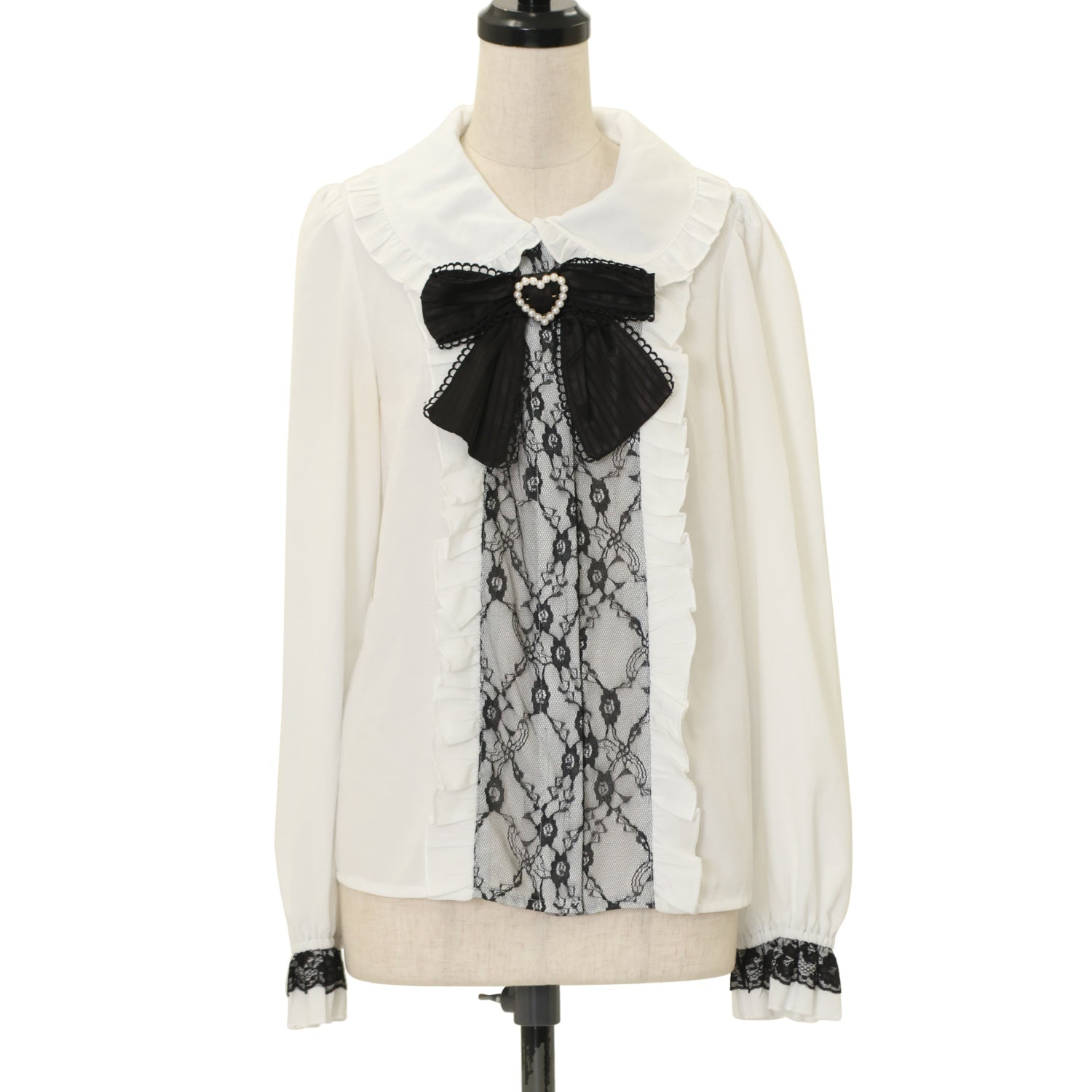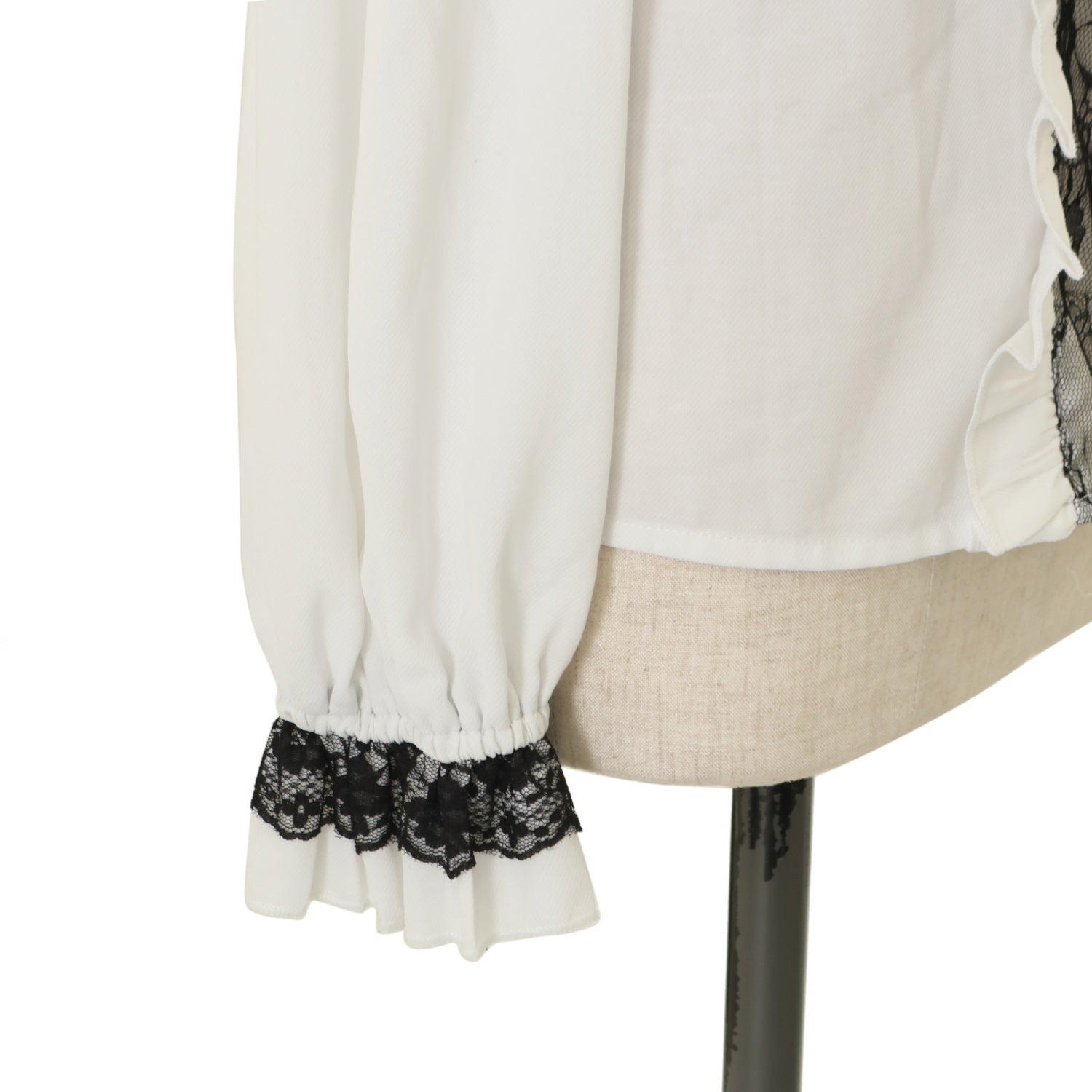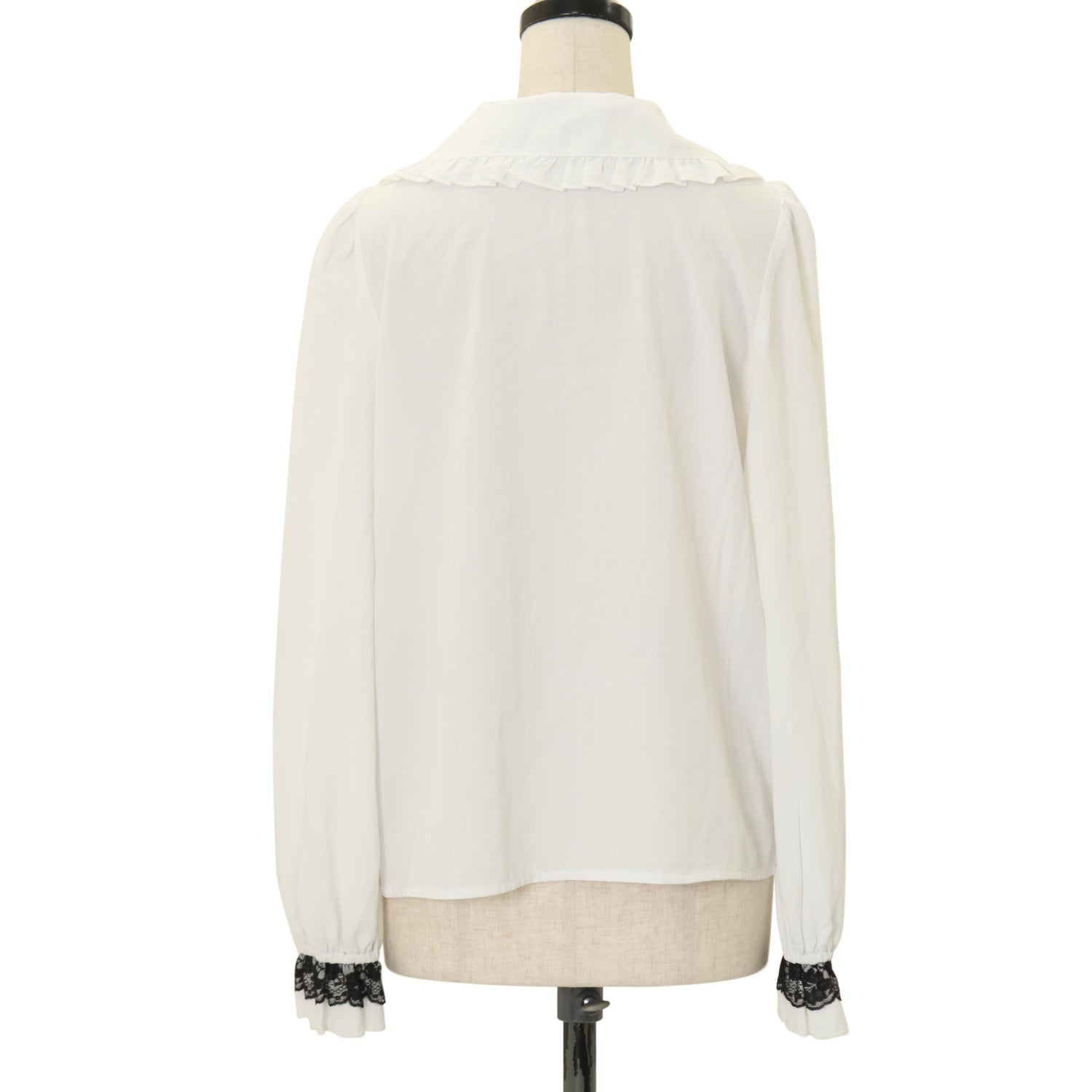 【USED】【サイズ2】バイカラーレースリボン付ブラウス