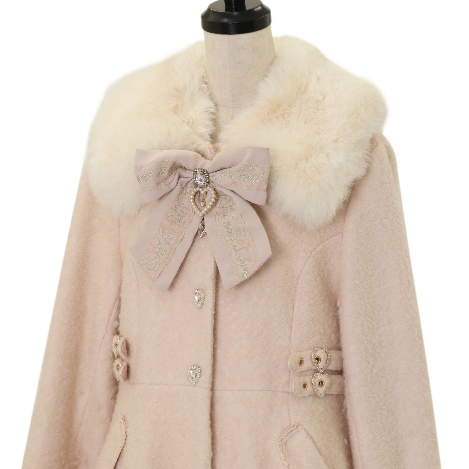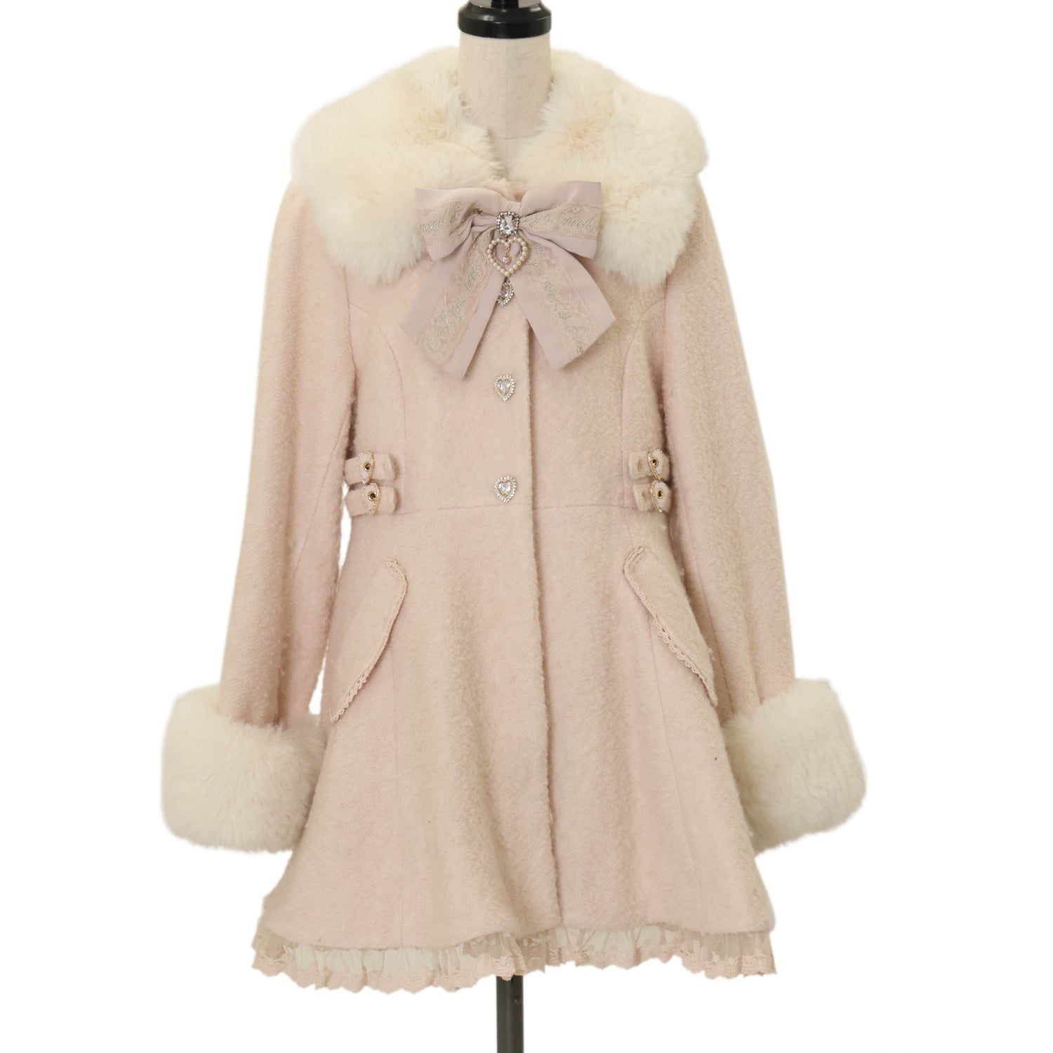 ファー襟・カフス・胸元リボンブローチ取り外し可能