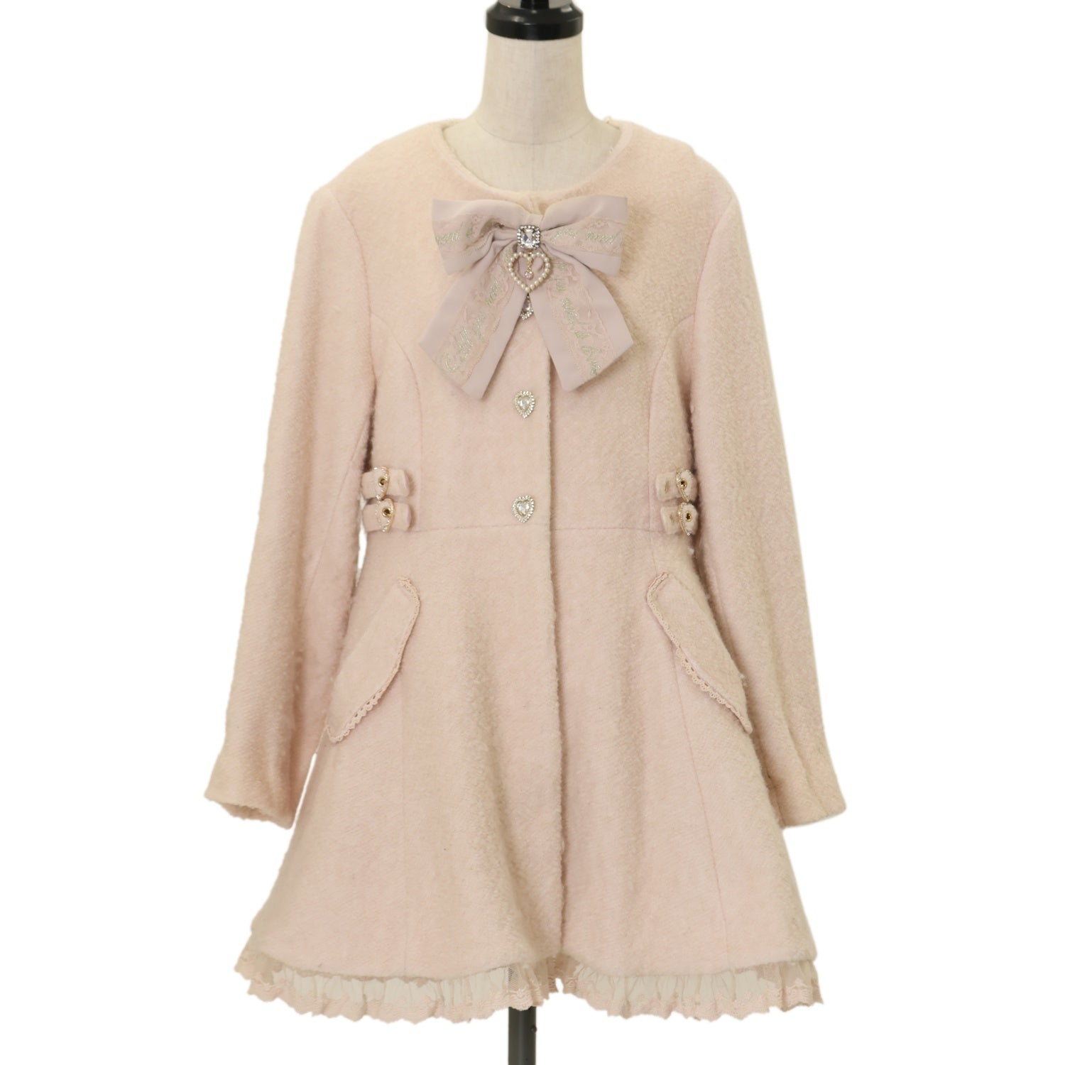 【USED】ビジューリボンミニ丈Aラインコート