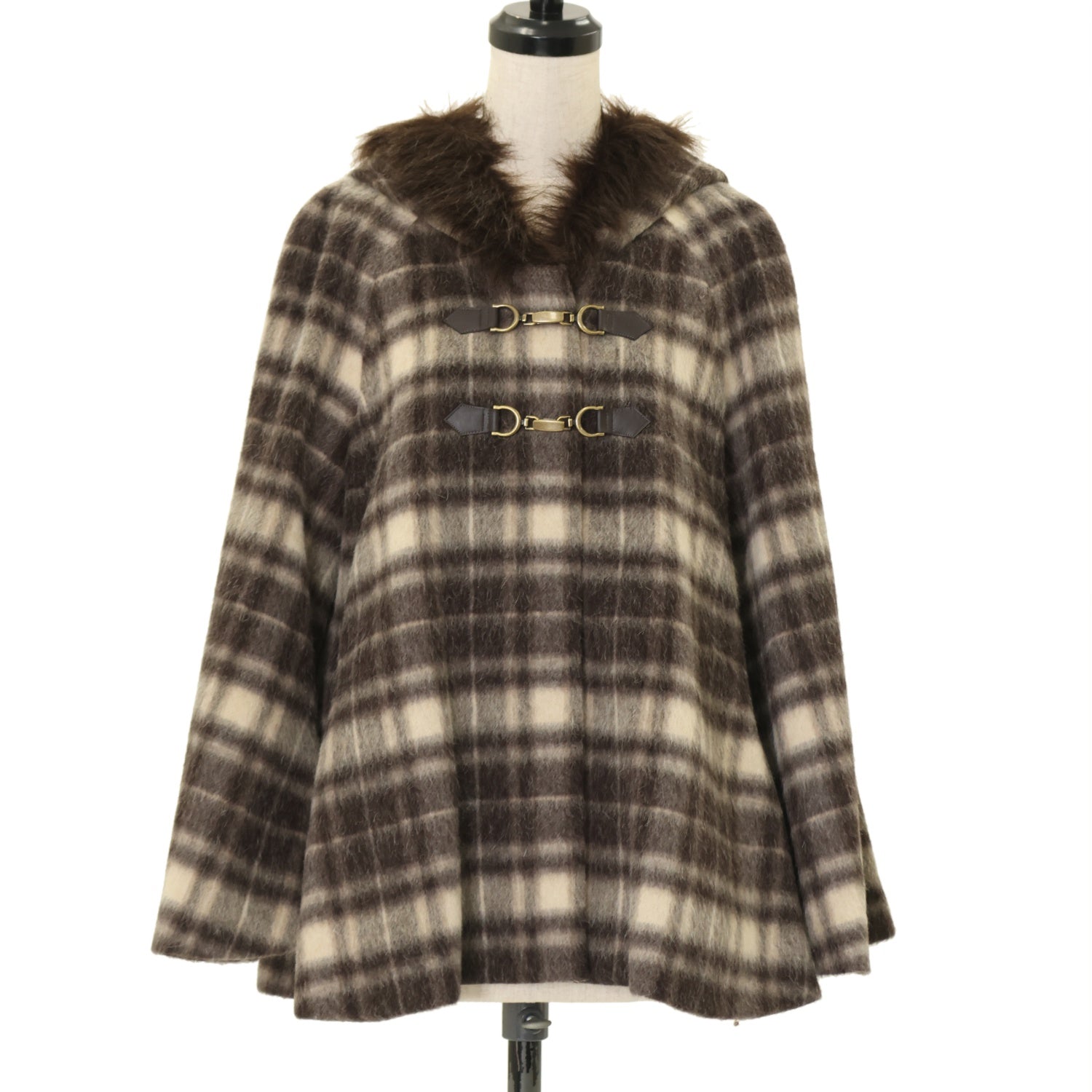【USED】フレアショートコート チェック